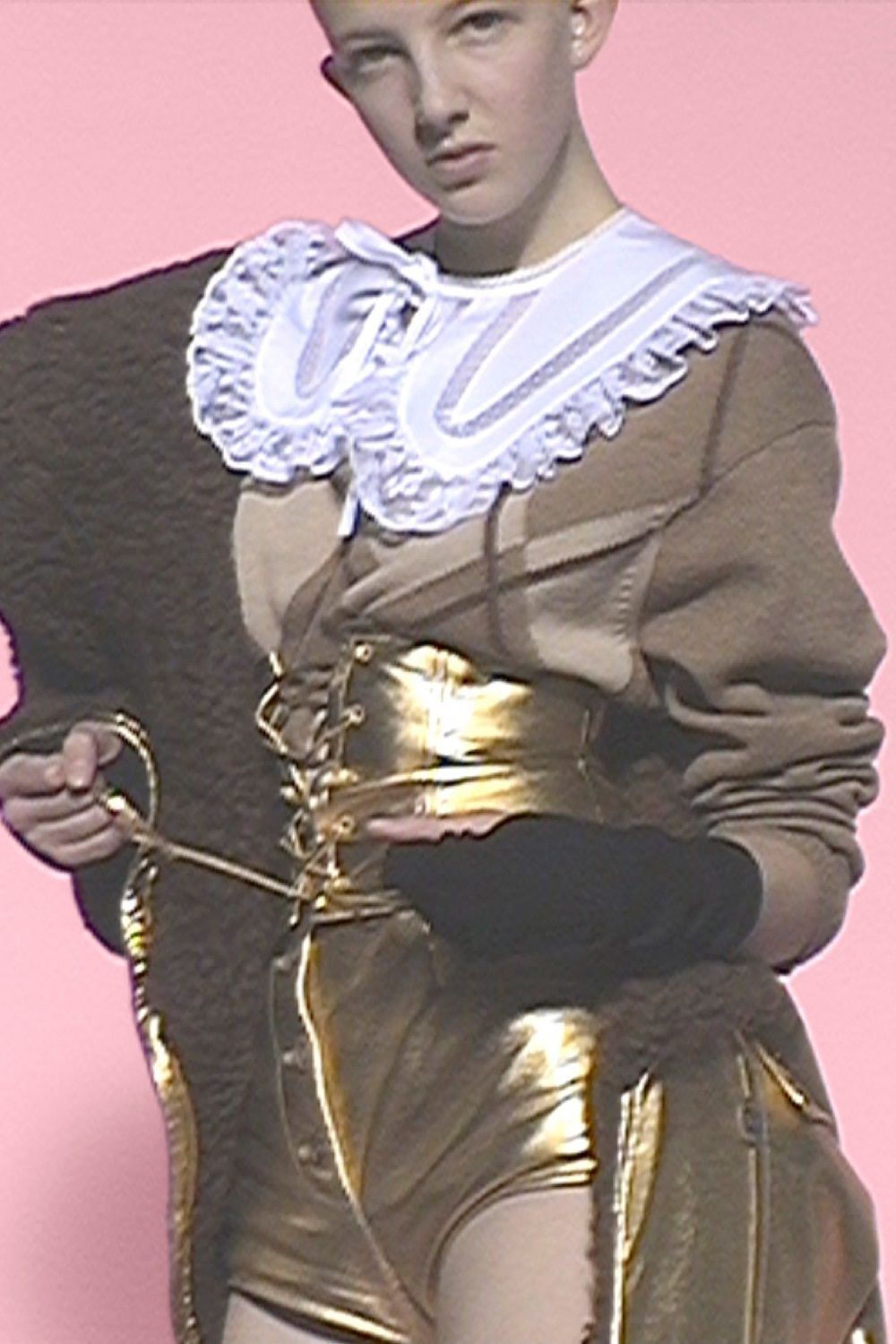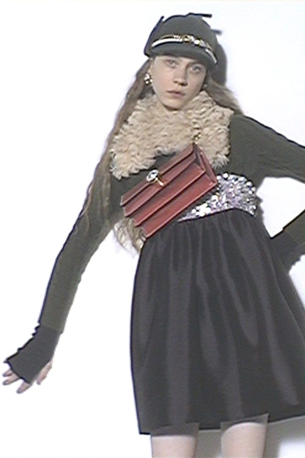 She is an imaginary princess of Wales (as Virgil Abloh shows with his homage signed Off-White) who, in search of an identity that is still evolving, mixes soft military inspirations, Tyrolean folklore, white cotton collars and lace with the typical sparkle of the brand. Her style is made of sheepskin, mixed shirts, soft sweaters and wide pants; robust fabrics; heraldic crests, flowers and sequins as decorations; small clues to a girl who wants to be a woman and plays with shorts, bustiers, leather and gold. The outfits, the work of the super stylist Katie Grand, immortalized by Osborne, seem out of a photographic album found and peeled back with the mind back to a past with appealing together disturbing and captivating, that ugly beauty of Mrs Prada.
