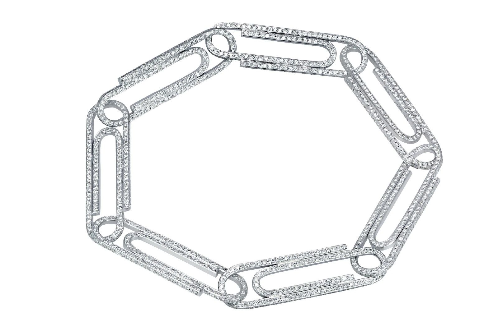 Virgil Abloh and Jacob & Co. aka the King of Bling unveil the second part of their jewellery collection first previewed last winter. The two partners have added a new selection of pieces, necklaces, earrings and bracelets, all inspired by DIY culture and consisting of a chain of 18K gold staples, both yellow, white and pink, encrusted with diamonds.