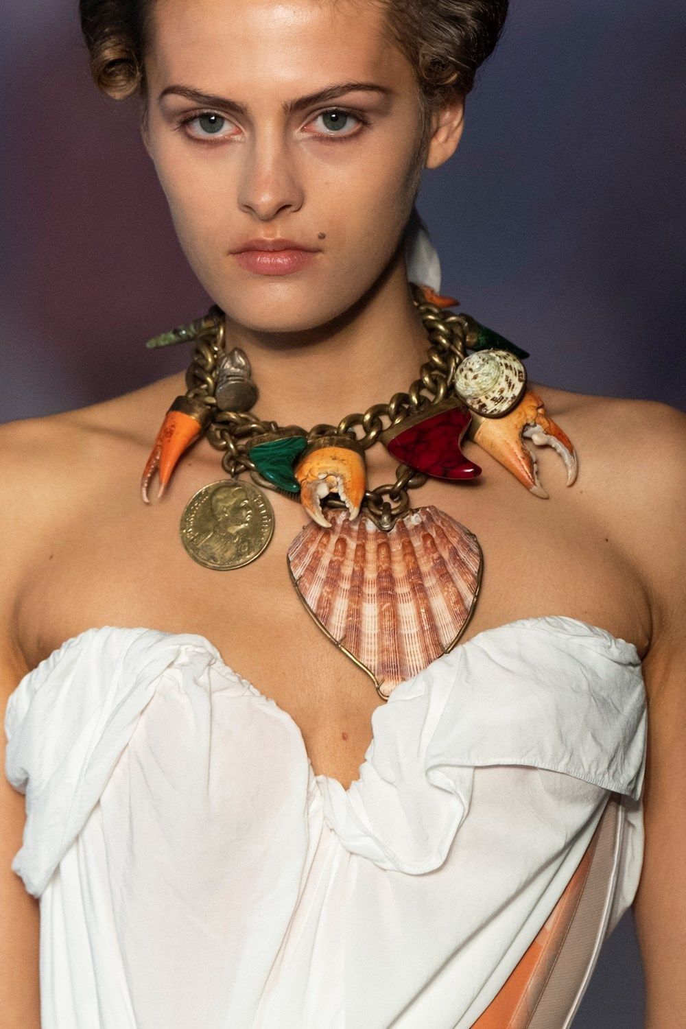 From Balenciaga with its mermaid earrings with BB logo printed in the centre to Ulla Johnson multi-laces necklaces, from Saint Laurent and Dior hippie jewelry to Marni accessories, in recent seasons many brands are bringing a hint of the ocean onto the catwalk. The must-have of the SS20 fashion shows is the statement collier made of huge sea snails presented by Prada and re-proposed by many low-cost chains like Zara.