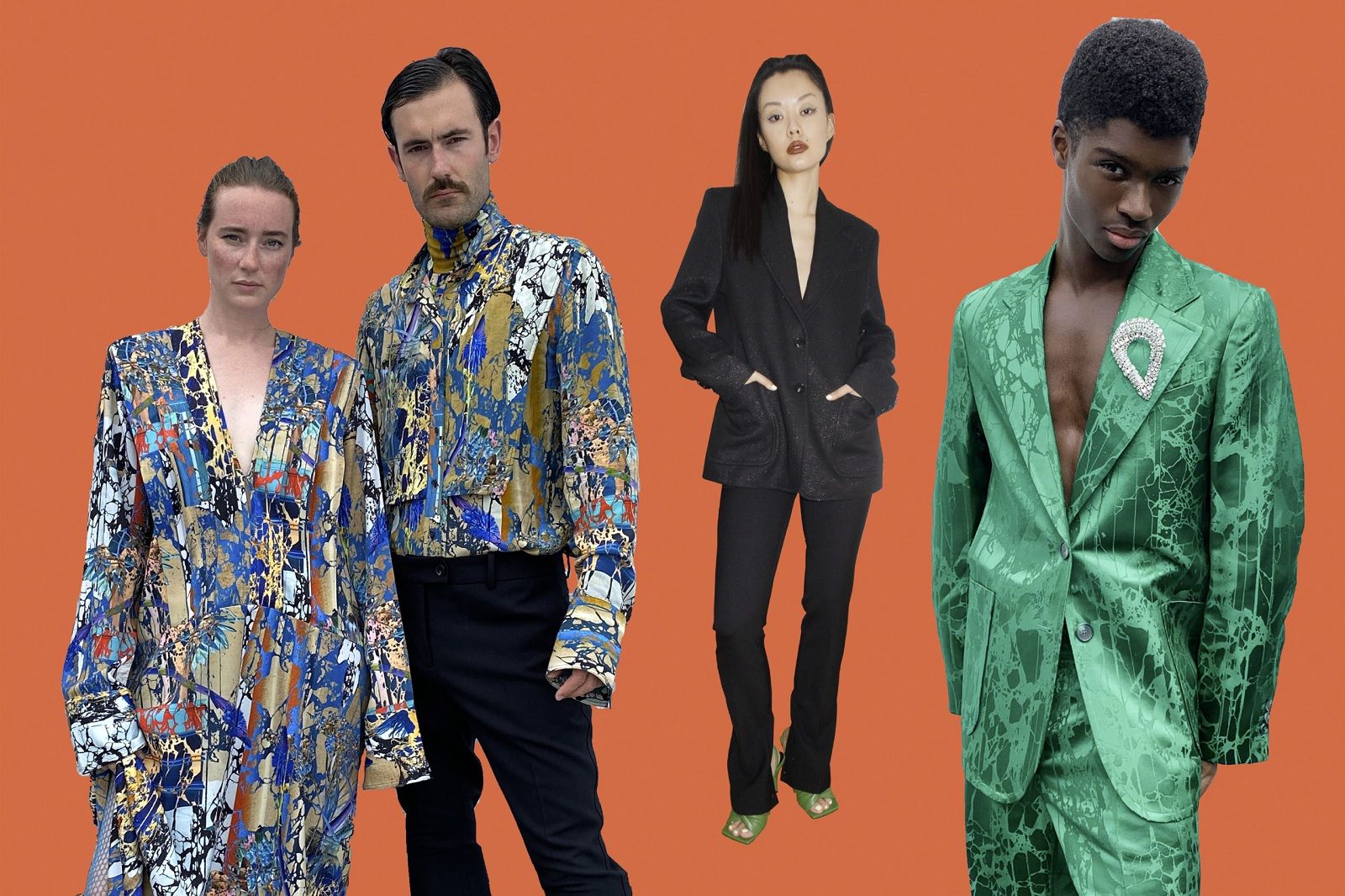 Glitter, brightly colored ruffles, metallic leather jackets and jacquard suits. Inclusive and sustainable, H&M Studio's FW20 collection is a jump into 70s glam rock, designed to give our season's wardrobe a rebellious, rock and damn cool twist.