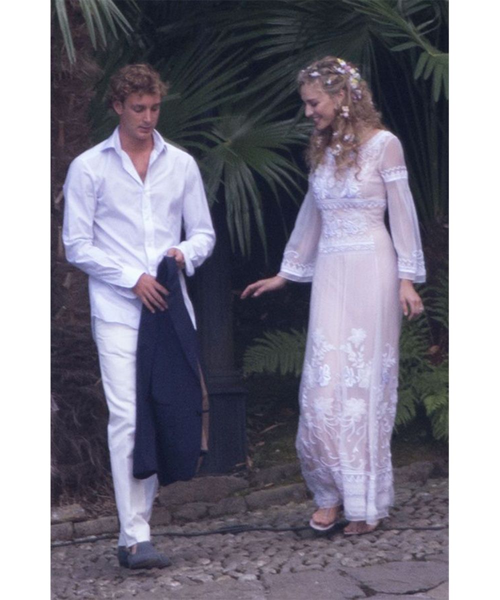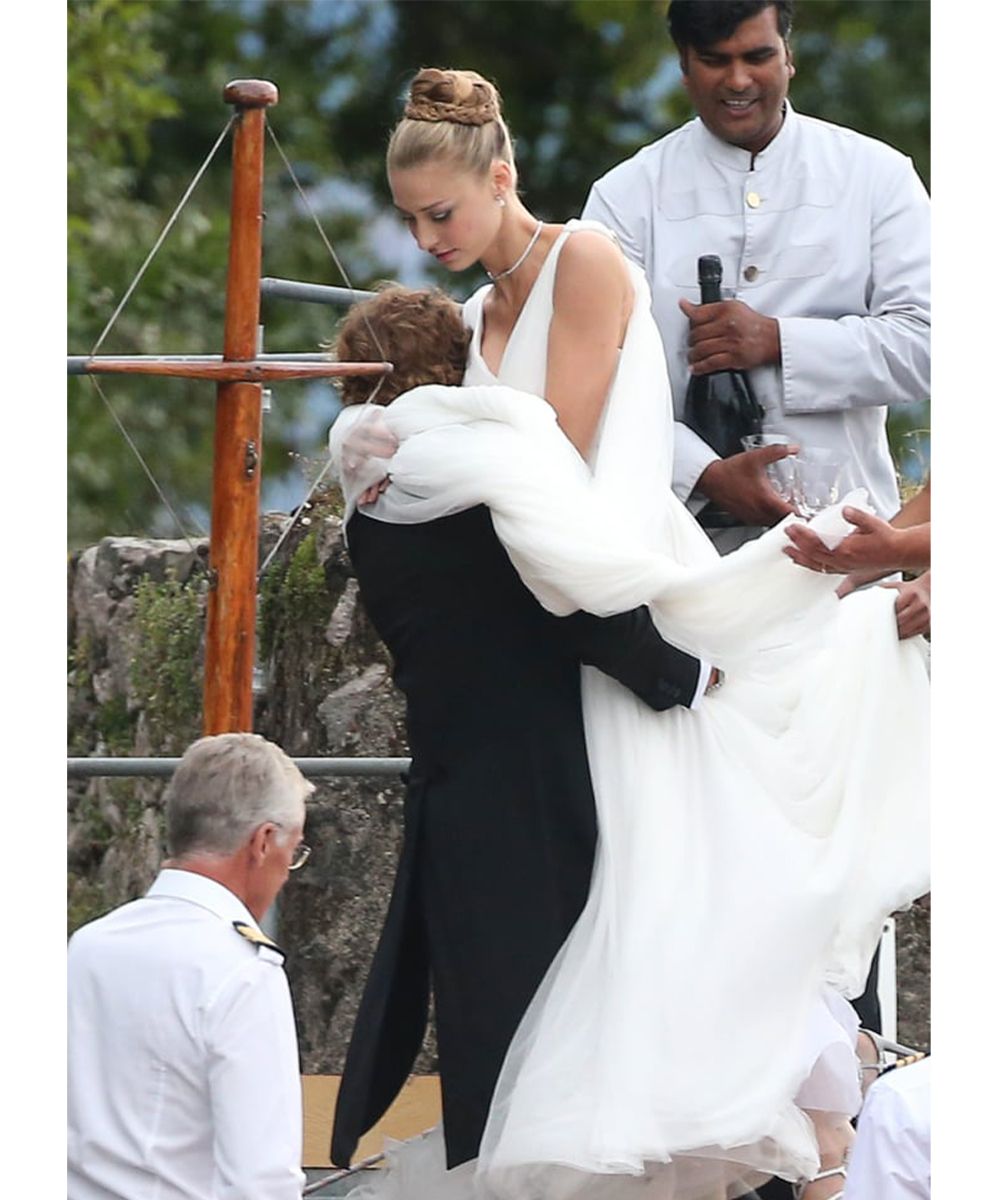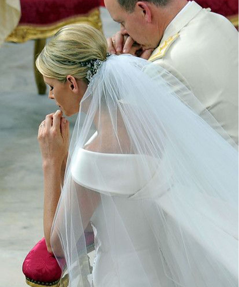 On the hairstyles side, however, the real rock stars belong to the principality of Monaco. Among the many changes in Beatrice Borromeo's look, the very first one stands out, paired with the pink Valentino Haute Couture dress, with Botticellian curls fixed by a ton sur ton flower crown. The more romantic ones, on the other hand, will love her extra bun, high and closed by a micro braid. Charlene of Monaco, on the other hand, chose a jewel detail, worn sideways on a banana chignon and with a tuft left free to move in the wind. And most importantly, she opted for a waterproof mascara, for the tears of happiness.