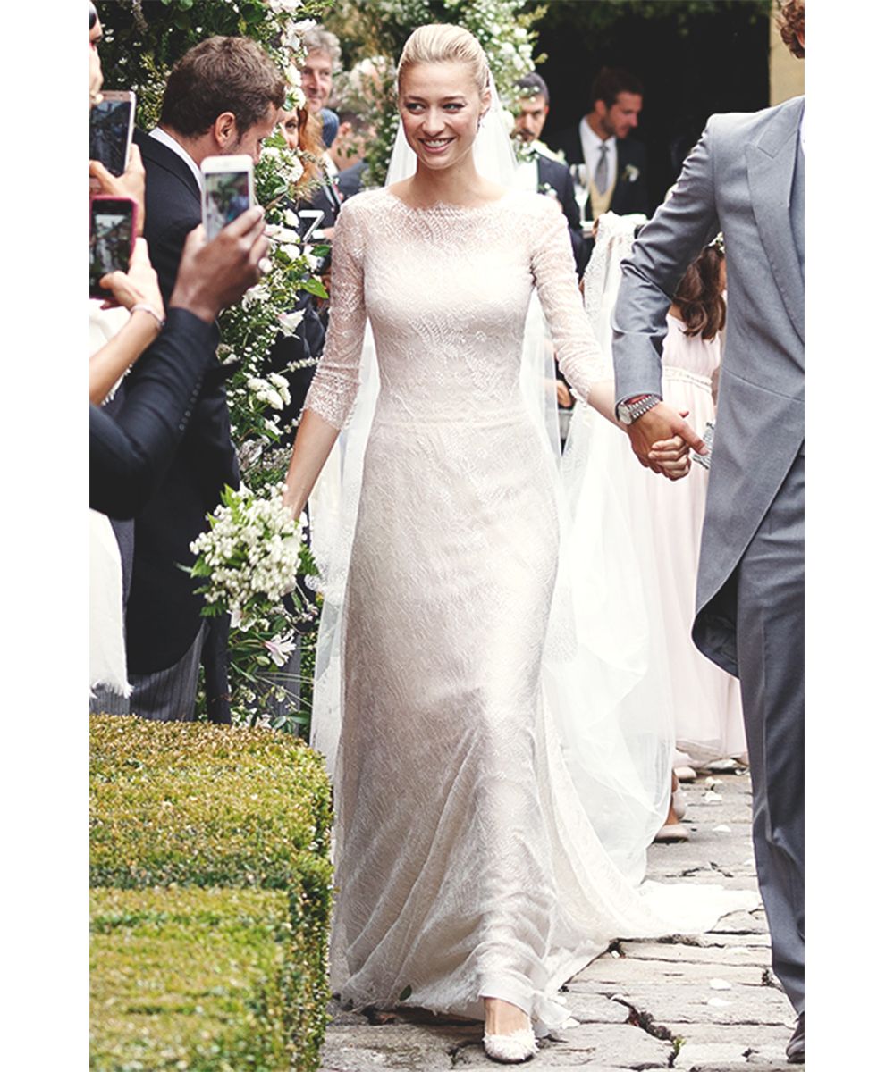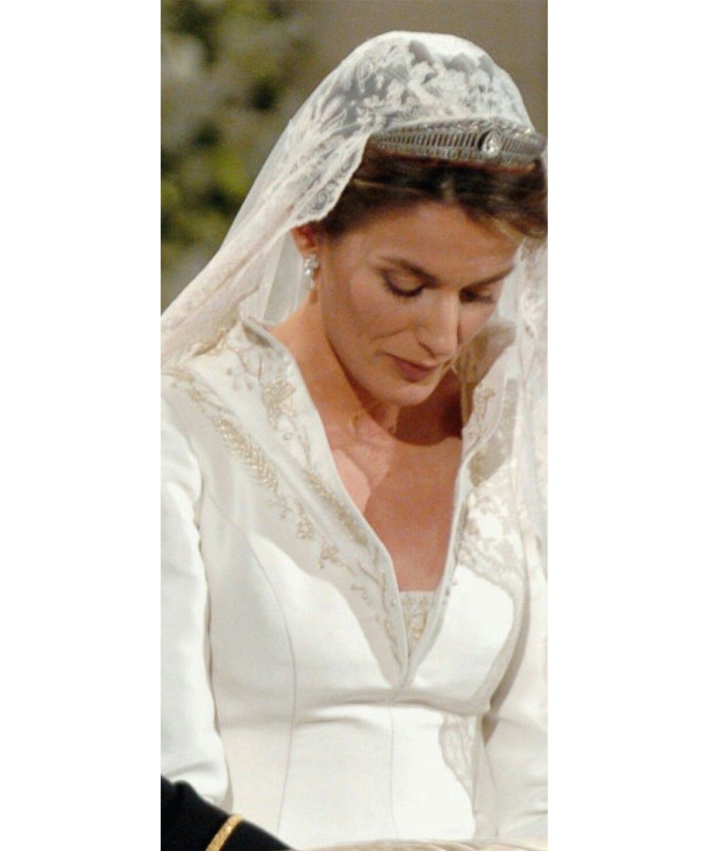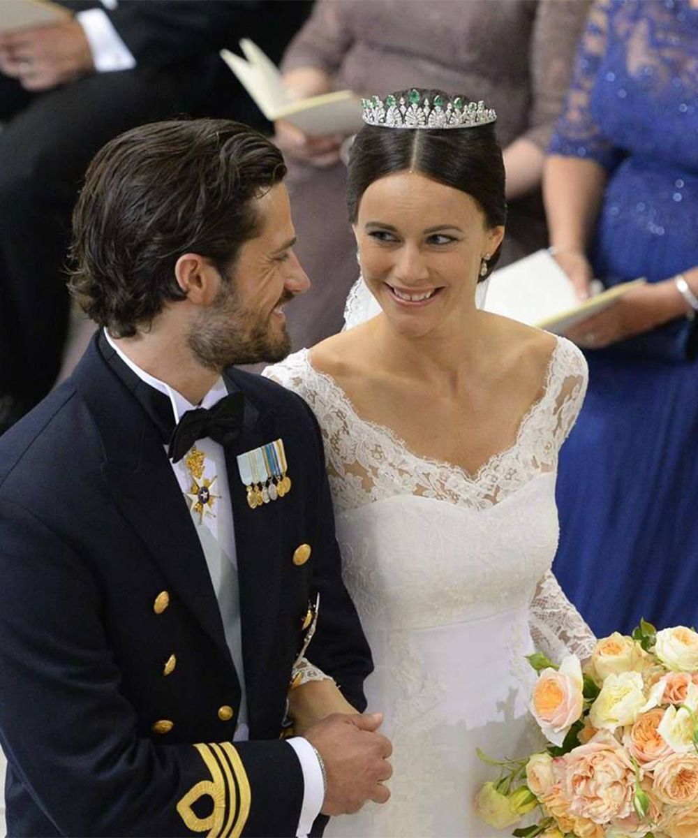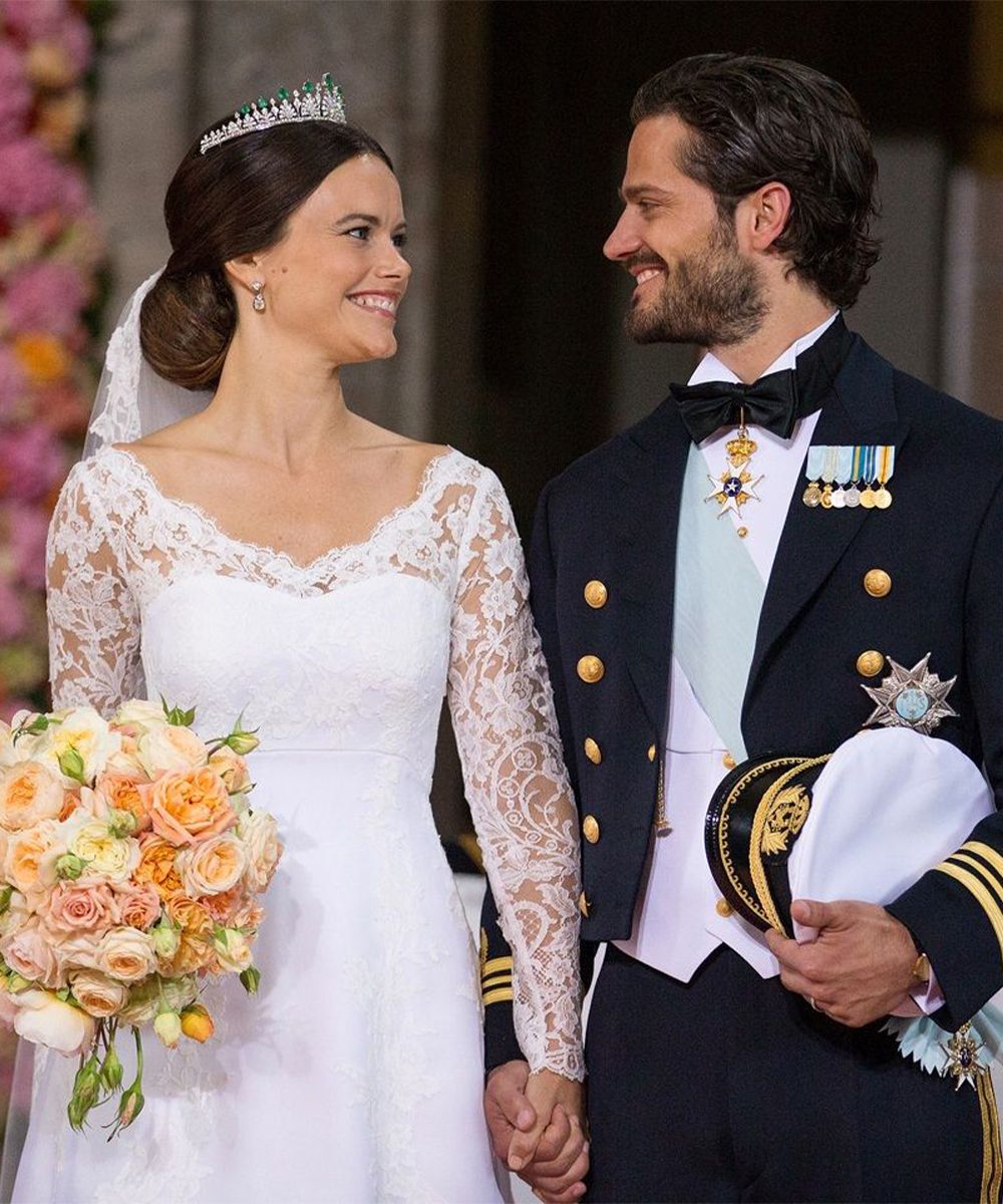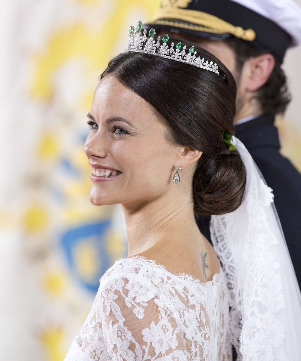 They are the simple and effortless brides. Both with black pencil that lines the eyes and creamy crimson lipstick on the lips. All combined with a classic chignon more or less pulled and wrapped by a bright crown. Sofia's idea of not wearing a veil and opting for a low and very voluminous chignon was beautiful.