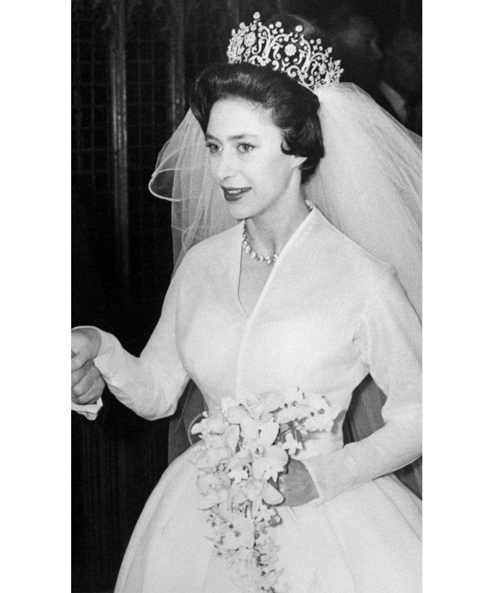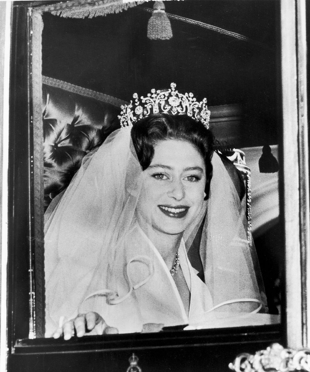 This was the case of Wallis Simpson's scarlet lipstick, highlighted even more by a black eyeliner that borders the eye. The crown-shaped hat with colorful feathers in pastel tones also stands out. A sort of aura around a well-pulled bun, which highlights the It-girl's radiant complexion. Like Simpson, Margaret Countess of Snowdon also loved to highlight her naturally plump lips. For her "yes day" he chose to accentuate them even more thanks to a vibrant red, emphasized by her hair, a fluffy crop carried all back and secured by an important crown.