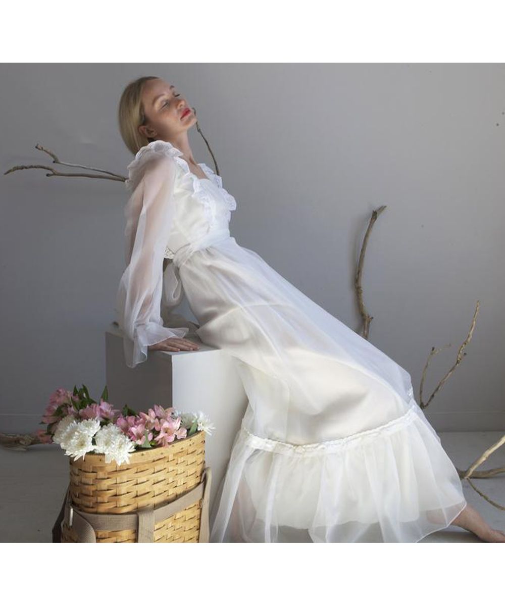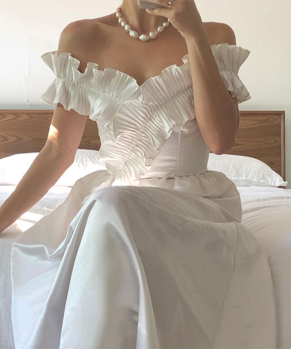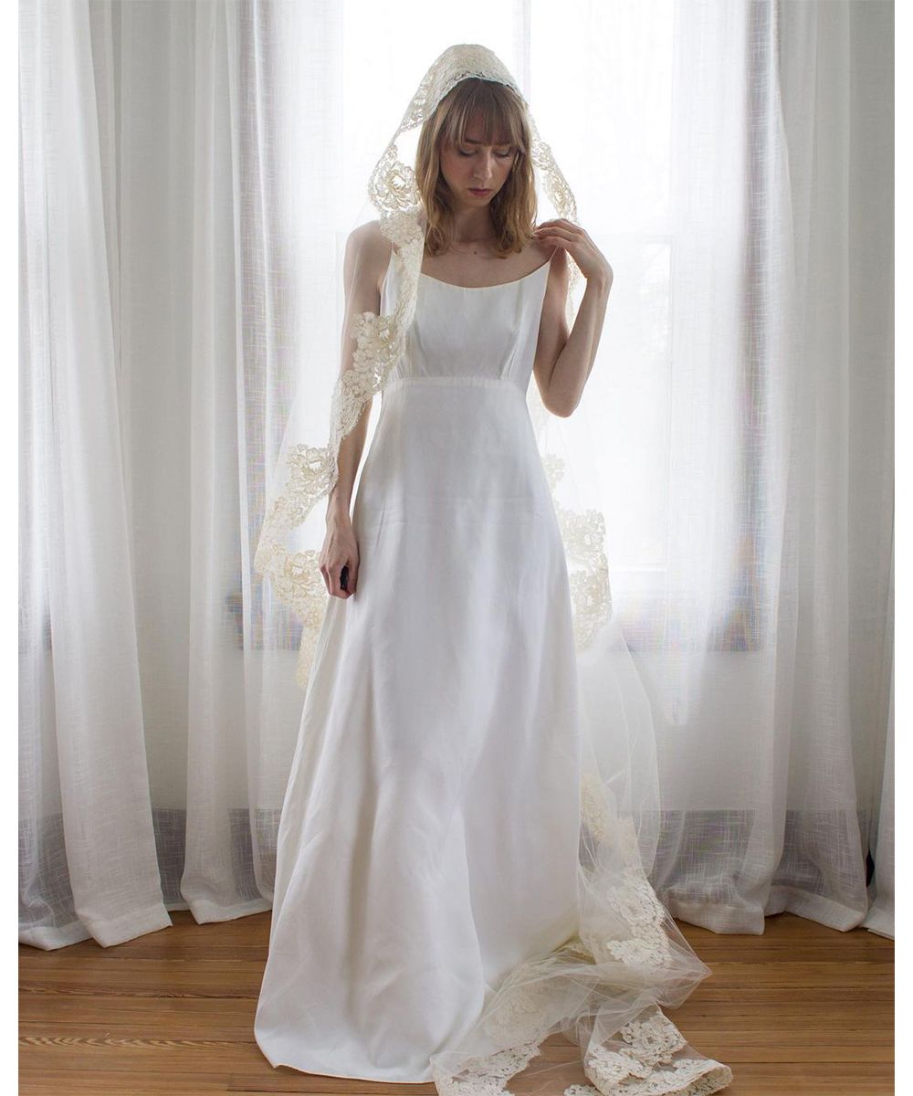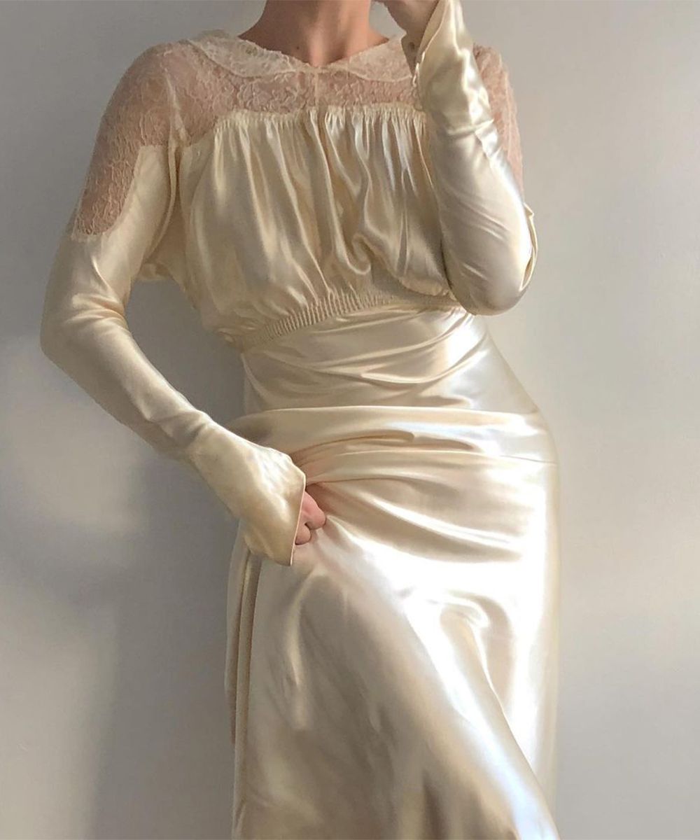 Browsing online is a great starting point to get an idea of what you want. But before you can make any serious decisions, it's important to see and try the dress in person, as vintage fashion has particular silhouettes. Rather than focusing on a specific dress online, consider finding vintage wedding salons in your area. In order to have enough time to have it delivered at home, measure it, and if necessary, think of a different solution.