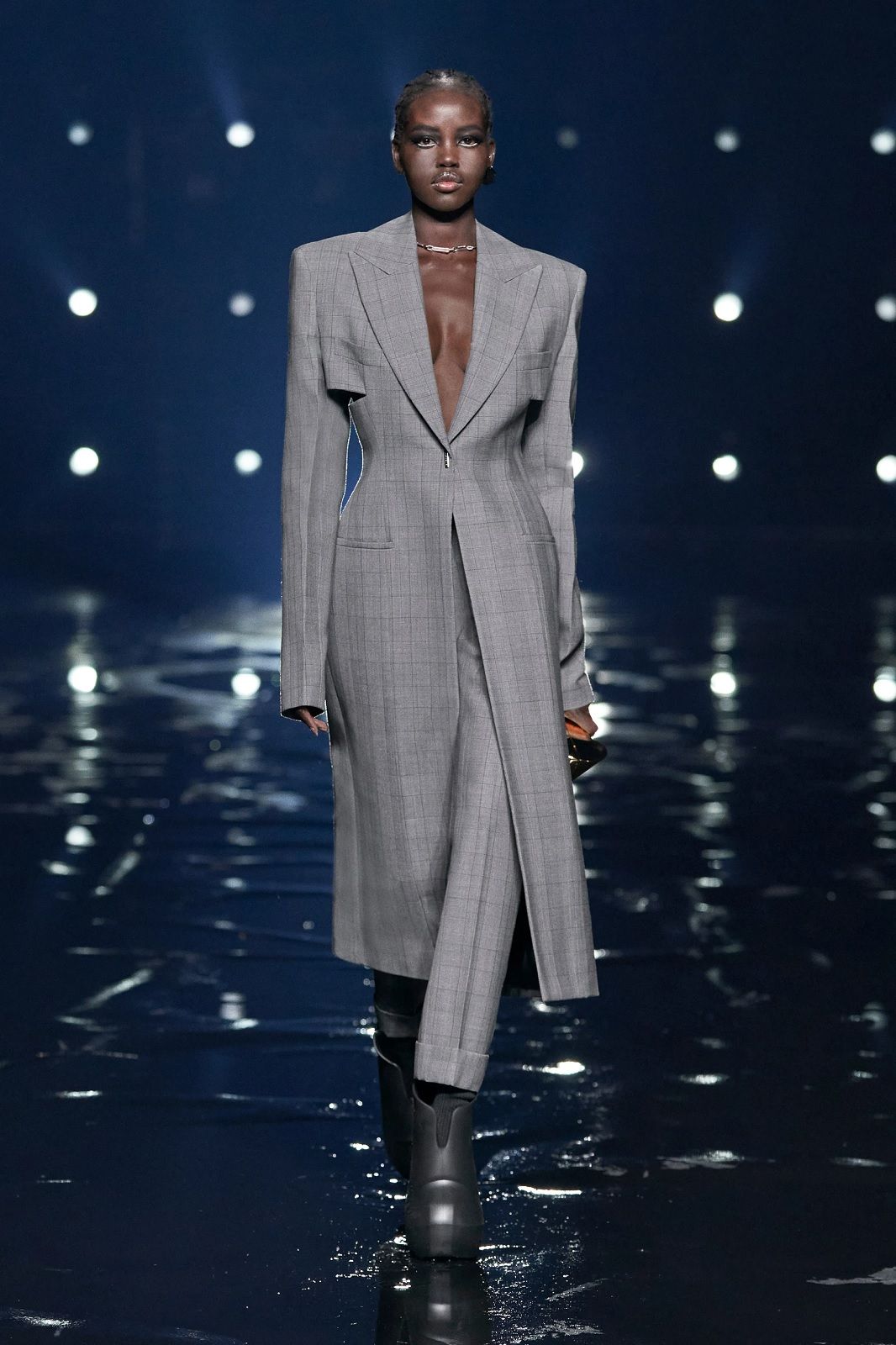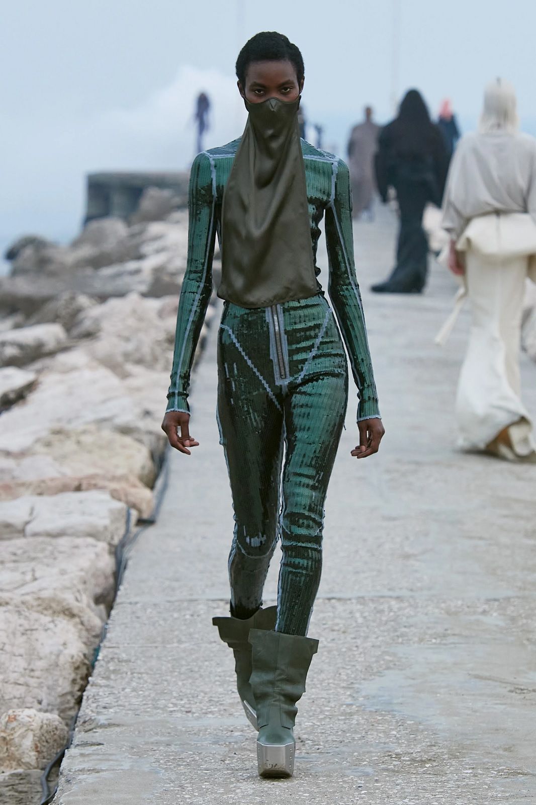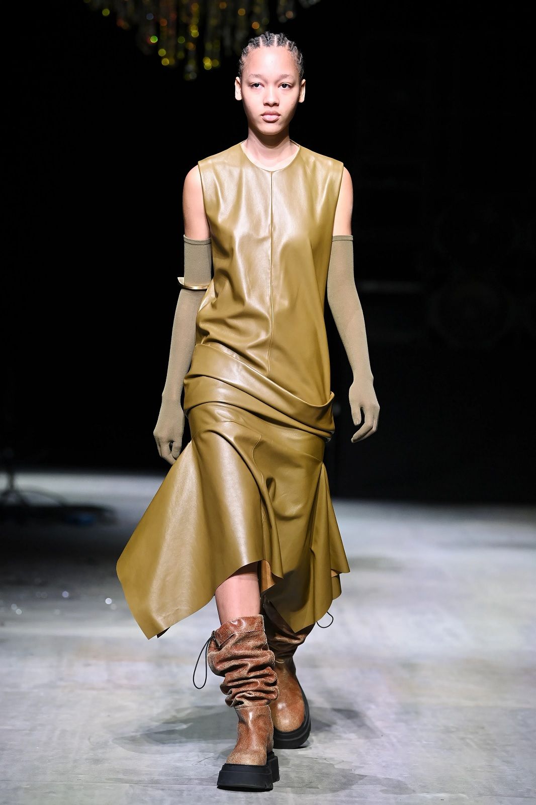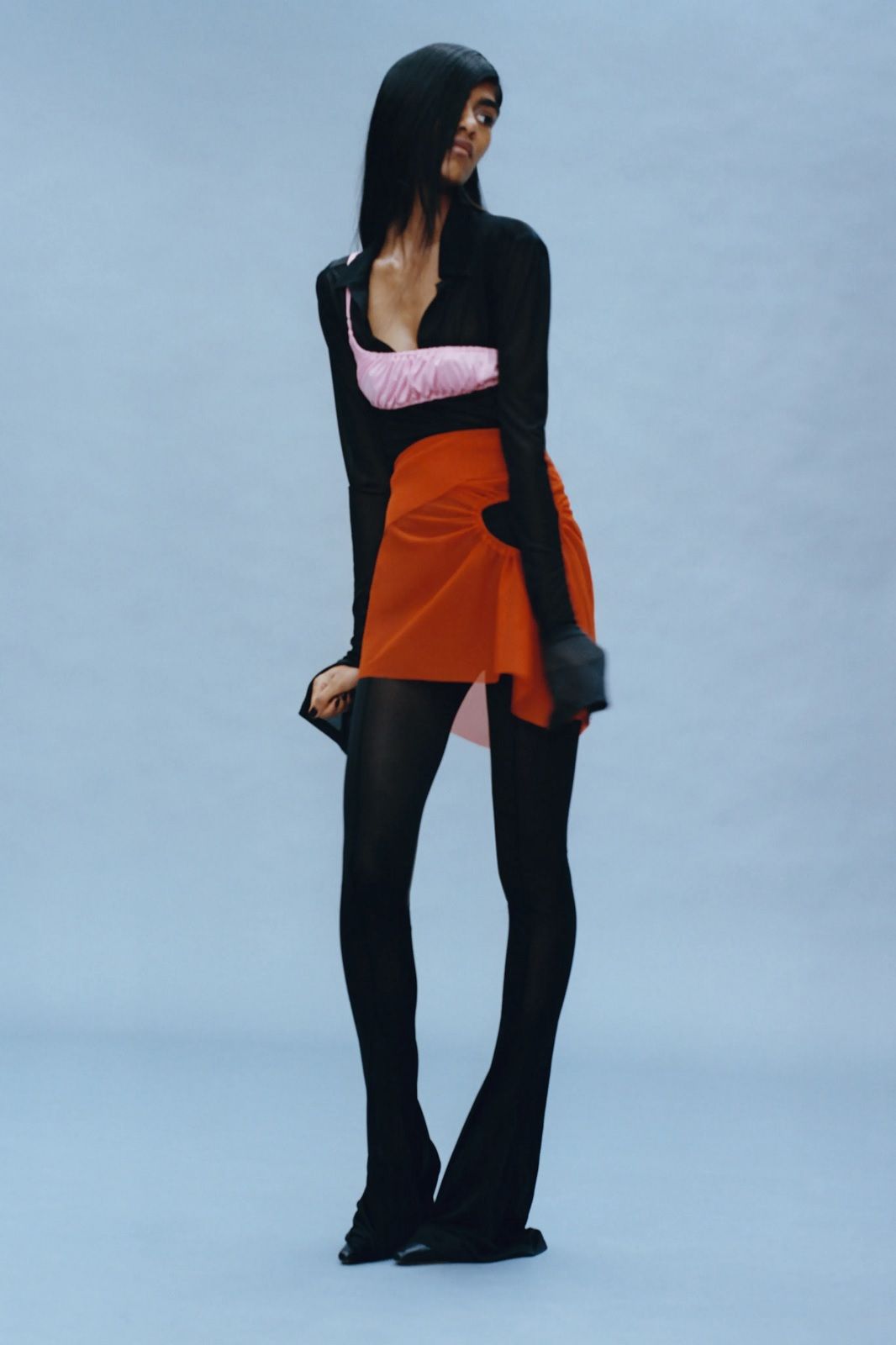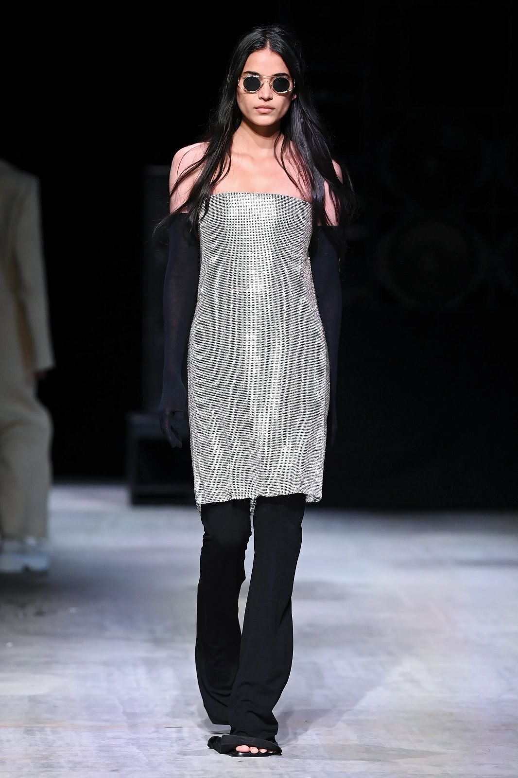 One item is not enough. The secret of the season is layering. Even in an unexpected way, with contrasting shapes, fabrics and materials. At Miu Miu the bra is worn over sweaters, the bodysuit over pants; at Courreges, Sportmax and Jacquemus the dress goes over pants; Rick Owens opts for a super hot combo of pullover, tee, pants and down jacket. There are many inspirations, depending on personal needs.