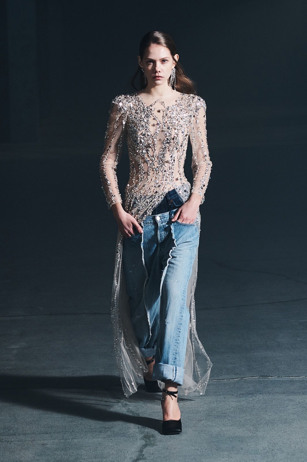 The shapes change, as does the height of the waist, but jeans and denim never leave our closet. In FW21 the most popular material in the history of fashion becomes even more important, declined in jackets, miniskirts and dresses, but especially in jeans that, this year, have a relaxed fit, baggy and can be worn with everything from the dress studded with pearls as for Rokh, with sparkling jewelry as for Schiaparelli or with the Norwegian wool sweater as for Rag & Bone.