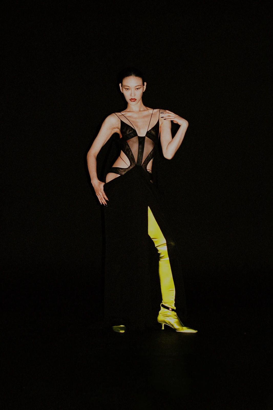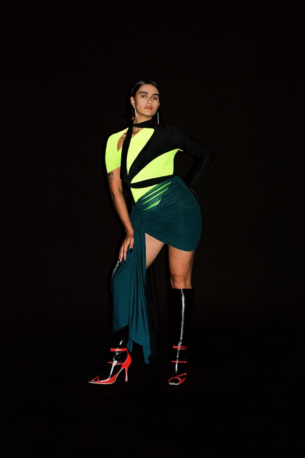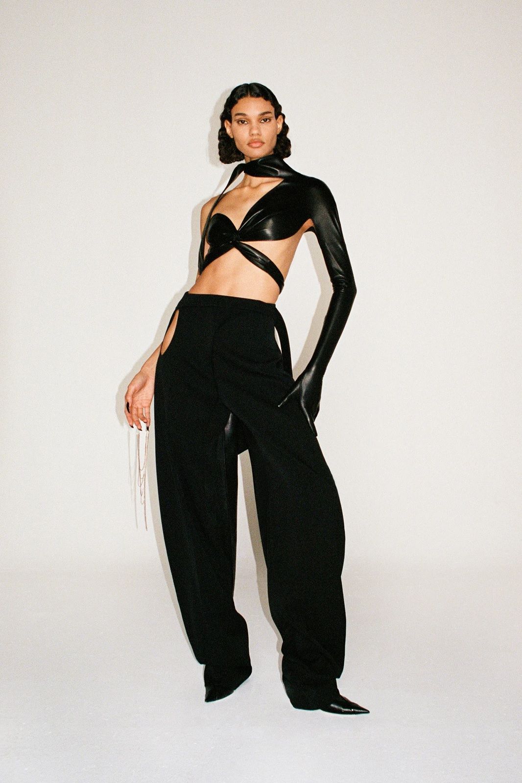 Cadwallader conceives the brand's new woman as if she were the mistress of a sci-fi tale, a modern evolution of the supermodels dressed by Thierry Mugler, the same ones who looked like divine cyborgs in George Michael's cult 80s video Too Funky. Like his predecessor, even the new creative director designs clothes that dress and sublimate the female body, proposing a strong, sensual, almost alien femininity. At the base of the collection is an alternation of contrasts, full and empty spaces, exposed and hidden skin (this time emphasized by the use of color blocking): cut out dresses, tight catsuits, couture bondage bodies, high-waisted leggings, deconstructed trench coats, jackets with sharp shoulders, rah-rah skirts and patchwork denim. The innovation of this season are the hints of color breaking the black, but also the materials such as mesh with star pattern, techno jersey and recycled lycra that has a sort of liquid effect. Even the accessories, from micro chains to shoes made in partnership with Jimmy Choo are interesting and super sexy.
