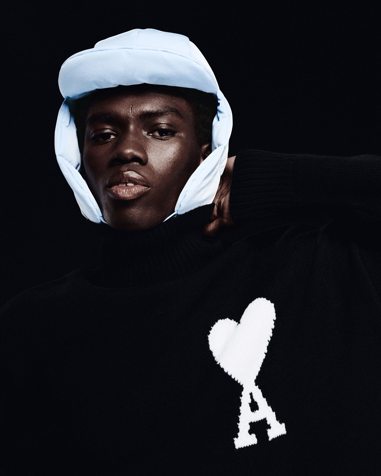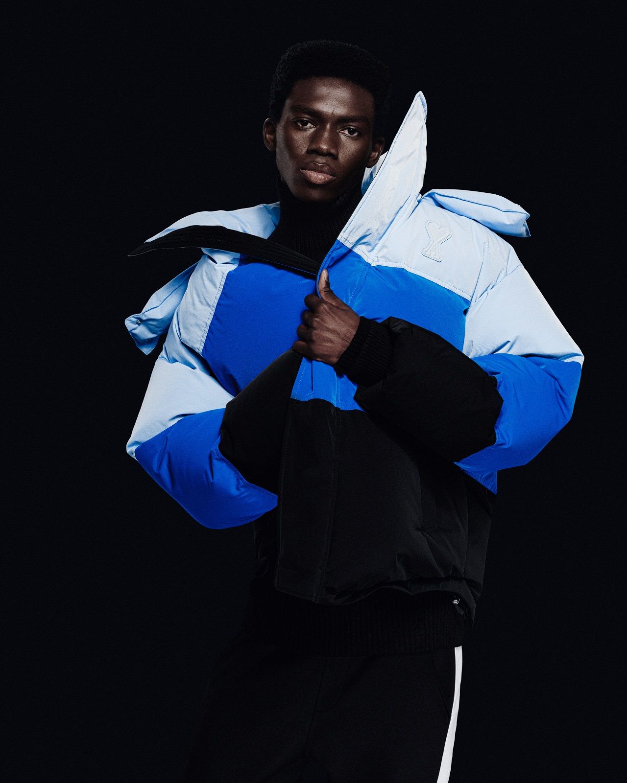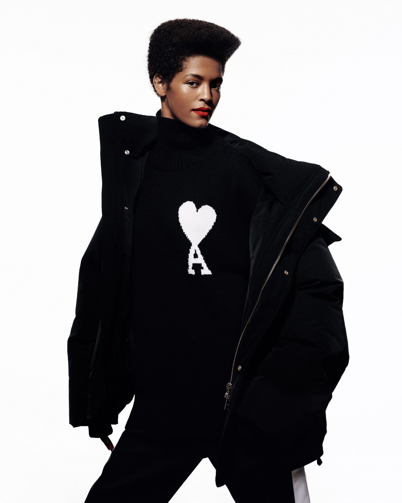 The AMI Paris x Mytheresa capsule, presented with an editorial shot by photographer Ferry van der Nat, starring the Ottawa Kwami and Laiza models, is available from November 17 on Mytheresa.
