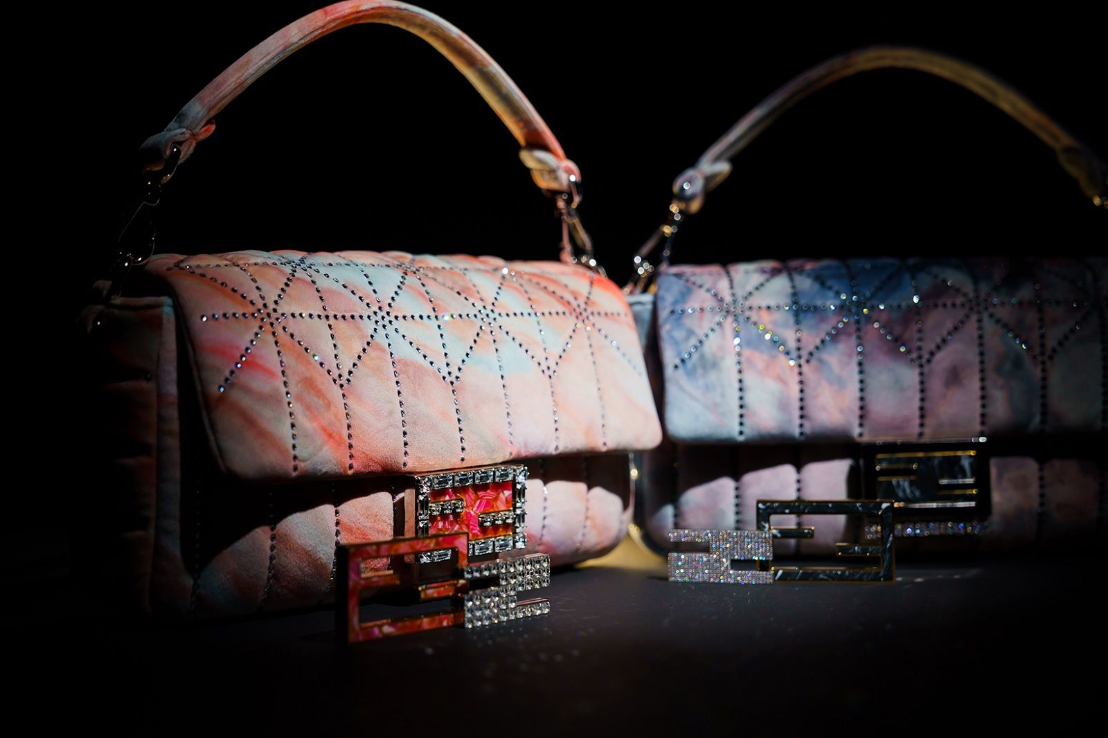 Who wouldn't want to find a customized Fendi Baguette under the Christmas tree? From today, Thursday, December 2, some lucky people will be able to unwrap the iconic it-bag and pose as Carrie Bradshaw, thanks to the new Special Project of the Roman Maison. Just in time for the upcoming holidays, the brand is launching an express made-to-order service that allows you to customize the bag with three different types of buckles, each magnetic and interchangeable. The piece is available in different colors and patterns such as with smooth and colored micro and macro crystals or in enamel and stones imitating marble patterns.