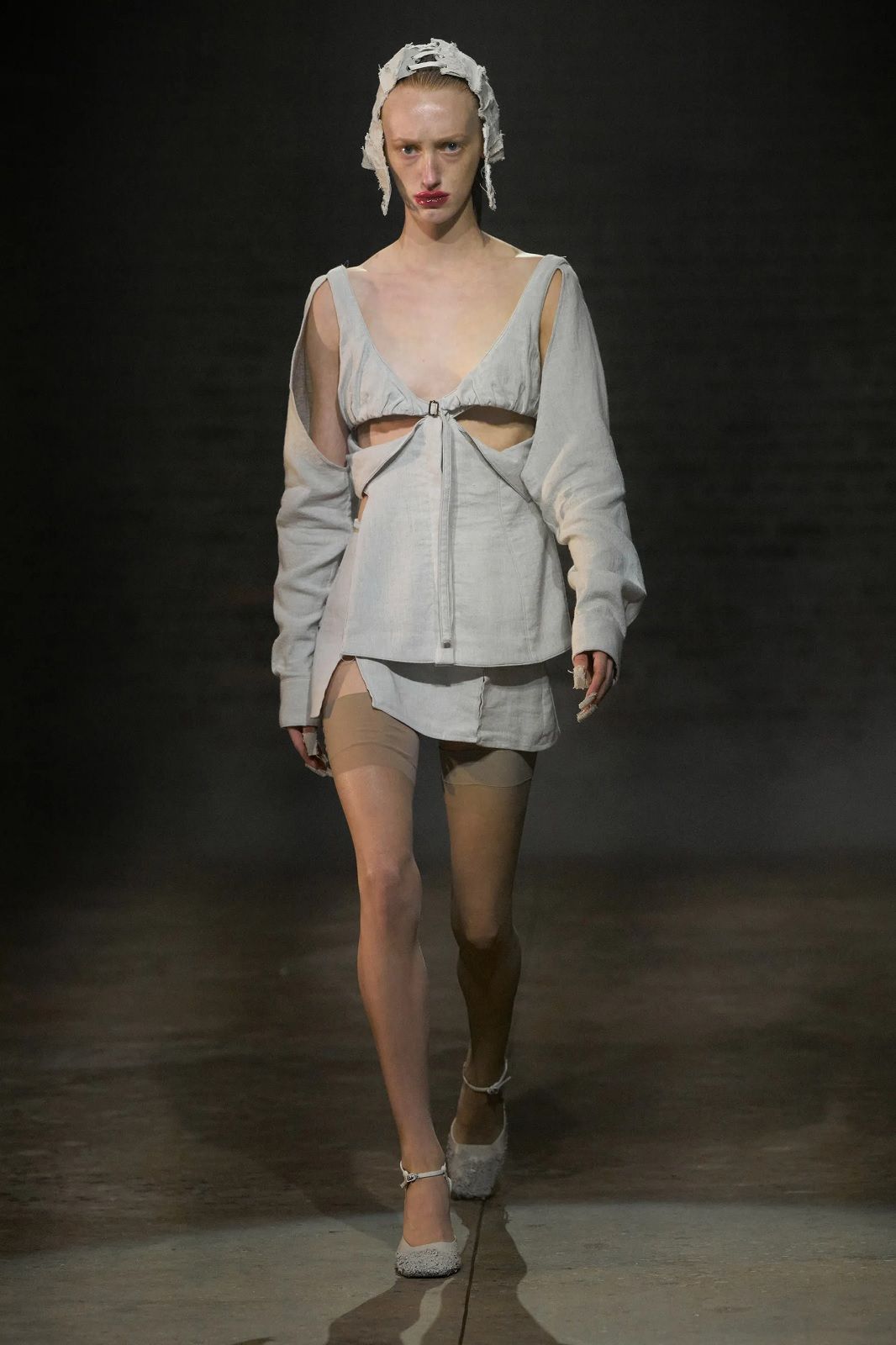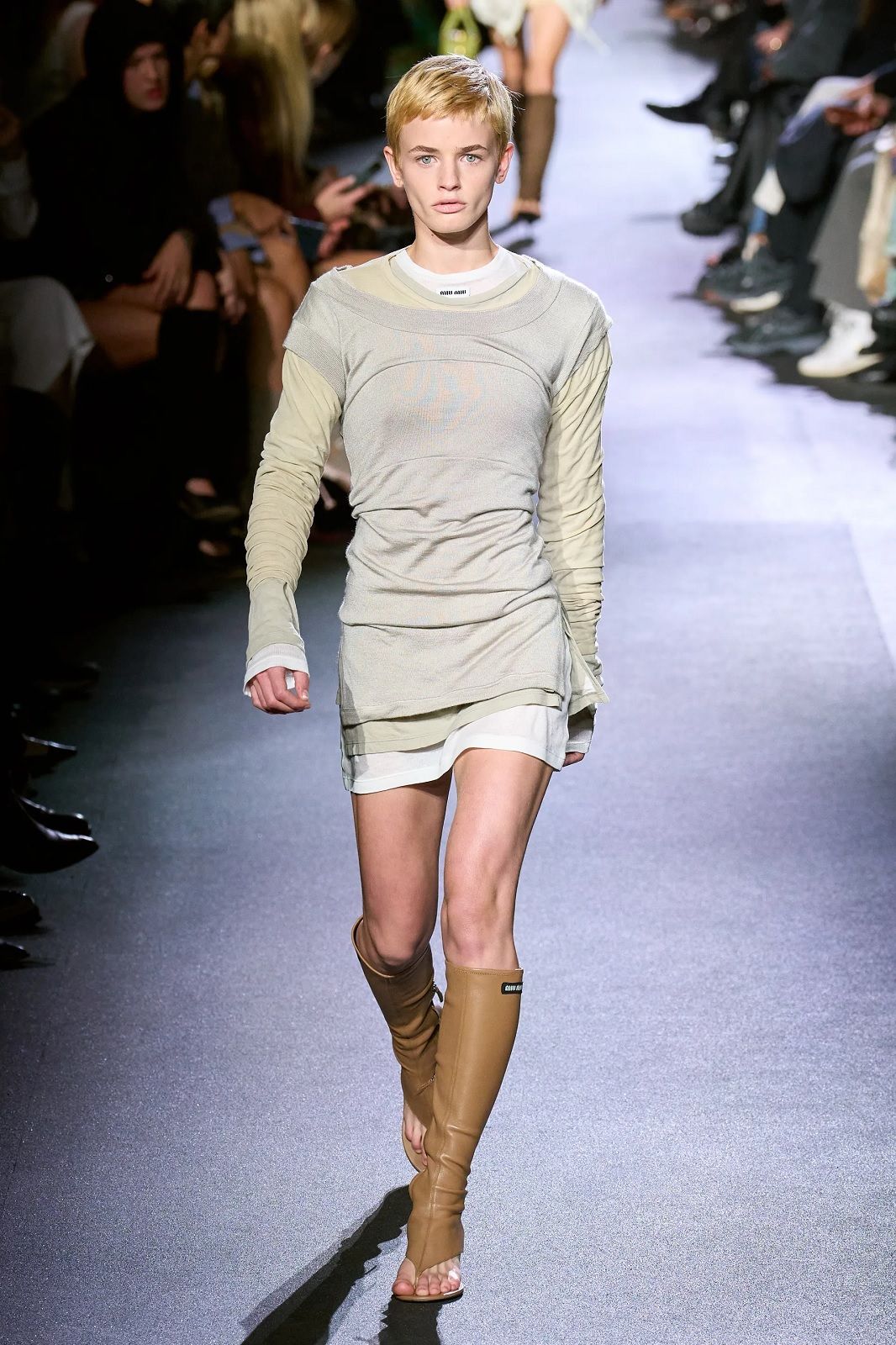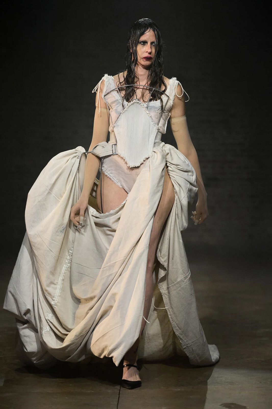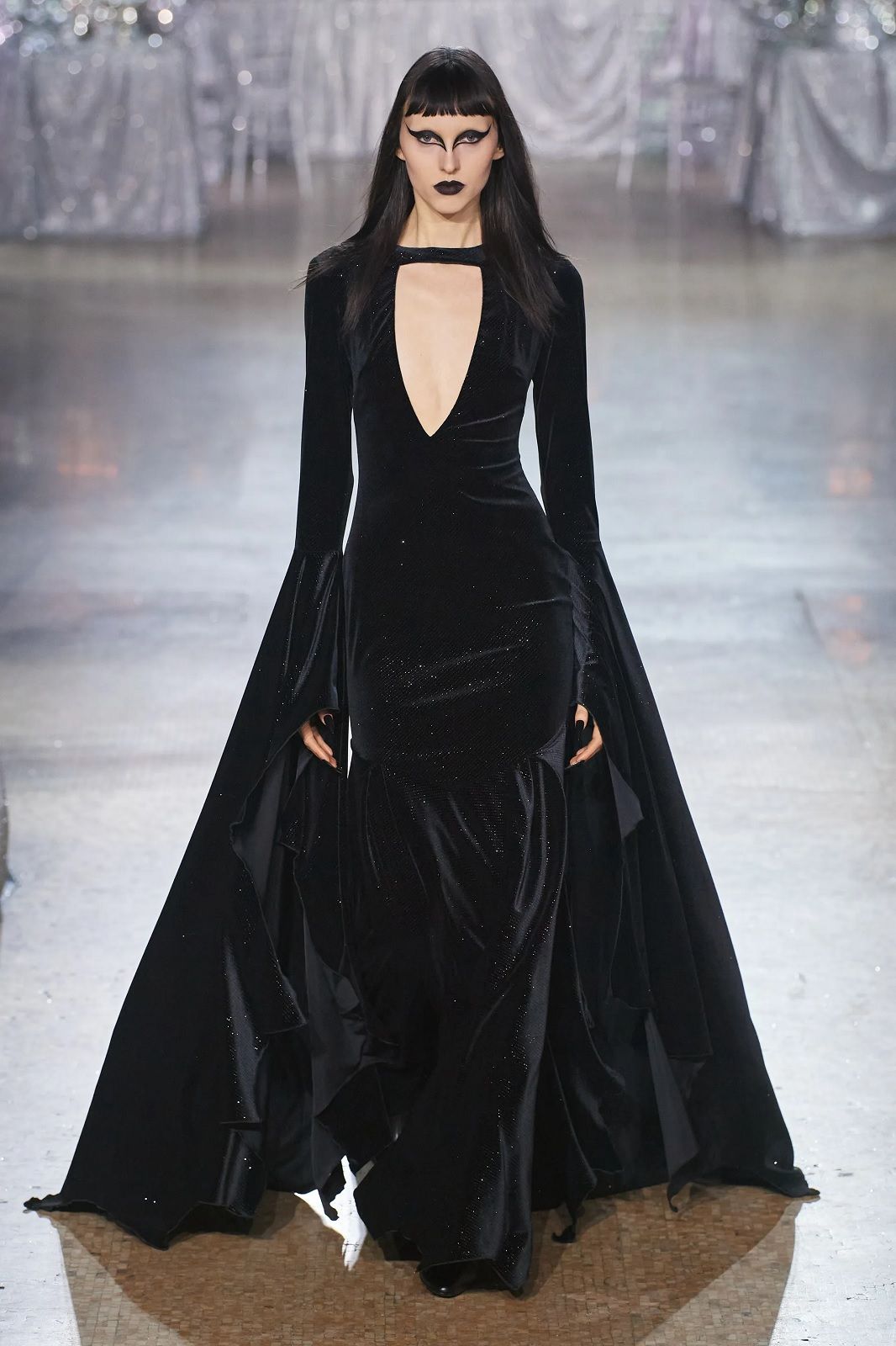 Designers, like other creatives, have often embraced the mediaeval aesthetic in their collections, dressing models as ladies, knights, minstrels, kings and queens, witches and fairies, mixing elements from history with others from folklore. A few examples? Dior's FW1998 haute couture, Alexander McQueen's FW10 and FW13, Chanel's Pre-Fall 2013, Dolce & Gabbana's FW14, Valentino's SS15 and Paco Rabanne's FW20. Capes, hoods, tights, tunics, armour, houppelande dresses, chainmail, bodices and corsets, revisited ad hoc, are returning in more and more brands. Blumarine was the latest to fall under the spell of the dark ages. For the autumn-winter 2023 collection, Nicola Brognano fused the fashion of 2000 with the myth of Joan of Arc, bringing contemporary heroines to life in tight-fitting, silver Lycra dresses and long, openwork knit tunics. At Rodarte, too, mediaeval allusions helped dress a coven of beautiful witches in long black dresses ready to cast a spell on anyone who got in their way; while the soft, layered jumpers seen at Miu Miu for SS23 looked like some kind of 2.0 reimagining of the night tunic from that era.