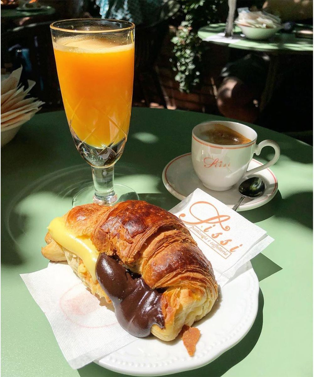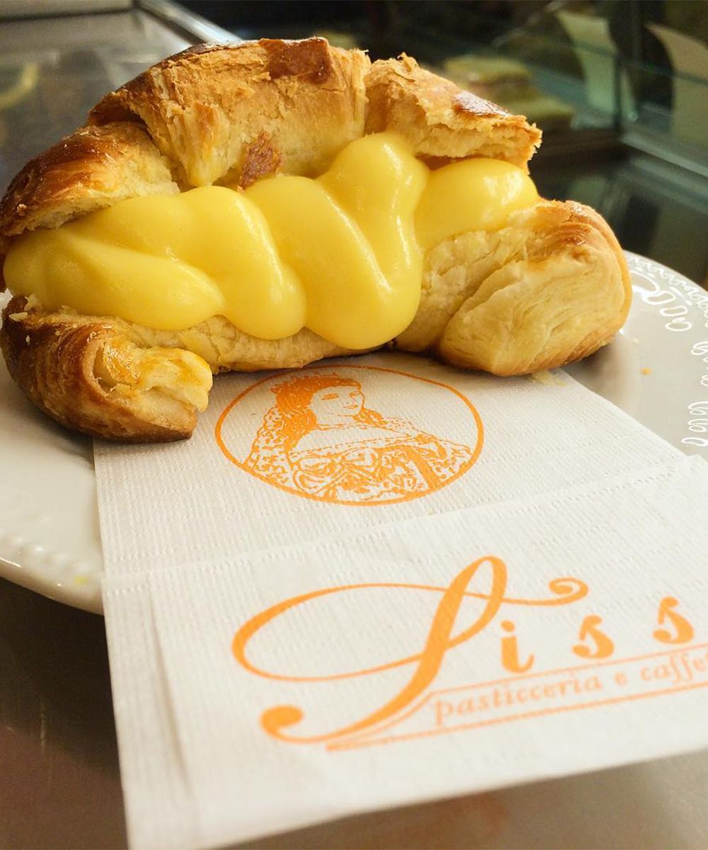 Not only sweets. Pasticceria Sissi is renowned for its artisan croissants filled with (a lot!) of cream or chocolate. Ideal for breakfast, brunch and lunch, the restaurant also offers an excellent variety of savory dishes, like savory croissants with ham and cheese.