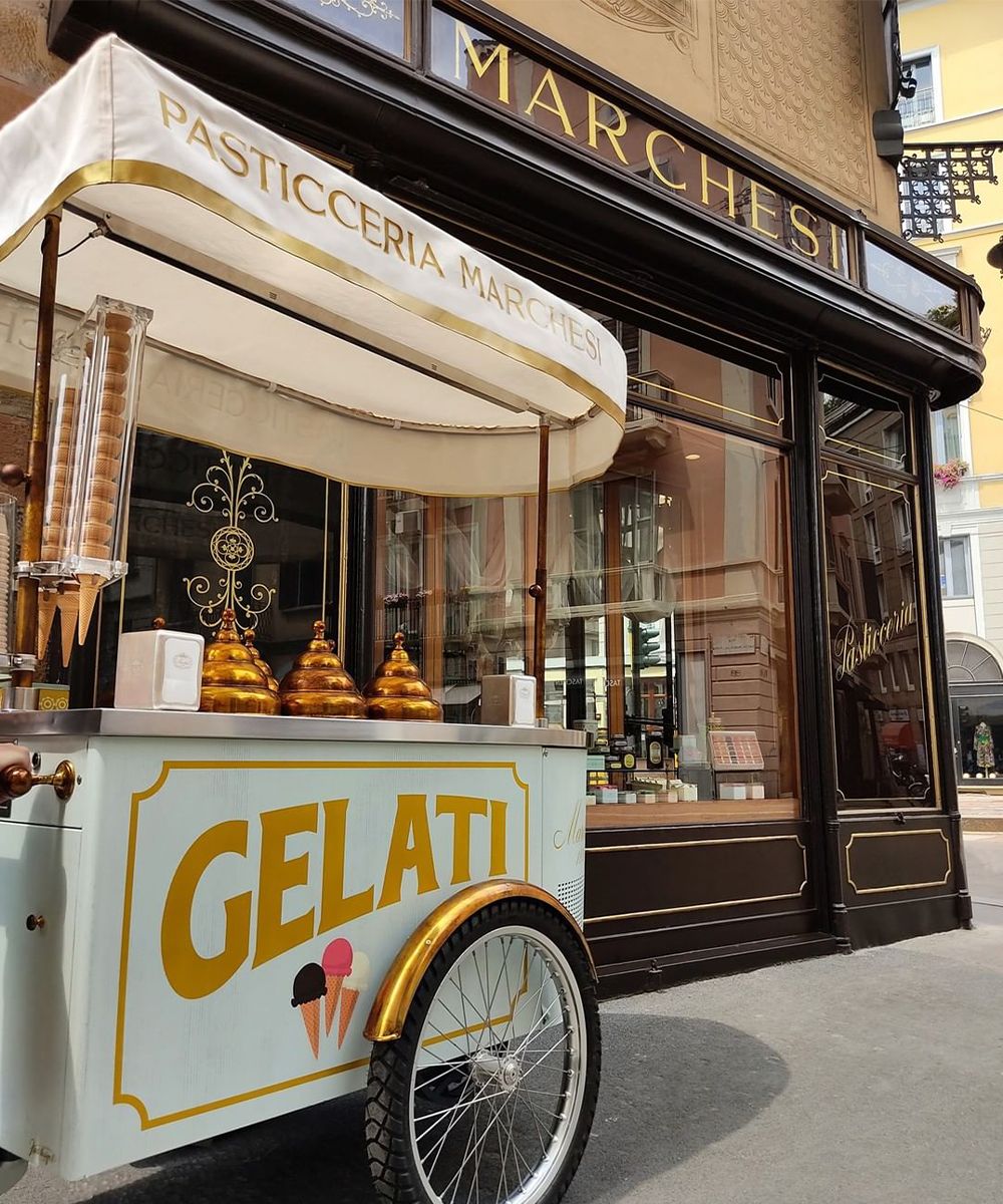 Marchesi 1824 is one of the oldest pastry shops in Milan, owned by the Prada group, which stands out for its refined pastry, the offer of chocolate and ice cream, and the production of Panettone, the famous Milanese dessert. There are 3 different locations in Milan, but the coolest is the one overlooking the Galleria Vittorio Emanuele.
