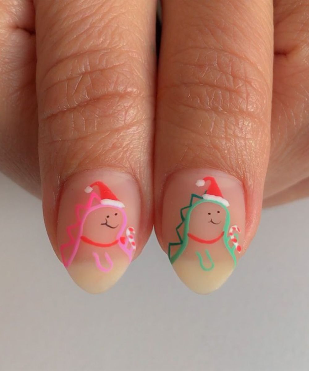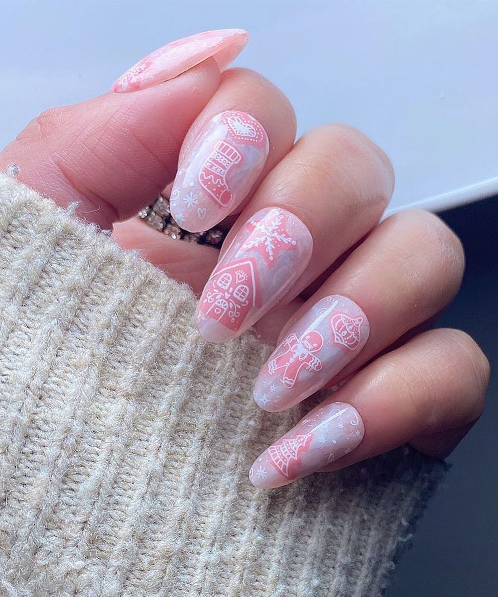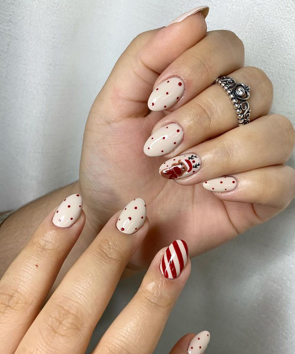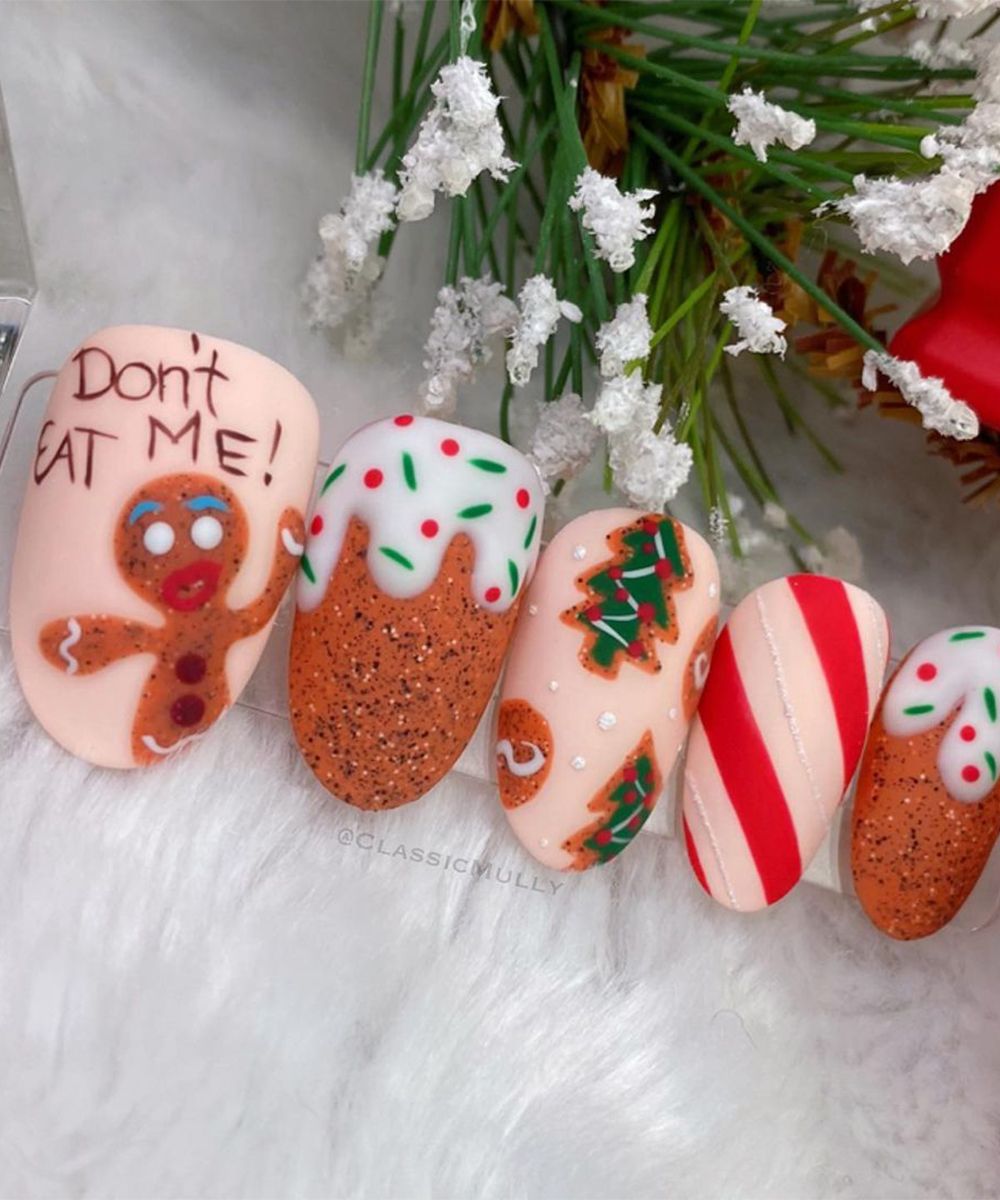 A mix & match of all the elements related to Christmas that come to your mind: reindeers, Santa Claus, snowmen, stars, tree balls, gingerbread cookies, in short, go ahead with the imagination! This is the nail art for those who unconditionally love this time of the year.