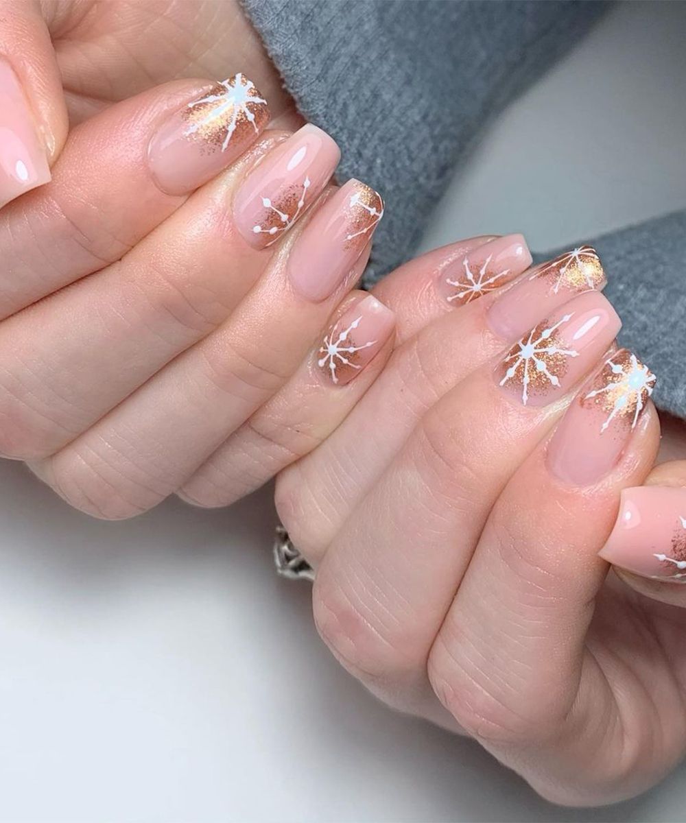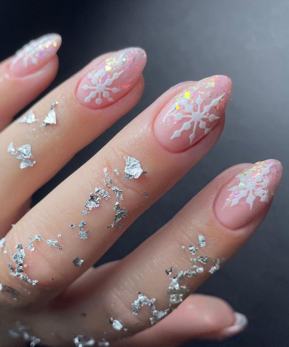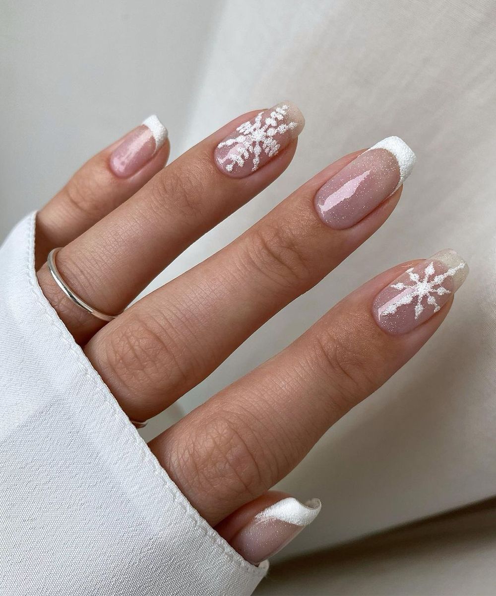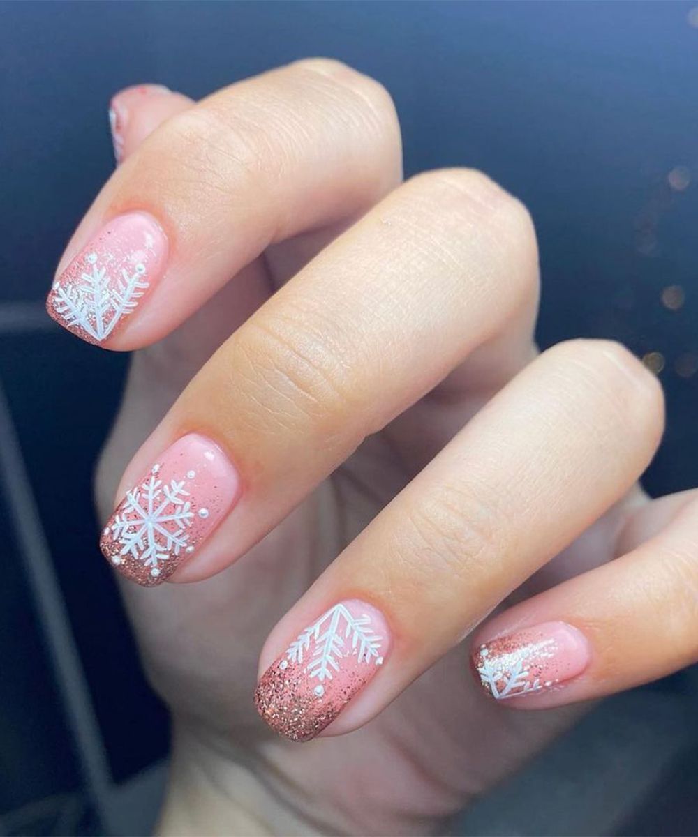 The most romantic Christmas nail art, for those who love delicate colors and don't want to know about red, gold, green and bright colors. For those who are fascinated by falling snow and would spend hours watching the snowflakes come down or are nostalgic for snowmen to do in company.