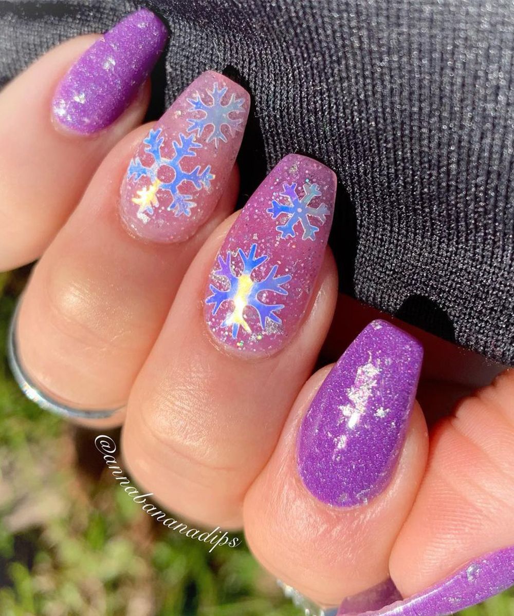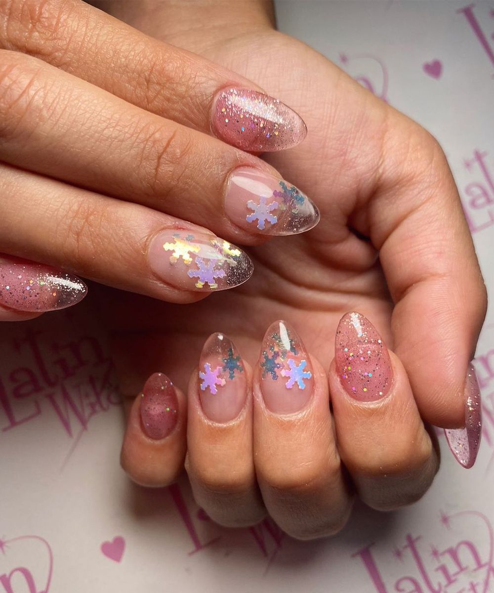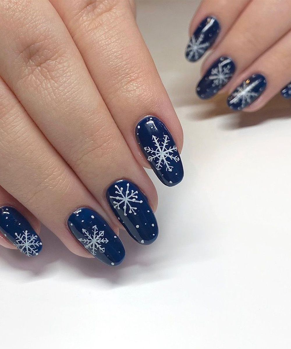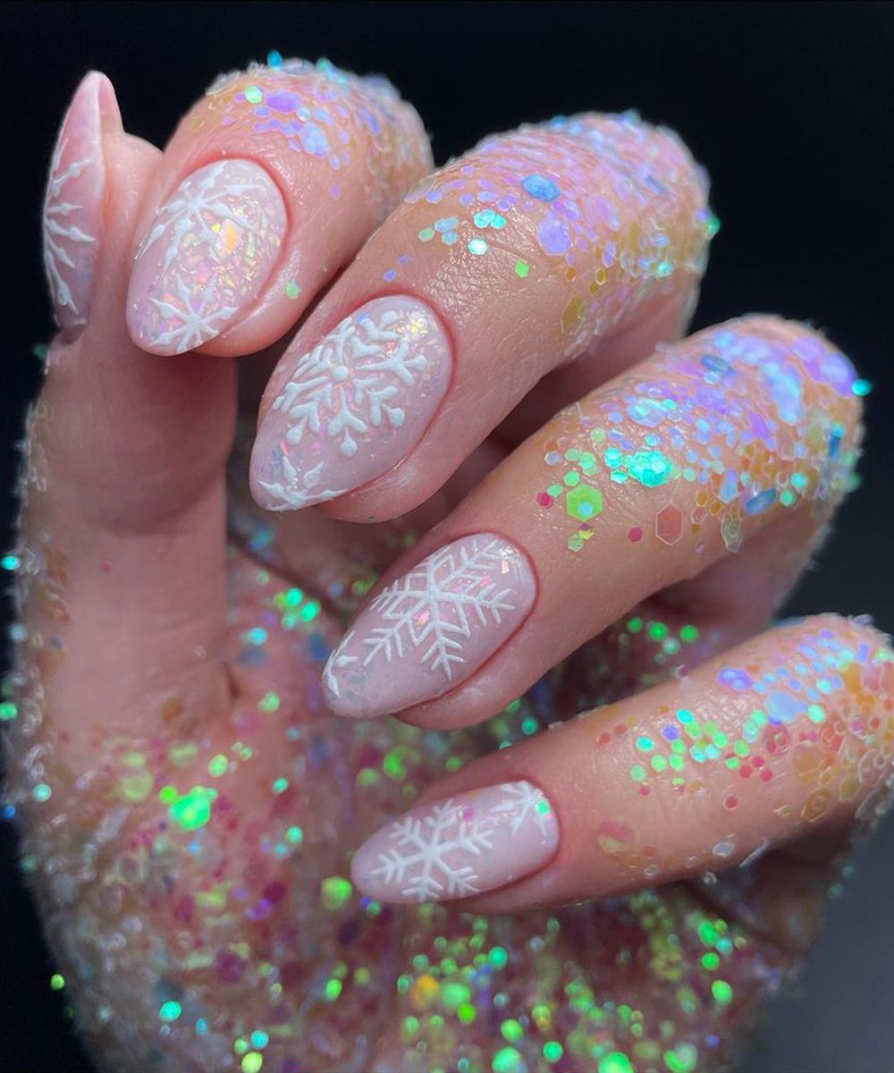 The most romantic Christmas nail art, for those who love delicate colors and don't want to know about red, gold, green and bright colors. For those who are fascinated by falling snow and would spend hours watching the snowflakes come down or are nostalgic for snowmen to do in company.