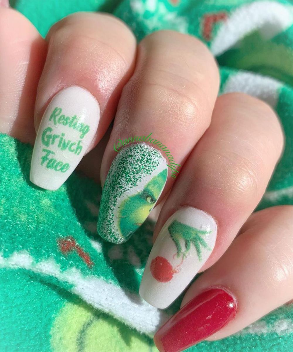 The last nail art trend is an extra, dedicated to all those who deep in their hearts love Christmas but feel a bit like the Grinch, one of the classic movies to watch every year during the holidays!