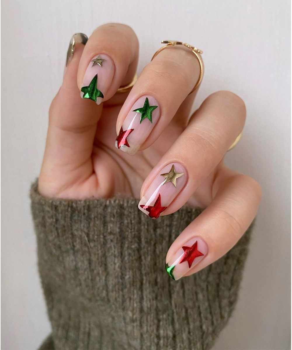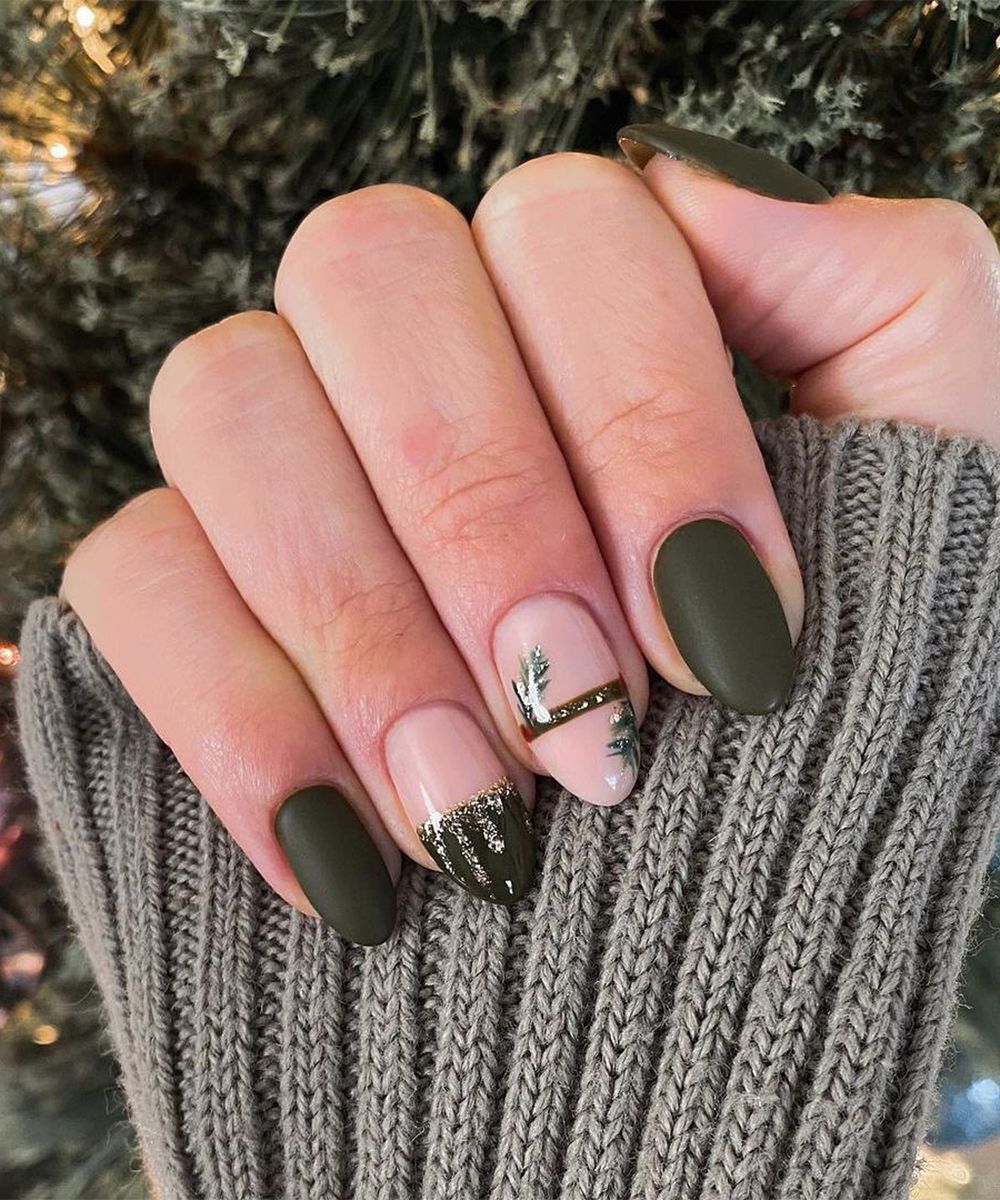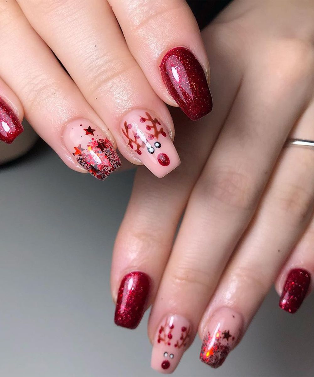 Those who do not like decorations and drawings on their nails, but do not want to give up a Christmas touch, can opt for a nail art in shades of color related to Christmas: green, red, gold., that can be declined in different types of nail art: classic all-over nail polish, glittery french, geometric lines, abstract designs, and so on.