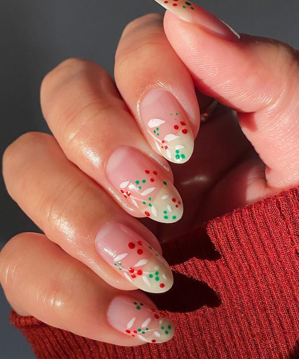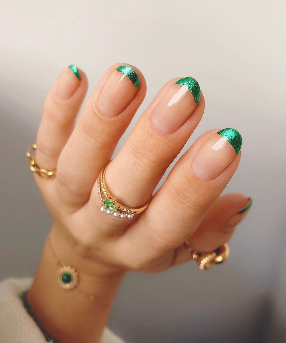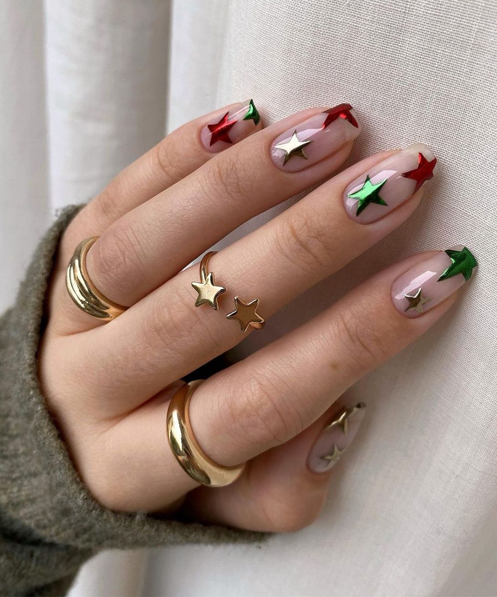 Those who do not like decorations and drawings on their nails, but do not want to give up a Christmas touch, can opt for a nail art in shades of color related to Christmas: green, red, gold., that can be declined in different types of nail art: classic all-over nail polish, glittery french, geometric lines, abstract designs, and so on.