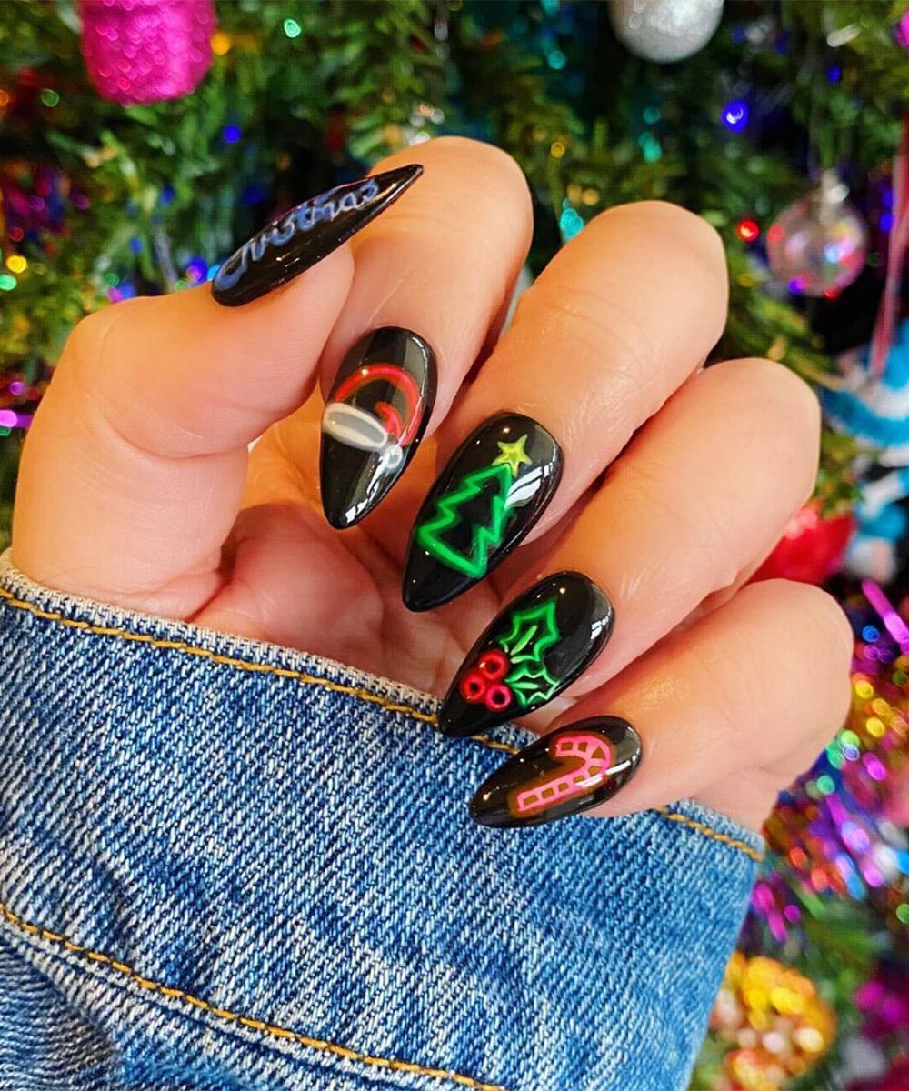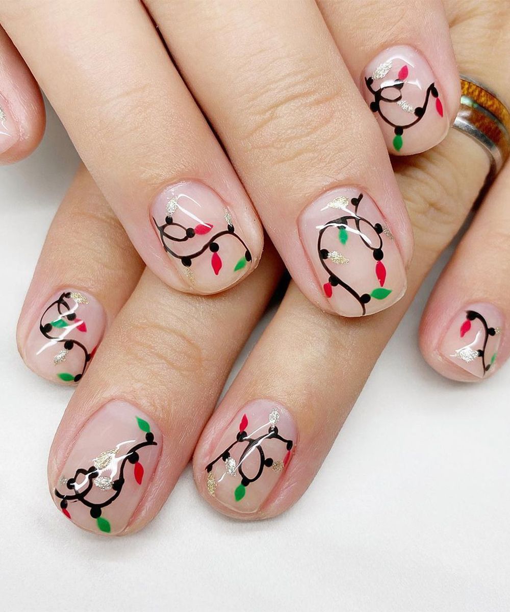 If you are late with the decorations at home and this year you have not yet had time (or desire) to prepare the Christmas tree, you can replace it with a themed manicure! For those who do not really love the tradition of the tree, even just decorative lights can suffice.