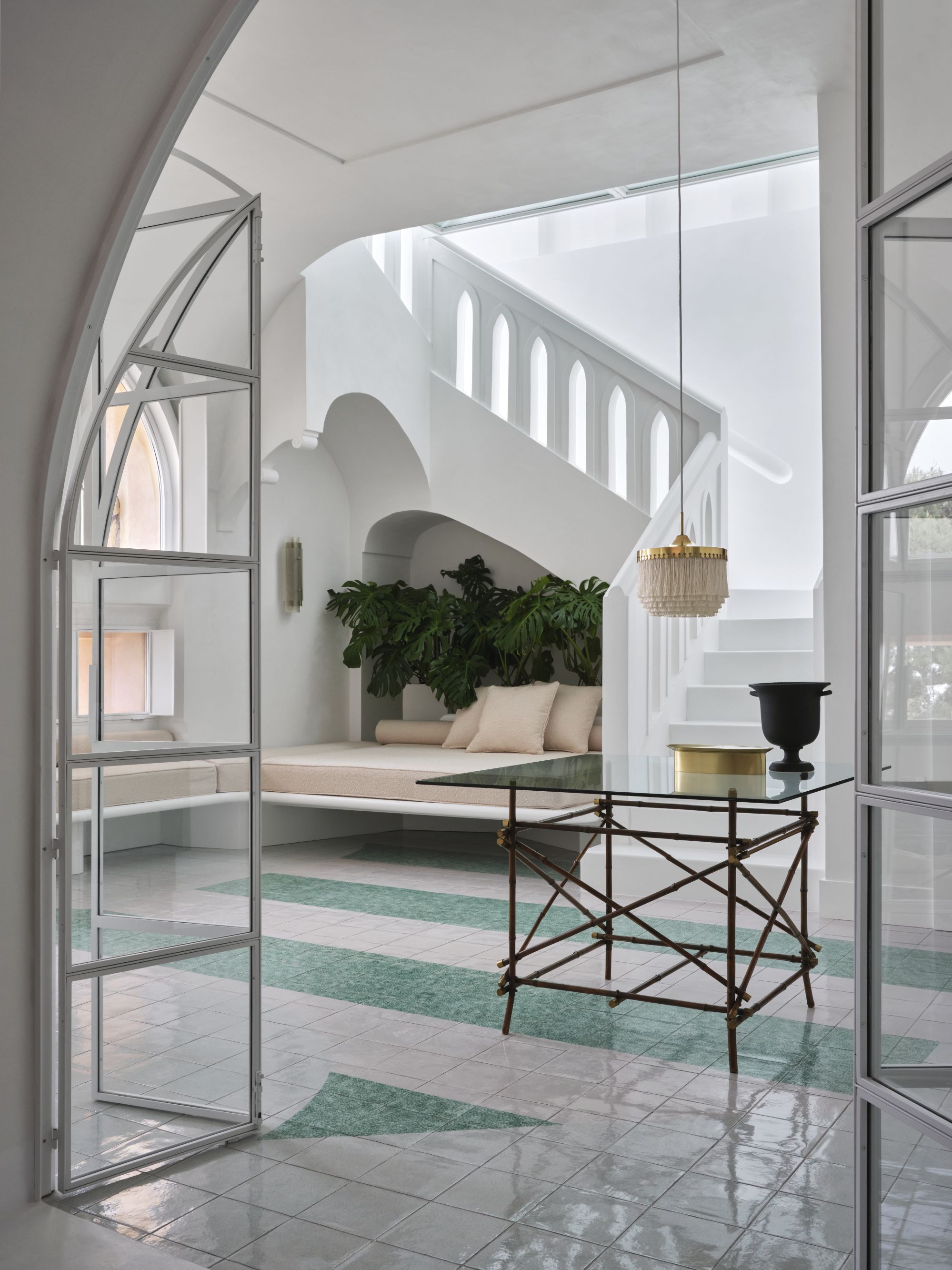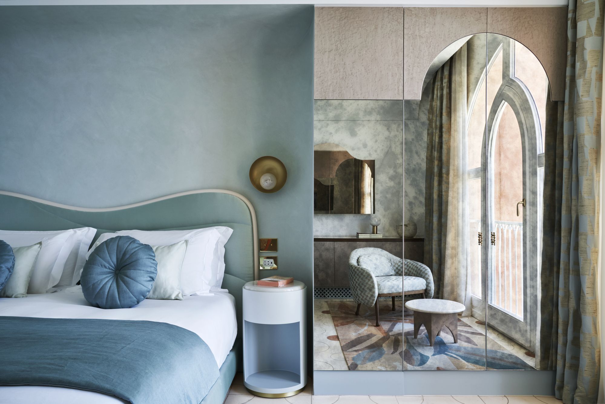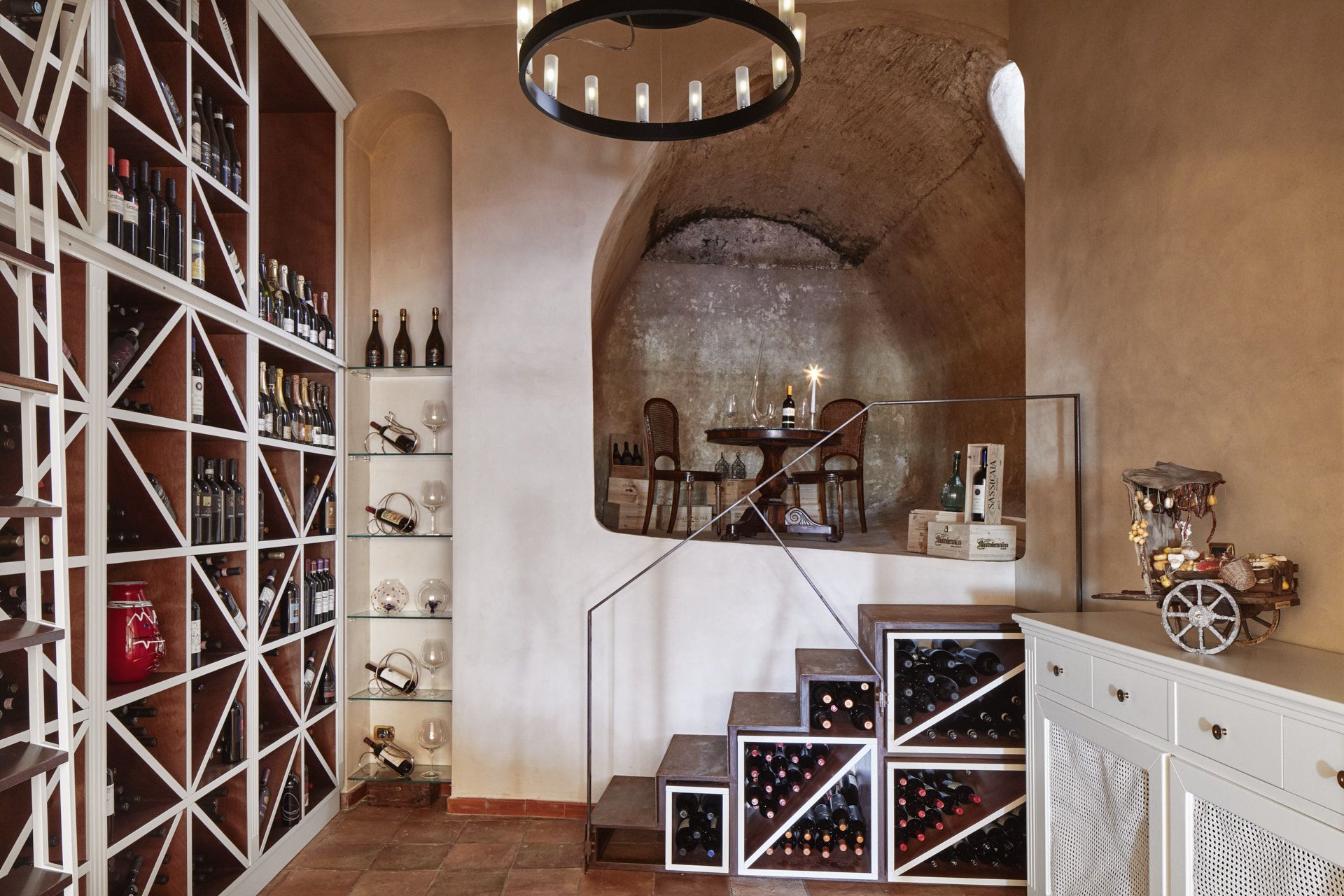 Palazzo Avino's 2023 season adds new chapters to the narrative. The first of these is the Infinito Suite, a vivid and articulate recovery project suspended in time, designed by architect Giuliano Dell'Uva. "I chose him and this direction because I was struck by his strong focus on local craftsmanship. The infinity suite is the only room on the fourth floor, the highest point of the building. It is a duplex with a beautiful roof terrace and a small private pool. The idea, which we also worked on from an artistic point of view, was to design the space so that guests feel as if they are in a work of art. Through the Alfonso Artiaco Gallery in Naples, we got in touch with David Tremlett, a British artist whose work is characterised by the use of colour. Last summer, David saw the space and imagined how one of his works could be transferred there. So he drew up a design, which was then brought into the space on about a thousand handmade terracotta tiles."