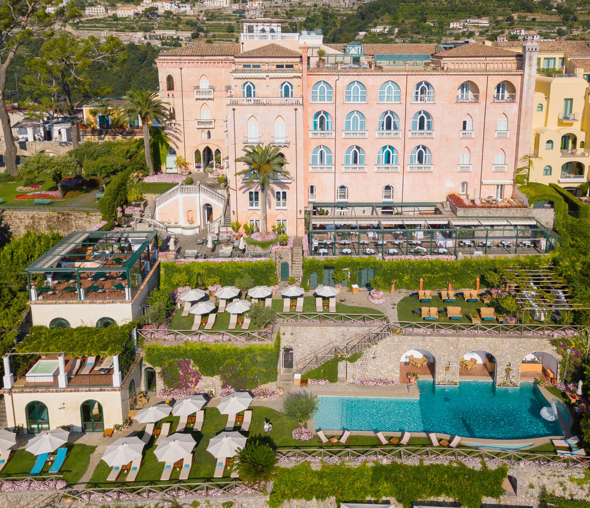 Mariella Avino's unique, young and dynamic vision of hôtellerie, but always with respect for tradition. When the palazzo was bought by Mariella's father Giuseppe in 1995, it became a real case in point in an area where legendary hotels belong to the same territory. "The palazzo is an aristocratic villa from the 12th century that was later converted into a hotel. So the rooms of the structure were adapted to what the villa was before. For me, it is very important to maintain this quasi-residential context. Year after year, depending on the different projects we do, I try to bring the structure back in time. I want to move away from any modern suggestions in terms of design and always try to keep my feet firmly in history." What it means to Mariella today to be a young woman running a luxury hotel is clear. You can feel it in her eyes and smile, just as any of us can when we talk to a friend about the thing we love most in the world. "For me, this position has always meant helping the team achieve the same direction of inspiration. The hotel is lucky to be located in an incredible spot in Ravello, on a post cliff that is certainly one of the most famous in the world. The building itself has very particular iconic features that have made it recognisable over the years. But surely there is a soul that needs to illuminate these walls and that needs to be constantly nurtured. That soul is the whole creative part of what we do inside the building, and for me that's the most important thing." Ravello has a unique atmosphere, the vertigo of its 365-metre height mingles with the scents of fruit, and when evening falls it feels like going back in time. "In recent years I have found more and more inspiration in researching our area and our history. Because we are a seasonal hotel, it's like we live seven months in high season. And because of this high intensity of work, it's important to be inspired by what we do and where we go."