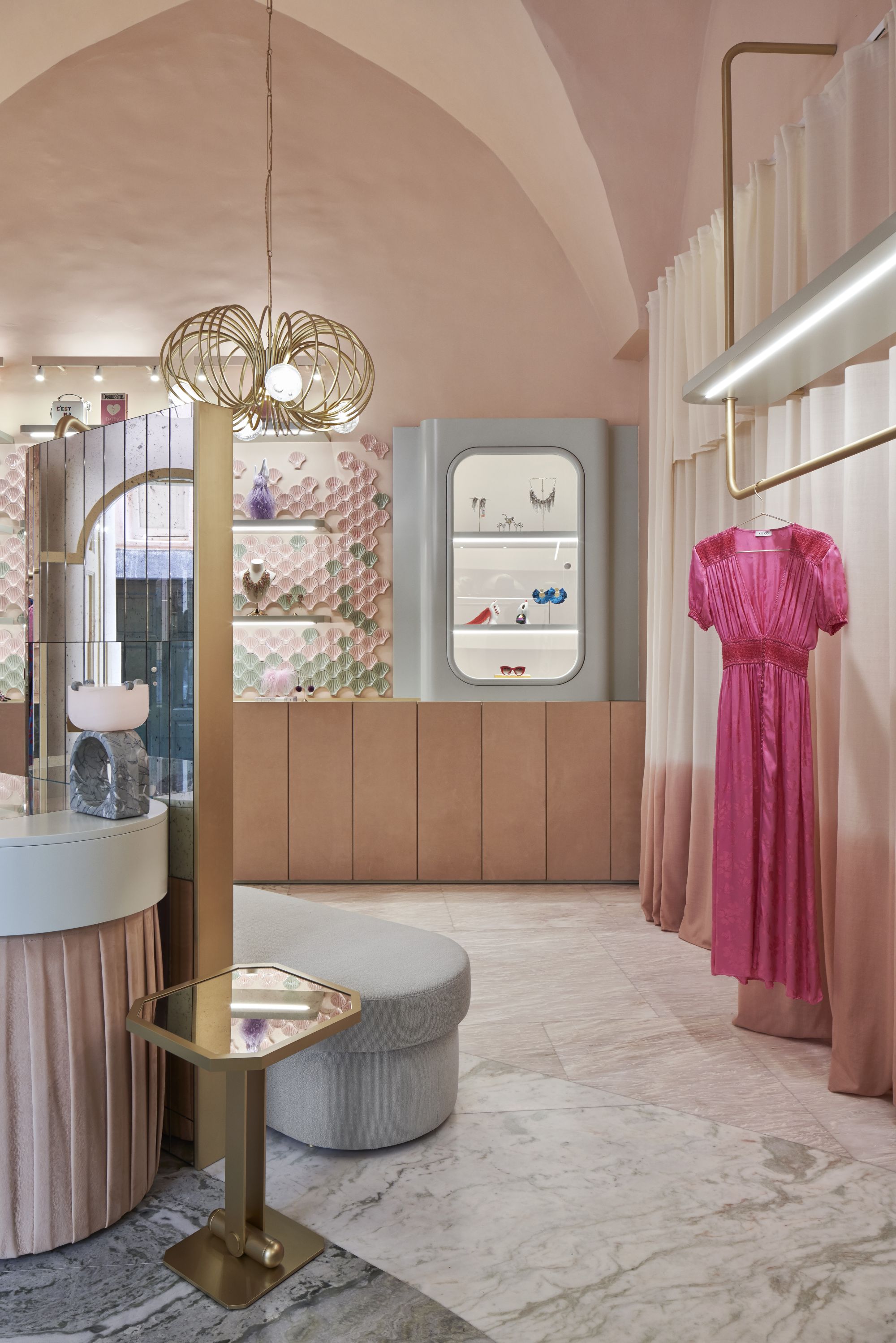 Each room is a place of peace and reflection. An open window with a unique view: of the sea and the sky, which has made it the new favourite place on the Amalfi Gulf. "When we opened I was thirteen years old, and certainly in recent years the clientele has changed a lot, including interest with respect to the coast. Since I came to the facility, from 2011 to now there has been an evolution with respect to a decrease in the average age of customers. In the past we had a clientele range of sixty to fifty years old, today our typical client are usually young couples who choose the Amalfi Coast for their dream trip. This I think is also a reflection of the activity that has been done, to refresh the facility with some additions like the Lobster Martini bar, the Beach Camp, and the Pink Closet." The boutique opened in 2019 and designed by architect Cristina Celestino is located a few meters from the entrance of Palazzo Avino and is accessed through a window facing the street: once you cross the threshold, the perception is that of entering an elegant contemporary cave. "Since 2019, the boutique has already evolved because the first year for me was an absolutely new experience. Then when there was Covid, I thought a lot about the fact that it was important that the closet also follow the concept of hotel research, so I started to collaborate with small brands of young designers, who year after year are making small collections with us. From 2020/2021 I also started to collaborate with Camera della Moda, which supported some of our designers."
