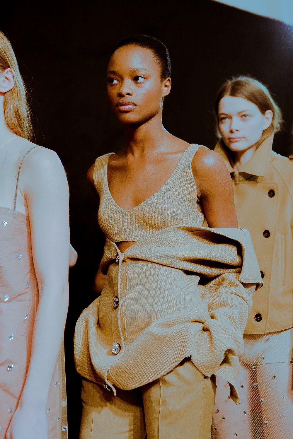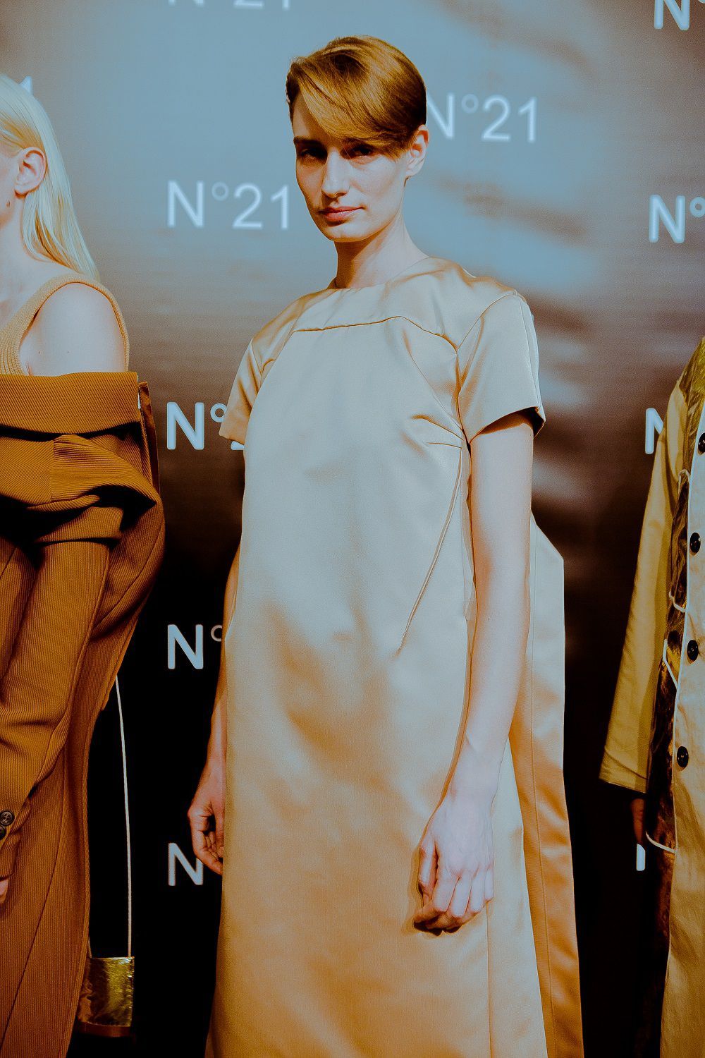 These are the key words, simple, direct but above all essential to describe what was the fashion show presented yesterday in Milan by N°21. Sophisticated women with angelic faces took turns on the catwalk, wearing nude mini dresses and British trench coats, a woman who does not need excesses to shine, but she focuses on straight cuts and classic dresses for days, adorned with small luminous stones and bows on the shoulder pads .