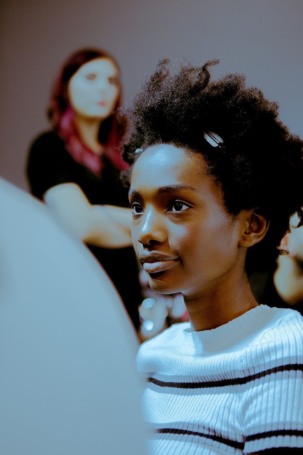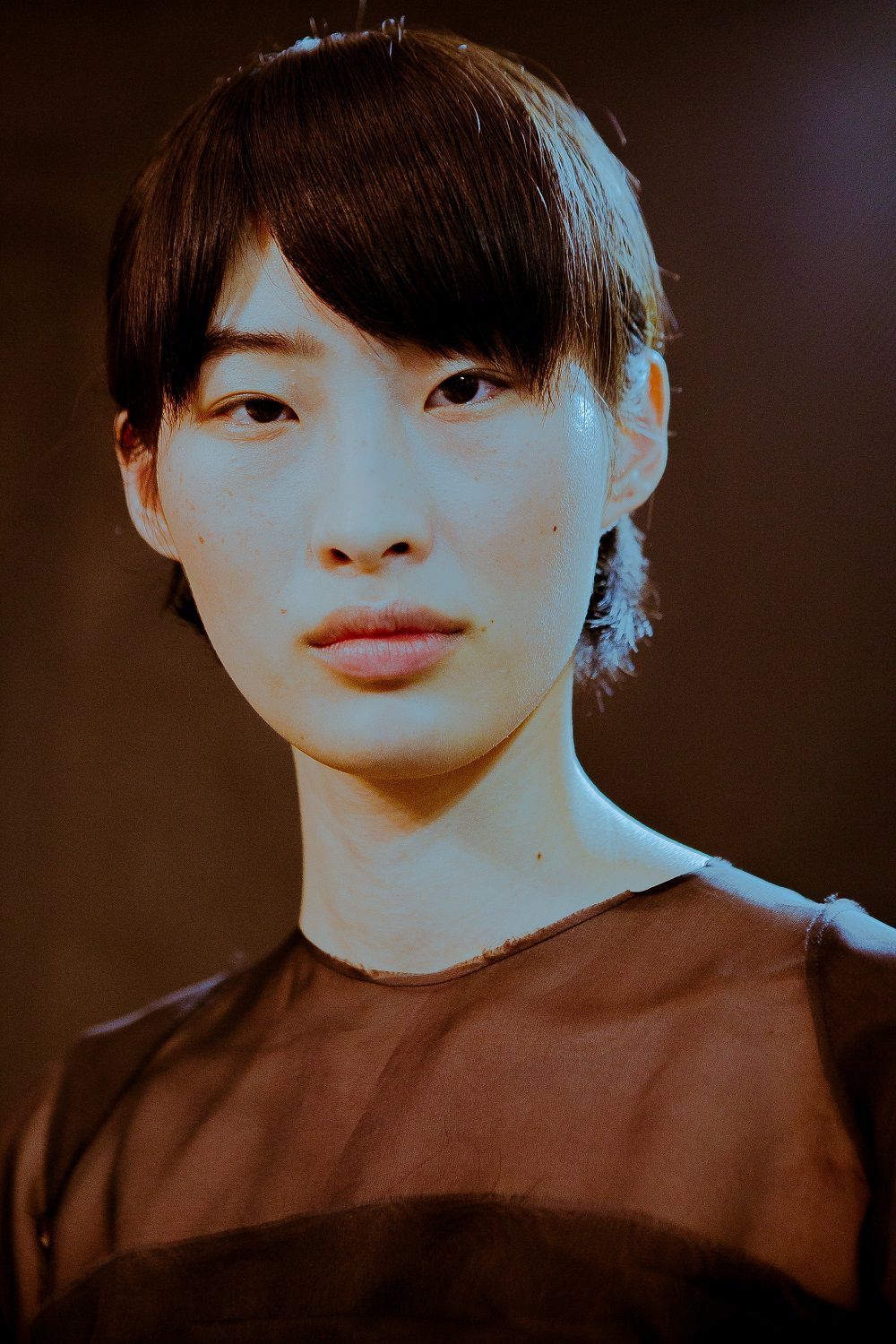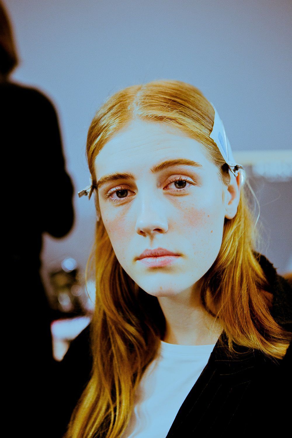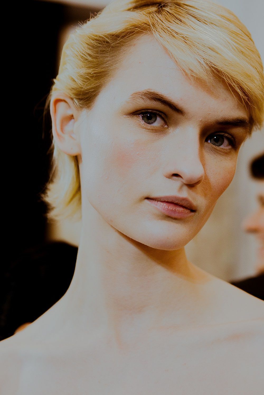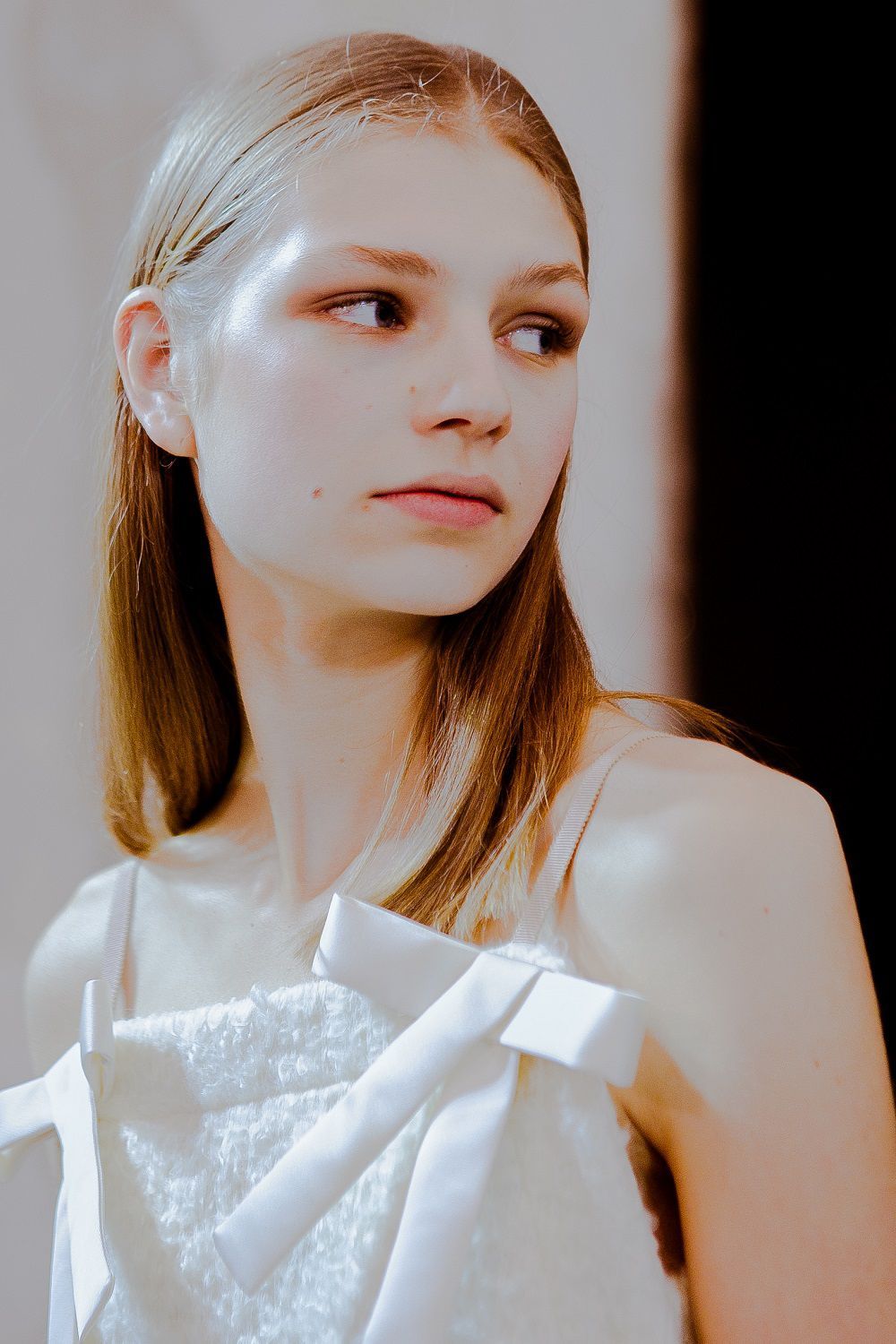 Central line and locks behind the ears, natural beauty and a delicate touch of illuminating on the cheeks.
