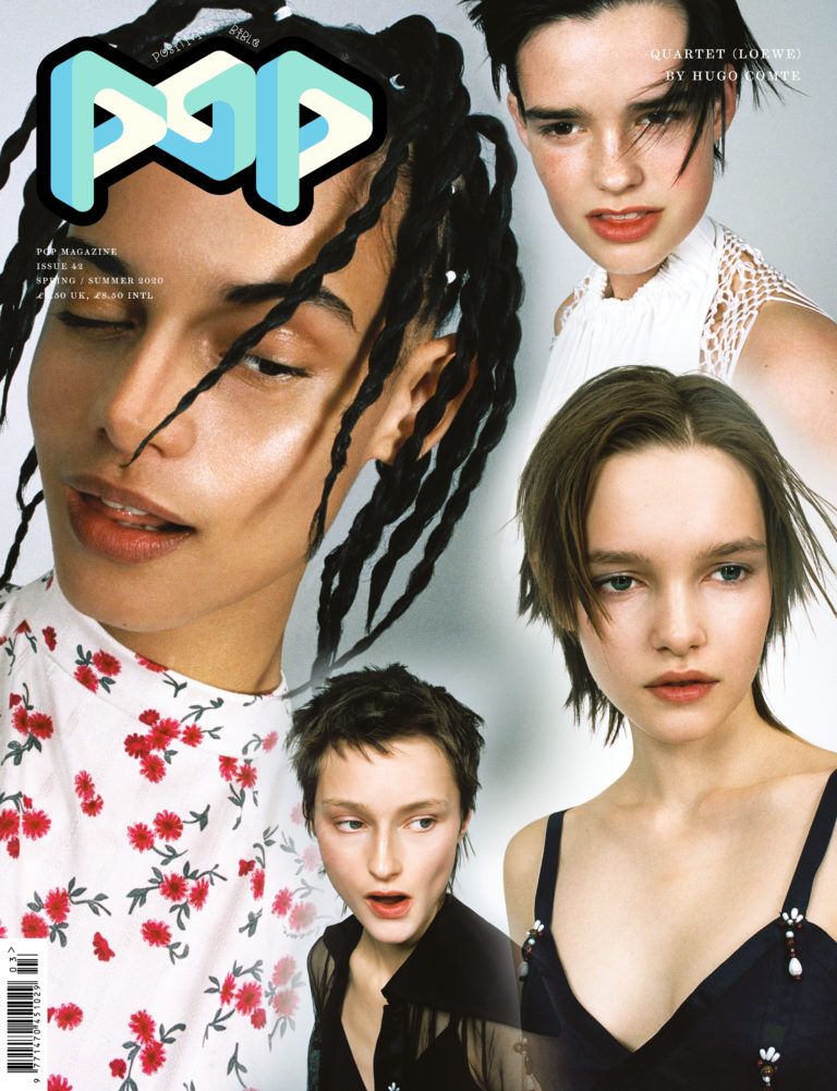 POP Magazine (@thepopmag) è una rivista di moda inglese dedicata agli appassionati e ai professionisti del settore. Fondata nel 2000 dalla direttrice Katie Grand e dai creatori di The Face, il magazine fonde le diverse arti dando spazio a numerosissimi contributor di alto profilo: artisti e fotografi famosi, accanto a fashion ed art designer ribelli. Basta guardare le cover della Issue 42 - SS20, che tra i vari volti e artisti ospitano Zoë Kravitz fotografata da Charlotte Wales e la modella Jamie Helms immortalata da Juergen Teller.