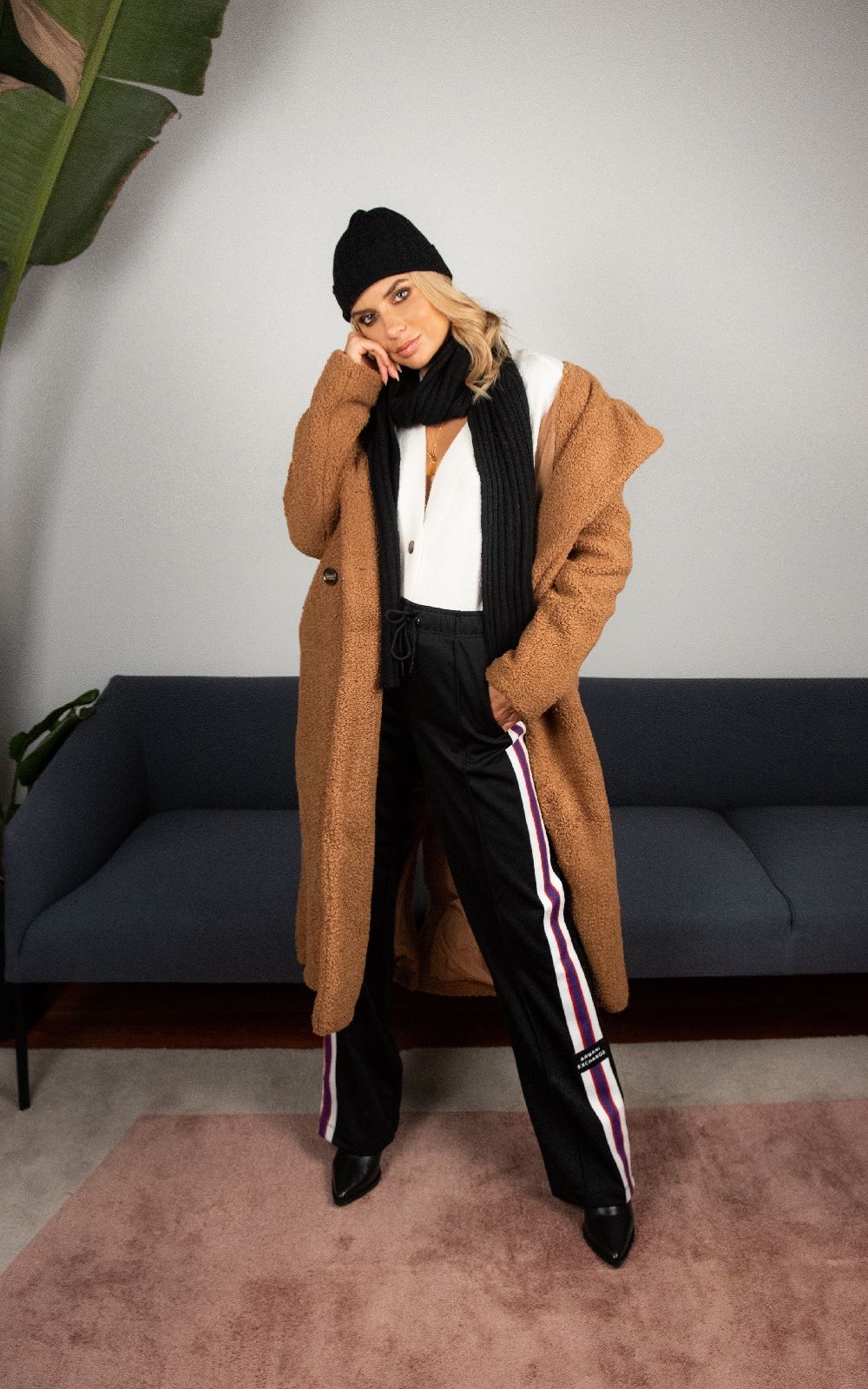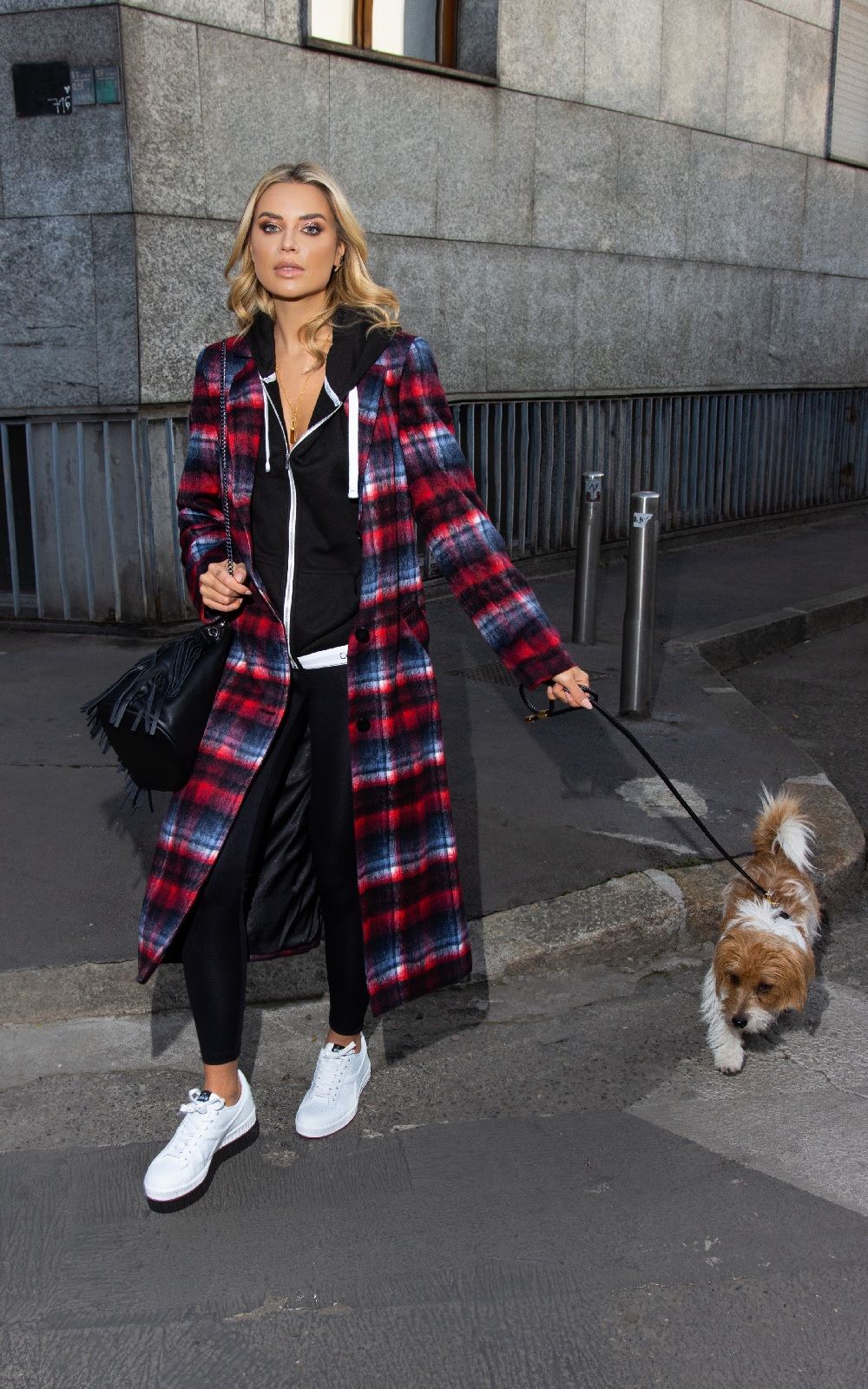 Le scelte di Veronica sono casual e versatili. Il suo primo outfit mixa una un paio di jeans skinny Levi’s con una hoodie di Tommy Hilfiger, un blazer Armani Exchange ed un paio di boot find. Il focus del secondo look, è un cappotto tartan nei toni del rosso di find., indossato sopra una felpa con cappuccio di Calvin Klein, leggings neri di Aurique e, ai piedi, un paio di sneakers Diadora. La terza scelta dell’influencer milanese, invece, include un Teddy coat di find., abbinato ad un cardigan bianco di Meraki, ad un paio di pantaloni della tuta di Armani Exchange e a stivali sempre di find.