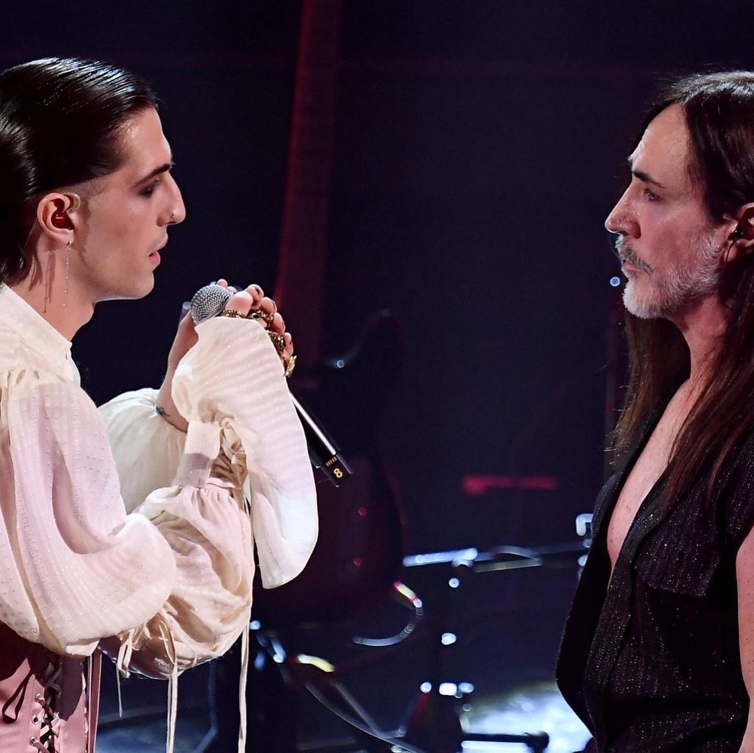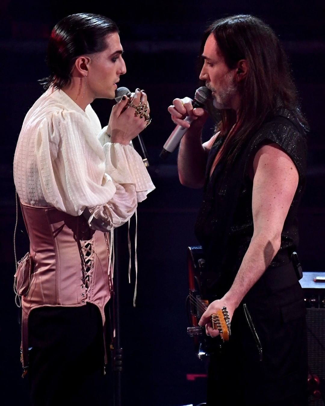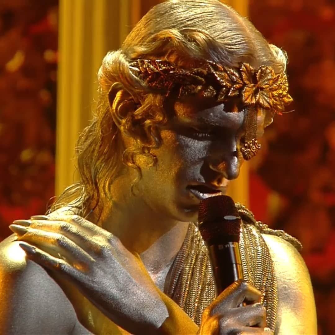 Look: Achille Lauro in versione divinità greca canta Penelope insieme a Emma Marrone in total gold firmato Gucci. Ancora una volta, concept interessante e performance che tiene incollati allo schermo, per un risultato (quasi) impeccabile.