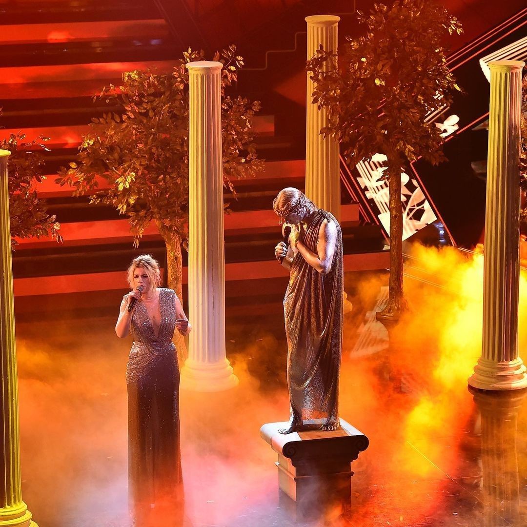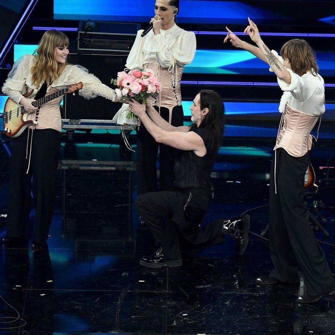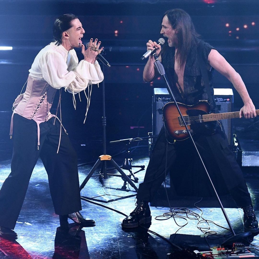 Look: Achille Lauro in versione divinità greca canta Penelope insieme a Emma Marrone in total gold firmato Gucci. Ancora una volta, concept interessante e performance che tiene incollati allo schermo, per un risultato (quasi) impeccabile.