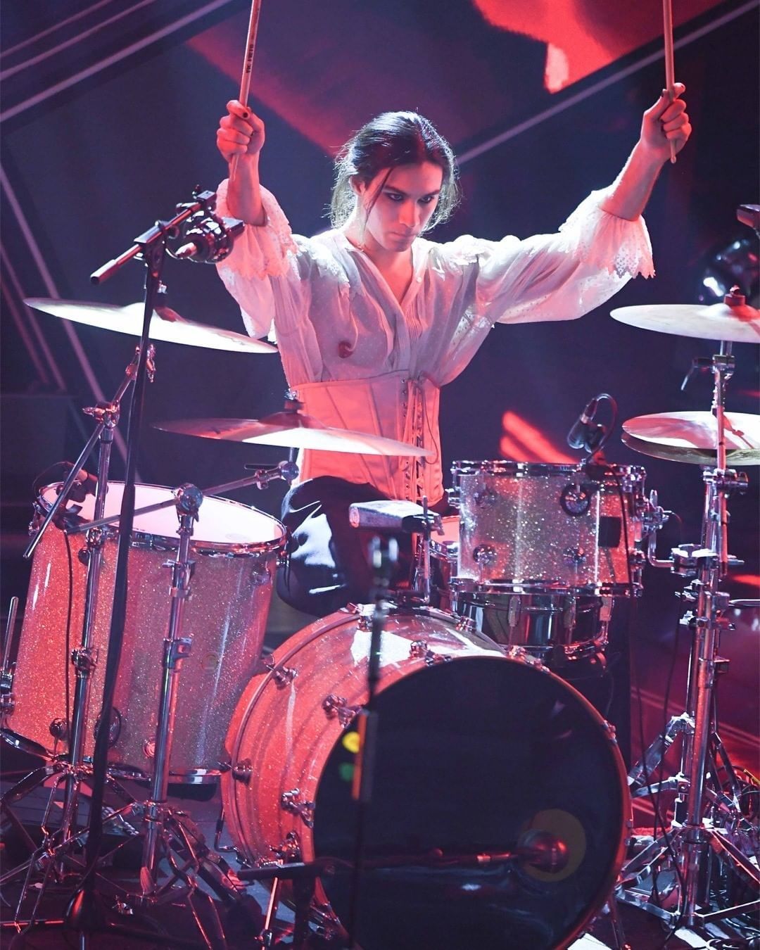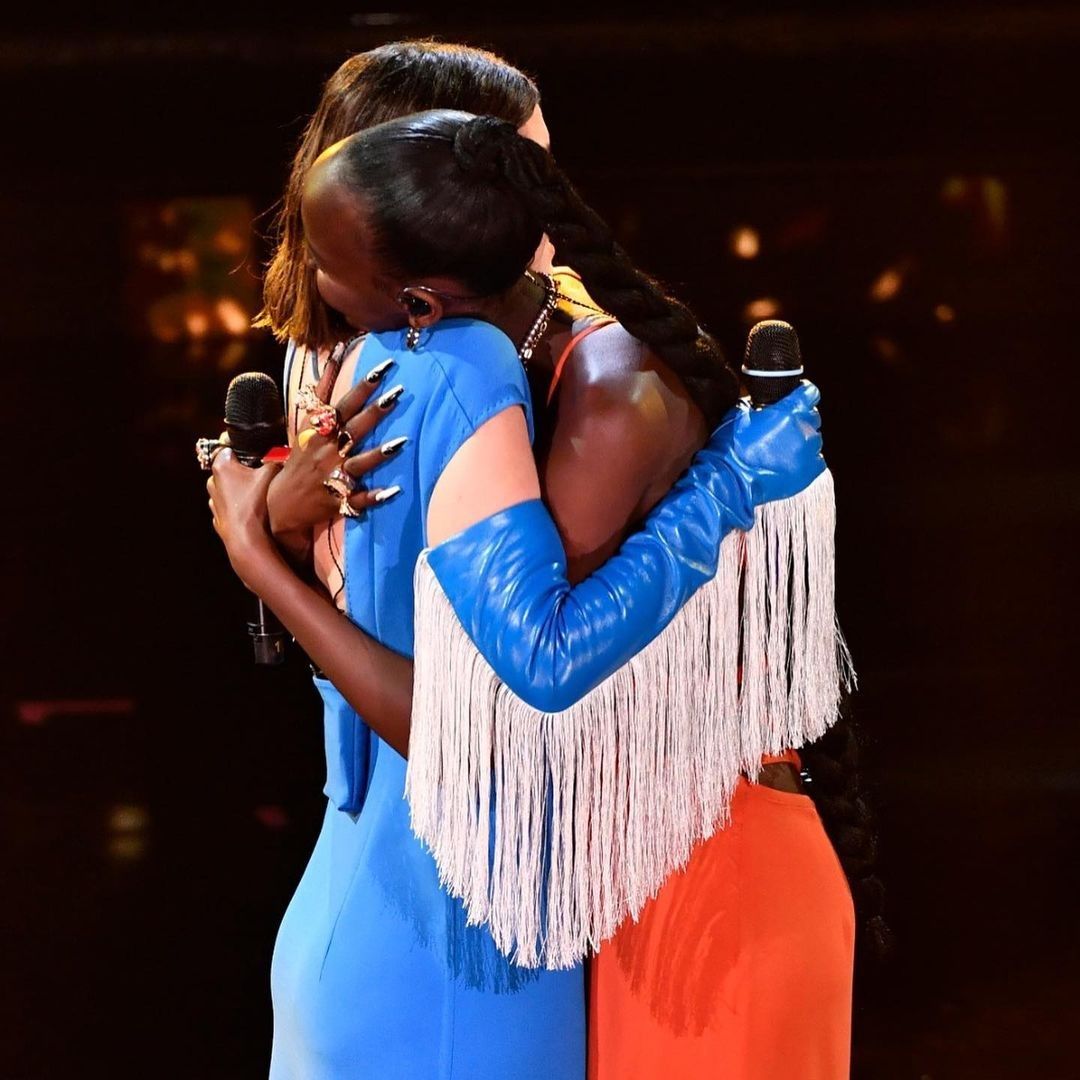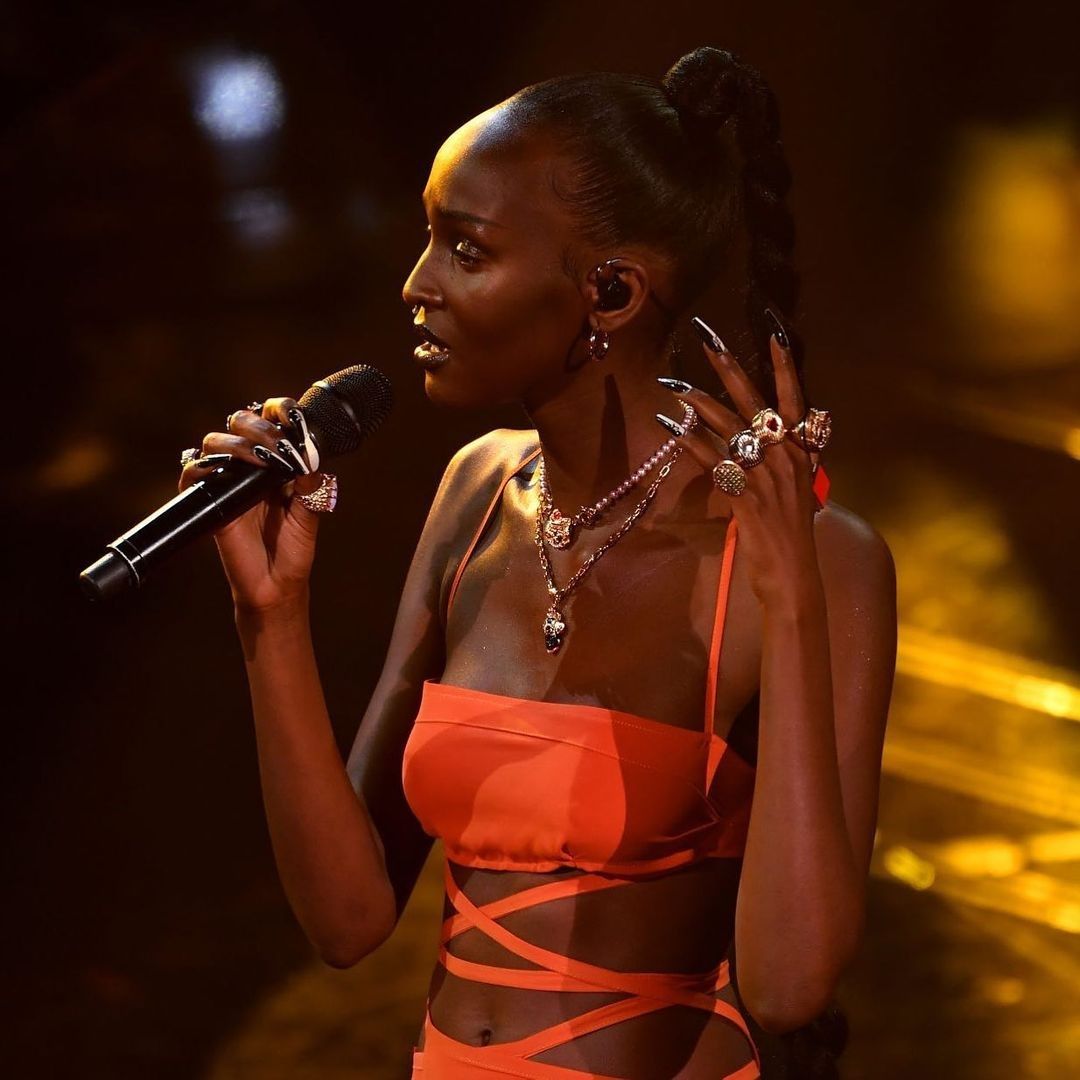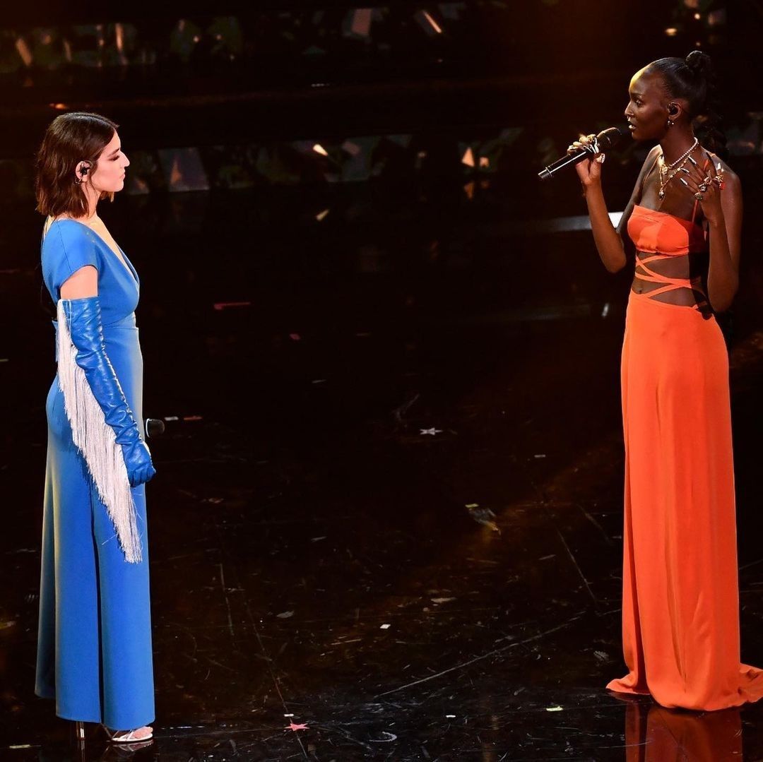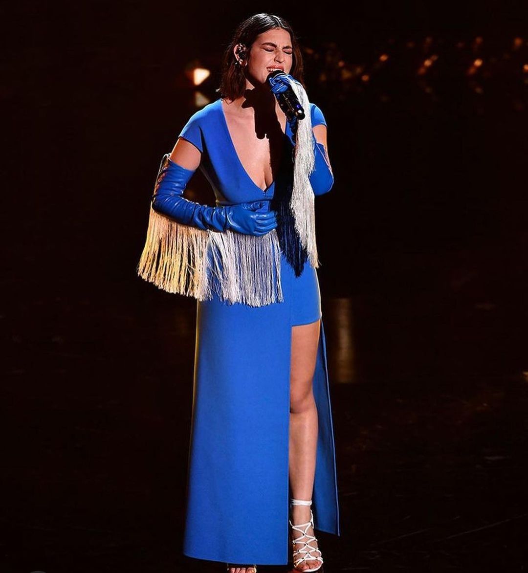 Look: Gaia quest’anno continua a scegliere le frange, ma, con l’aggiunta di guanti lunghi, abito asimmetrico e color azzurro intenso, ben bilanciati da un make-up luminoso e minimale. Stupenda Lous and the Yakuza che, dotata di un’eleganza effortless, sfoggia un abito rosso-arancio e un ombretto gloss. Ci hanno fatti emozionare.