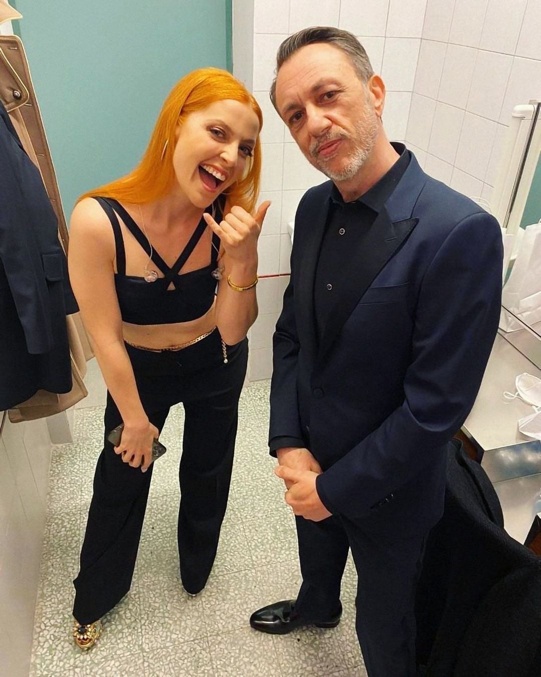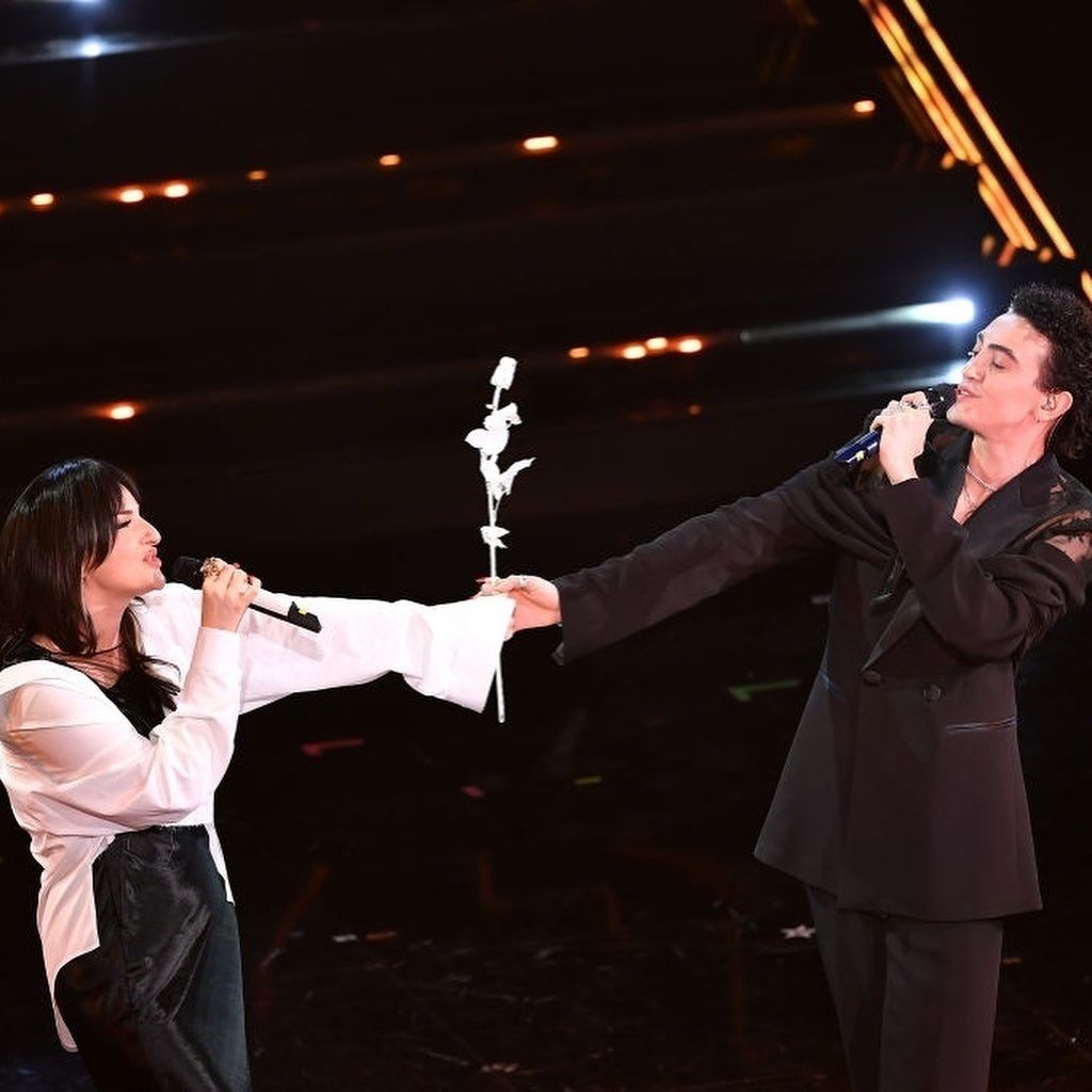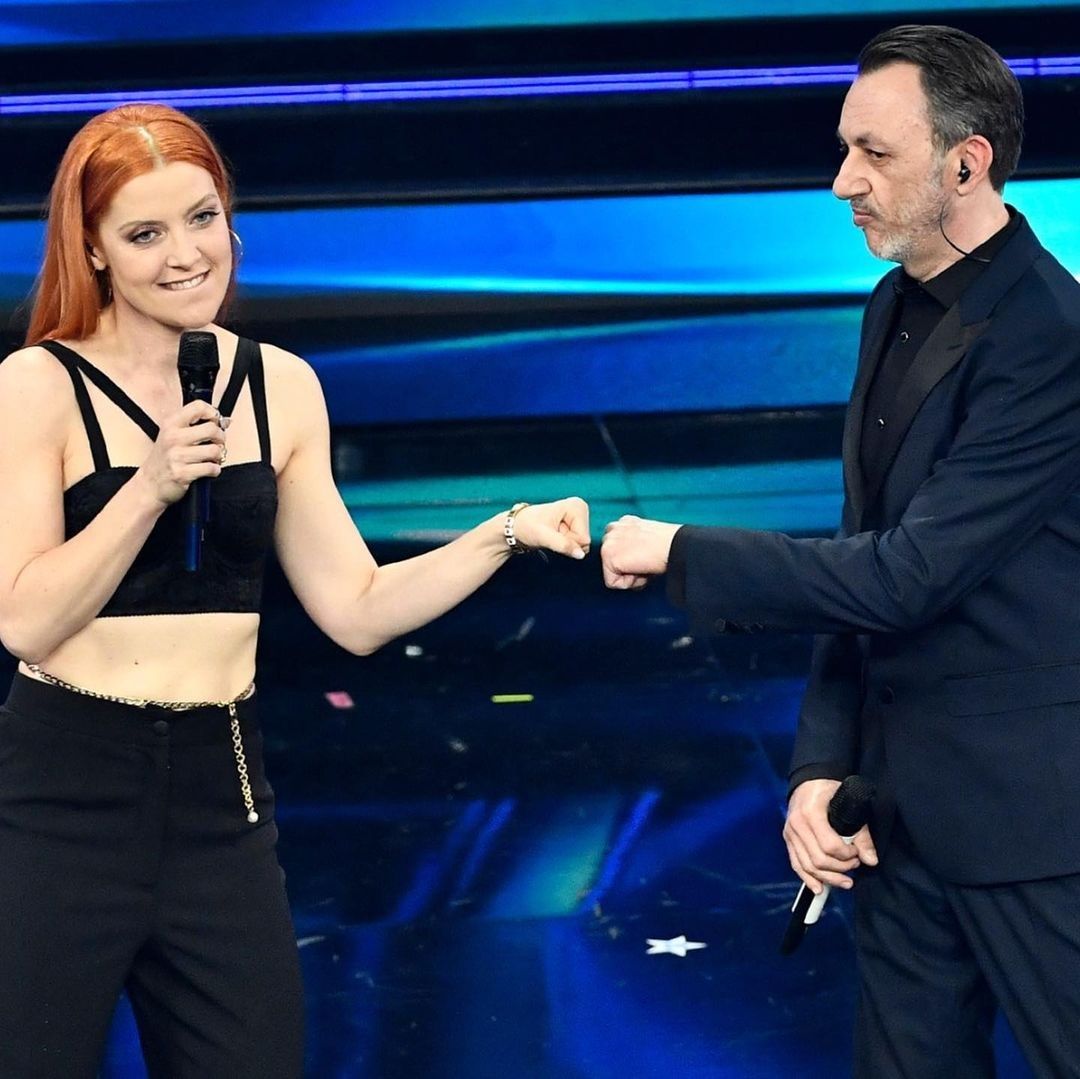 Look: Entrambi in power suit rosso fuoco di Valentino. Come nella prima esibizione total pink, sono coordinati e in sintonia. La sferzata d’energia la dà Donatella Rettore con una performance nostalgica e divertente (il suo outfit... preferiamo non commentarlo).