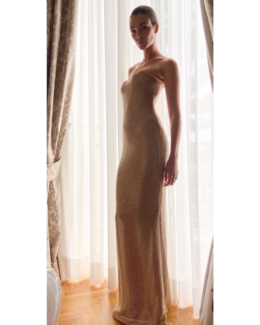 Look: Scende le scale in un black halter dress a portafoglio, con fiocchi rosa, di Valentino SS20 Haute Couture che le lascia lateralmente la pelle nuda e lo abbina ad uno chignon minimale stile ballerina e ad un cat-eye che focalizza l’attenzione sullo sguardo. Il secondo abito è una raffinata creazione gold, ricoperta di cristalli, di Armani Privè; l’ultimo è di Atelier Versace, nero, monospalla, con trasparenze e ricami. A fine serata, i capelli sono sleek e pettinati all’indietro ed il make-up diventa più drammatico. Una vera regina delle passerelle.