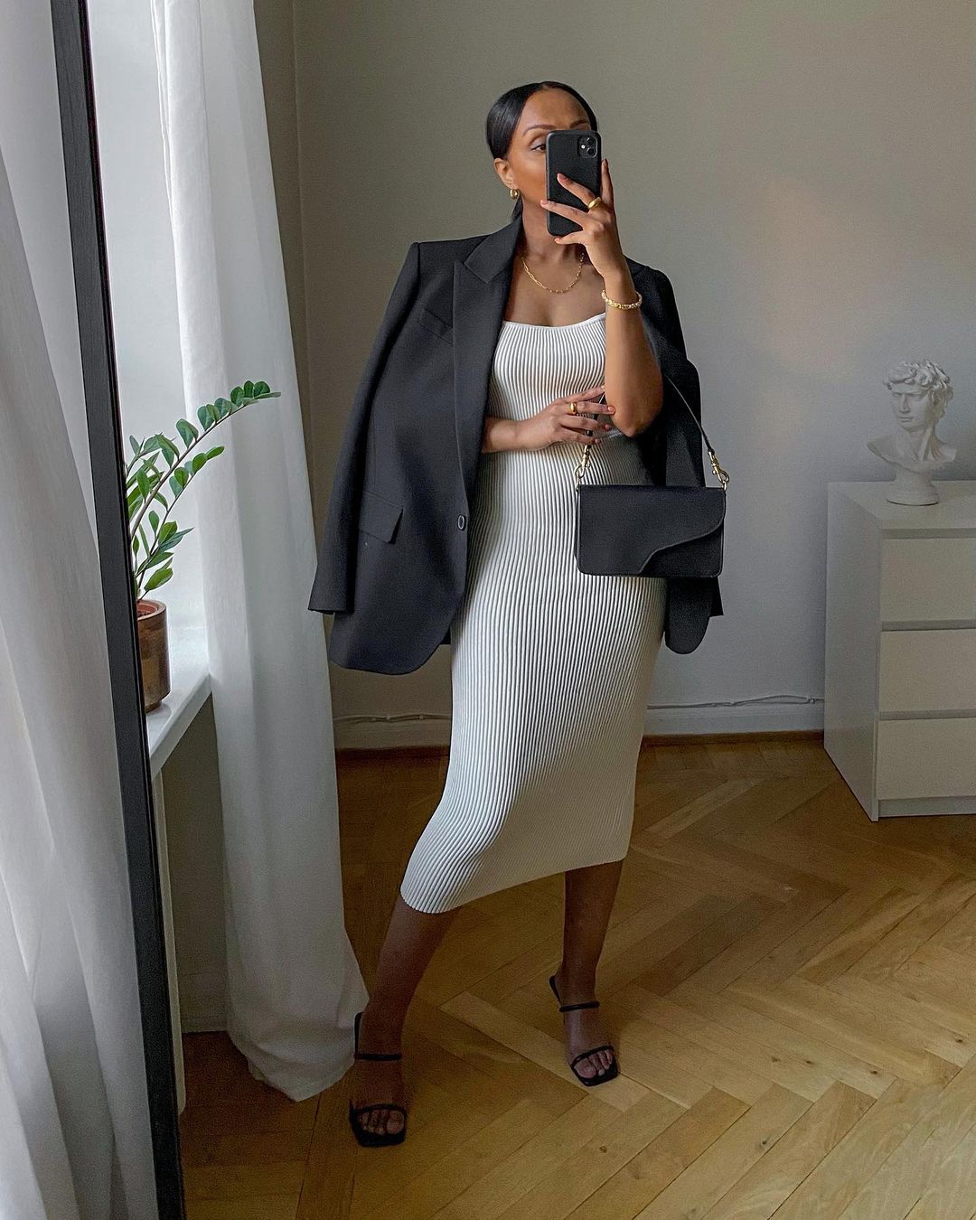 Non è ancora il momento di abbandonare le gambe scoperte. Quando però inizia ad arrivare il fresco, meglio optare per un lungo slip dress, o un bodycon dress in maglia, perfetto per una serata chic ma anche per una giornata in ufficio se abbinato con una giacca oversize. Fidatevi!