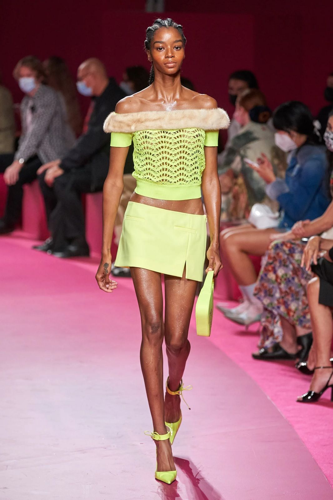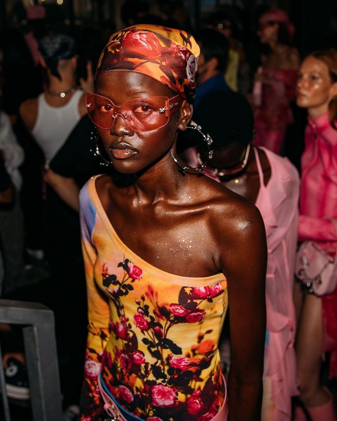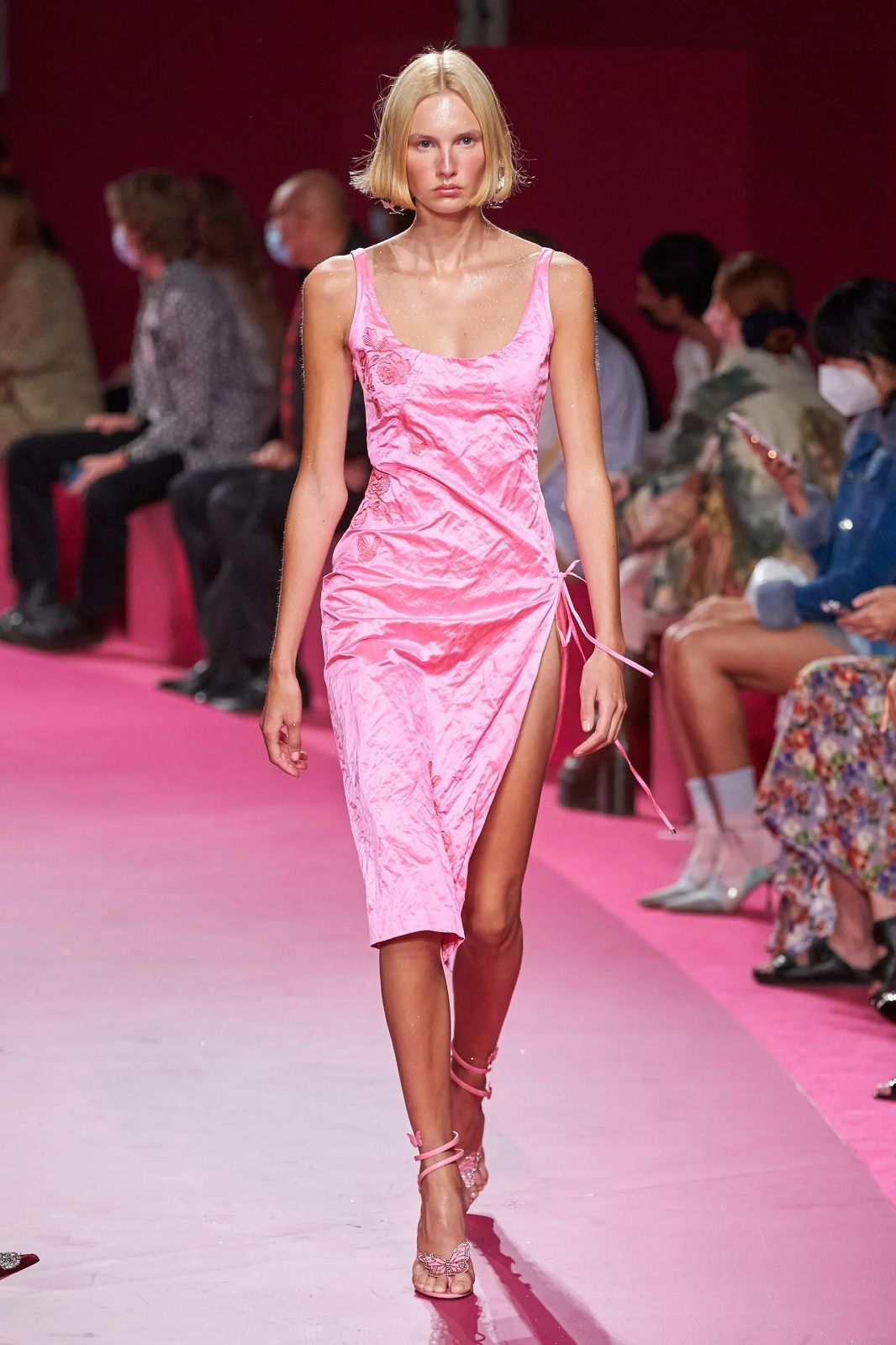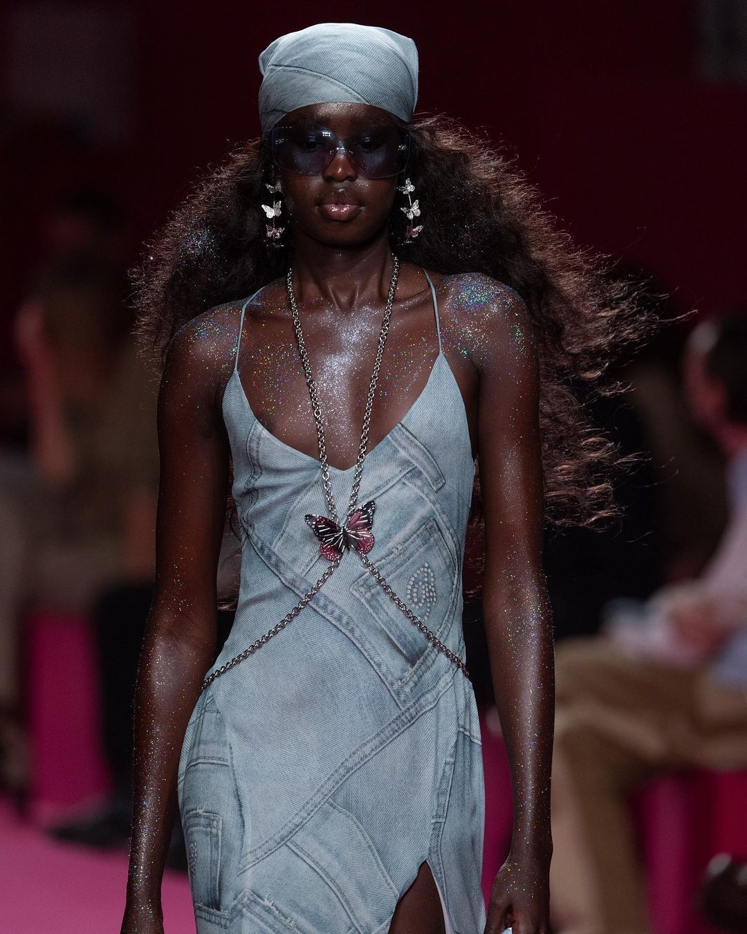 Nella collezione primavera-estate 2022, Blumarine rivisita i codici dell’estetica dei primi anni 2000, portando in passerella il glamour girlie di Britney Spears e Paris Hilton per la Gen Z. Tutto ad un tratto, Milano diventa la California all’alba del nuovo millennio: Mariah Carey arriva sul red carpet del concerto VH1 Divas Live con uno striminzito top a farfalla, Missy Elliot ritira il Grammy per Best rap solo performance in una tuta adidas total pink, alla tv Destiny’s Child si dimenano sulle note di Survivor in outfit mimetici coordinati e Alicia Keys occupa le cover dei maggior magazine con la bandana ed il thong glitterato che spunta dai jeans. Di questo viaggio indietro nel tempo Nicola Brognano riprende reference e mood, aggiungendo una buona dose di frivolezza, divertimento e, soprattutto, sexiness che, insieme allo styling di Lotta Volkova, rende le nuove creazioni del brand milanese irresistibili.