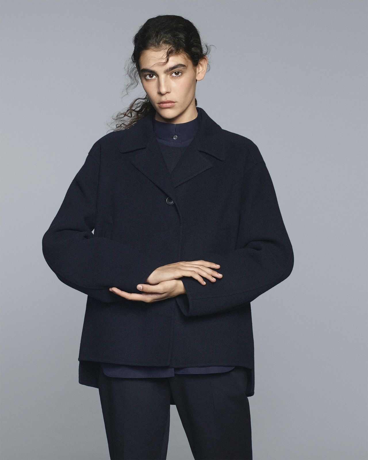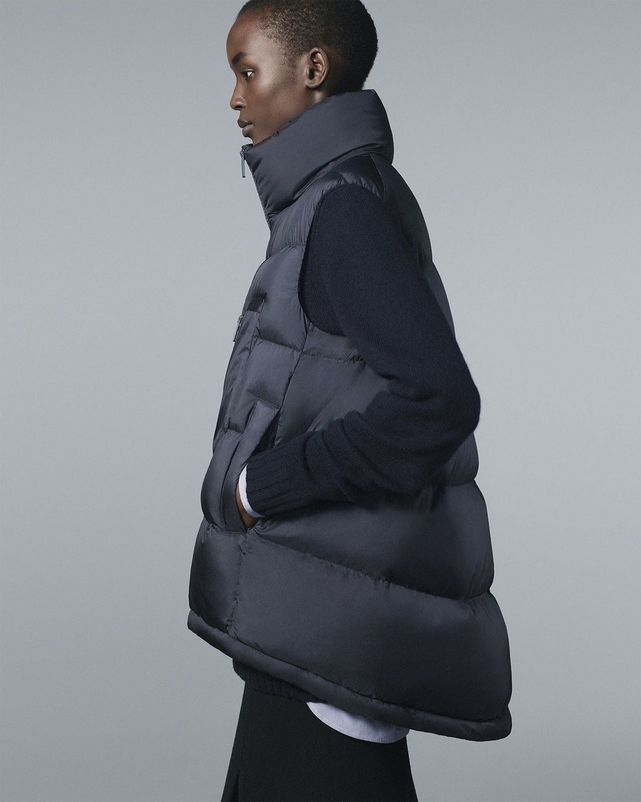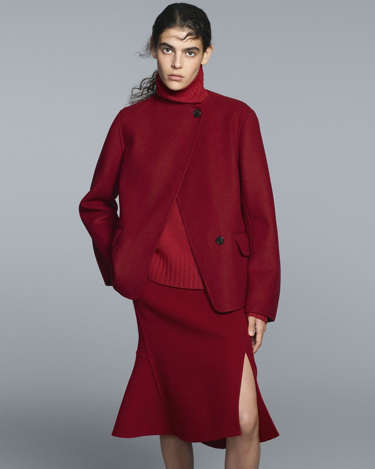 La nuova proposta unisce alla perfezione understatement, sartorialità e materiali di alta qualità che creano un guardaroba fatto di essentials da mixare fra loro a seconda del nostro mood del momento. La lineup, che include 42 modelli per donna e 31 modelli per uomo, è caratterizzata da volumi generosi, tessuti corposi e da una palette cromatica dominata da toni basic come bianco, nero, navy, grafite, kaki e caramello con qualche accento di rosso. Tra i must have di stagione ci saranno sicuramente il cappotto marrone, la giacca asimmetrica, il maglione cozy a collo alto, il maxi piumino, il piccolo caban blu e la gonna a pieghe, mentre il capo più versatile è sicuramente il bomber nero.