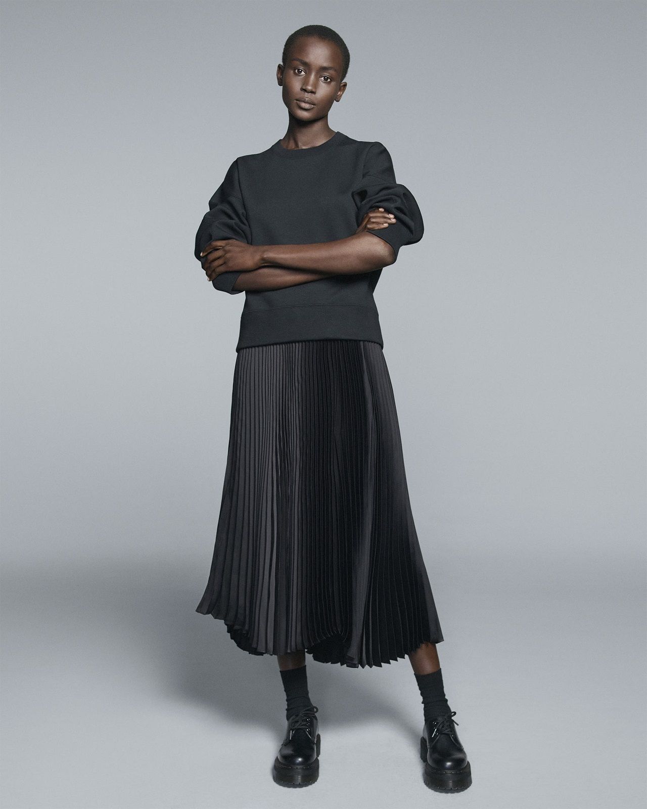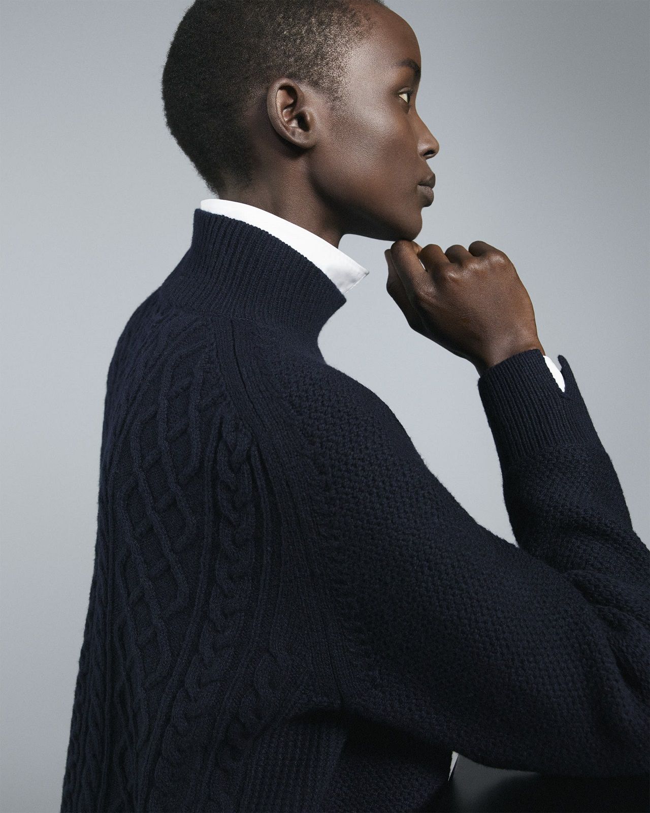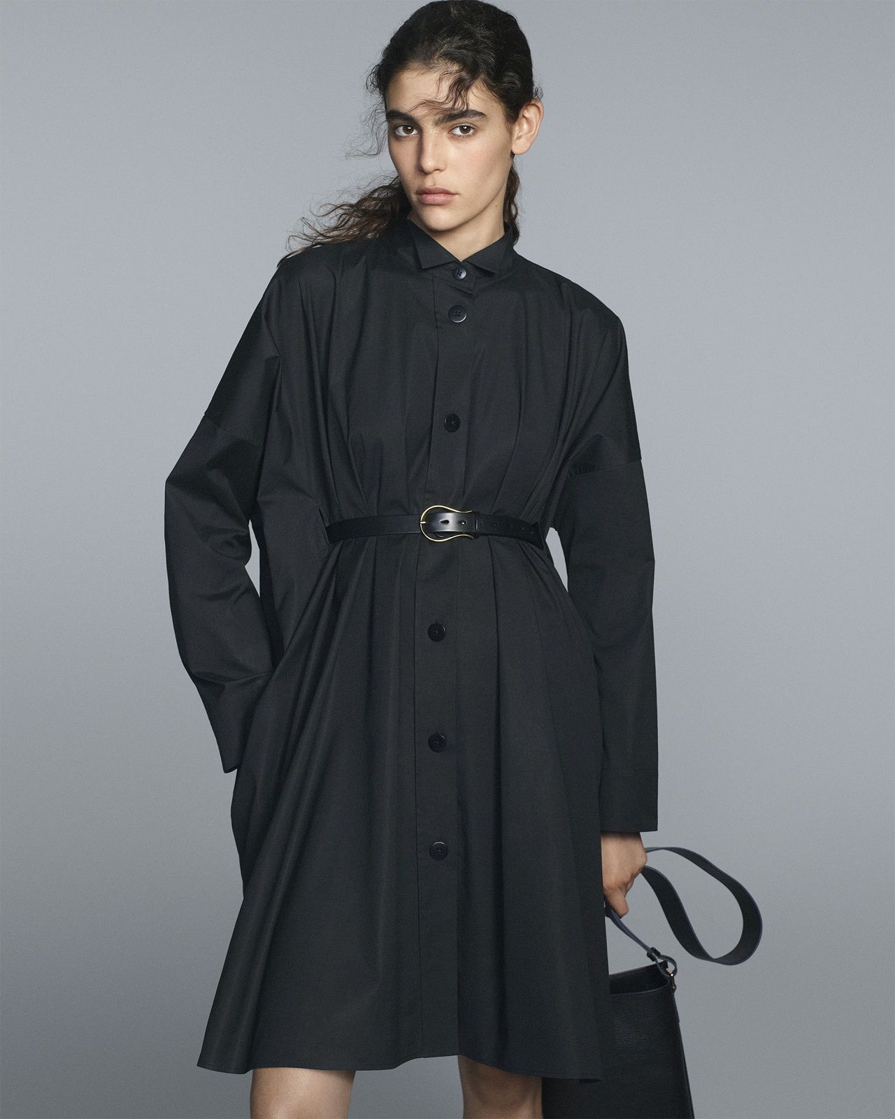 La nuova proposta unisce alla perfezione understatement, sartorialità e materiali di alta qualità che creano un guardaroba fatto di essentials da mixare fra loro a seconda del nostro mood del momento. La lineup, che include 42 modelli per donna e 31 modelli per uomo, è caratterizzata da volumi generosi, tessuti corposi e da una palette cromatica dominata da toni basic come bianco, nero, navy, grafite, kaki e caramello con qualche accento di rosso. Tra i must have di stagione ci saranno sicuramente il cappotto marrone, la giacca asimmetrica, il maglione cozy a collo alto, il maxi piumino, il piccolo caban blu e la gonna a pieghe, mentre il capo più versatile è sicuramente il bomber nero.