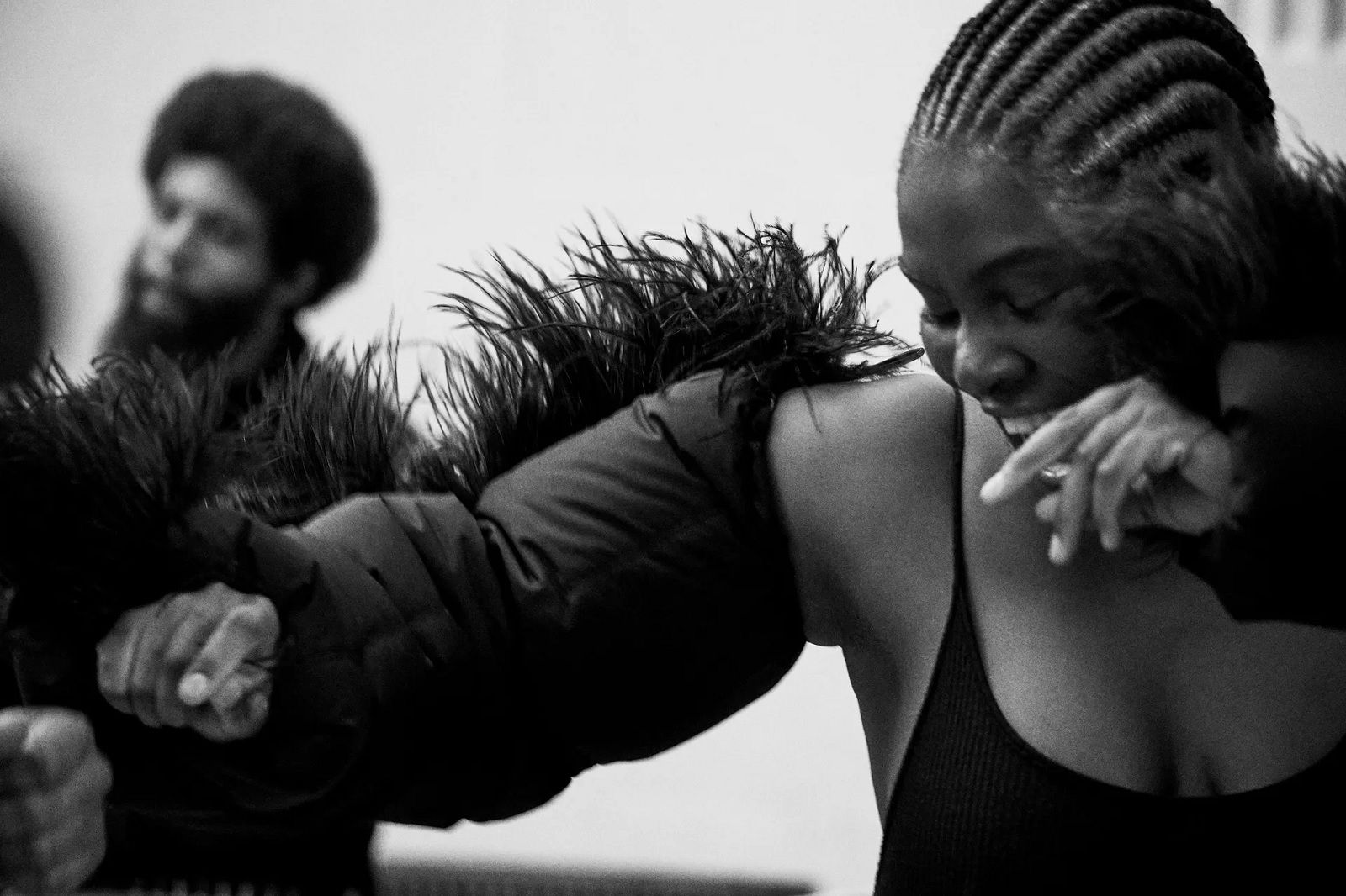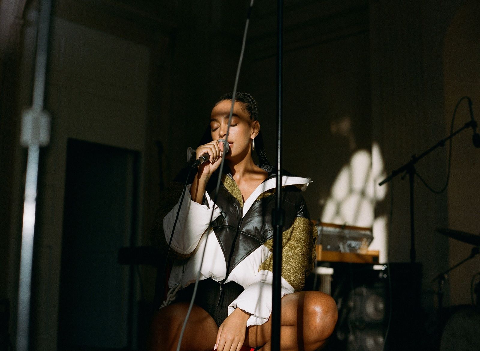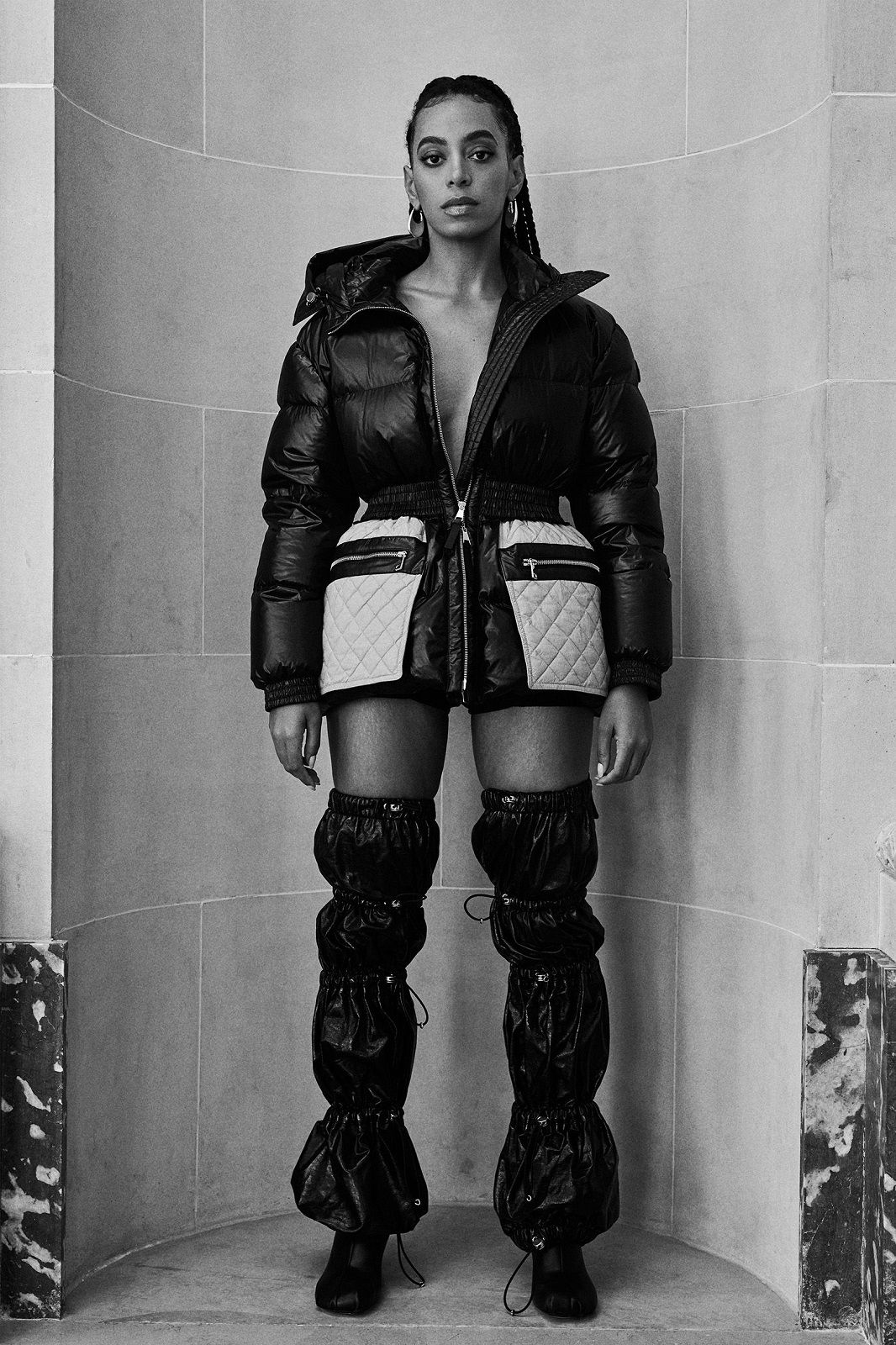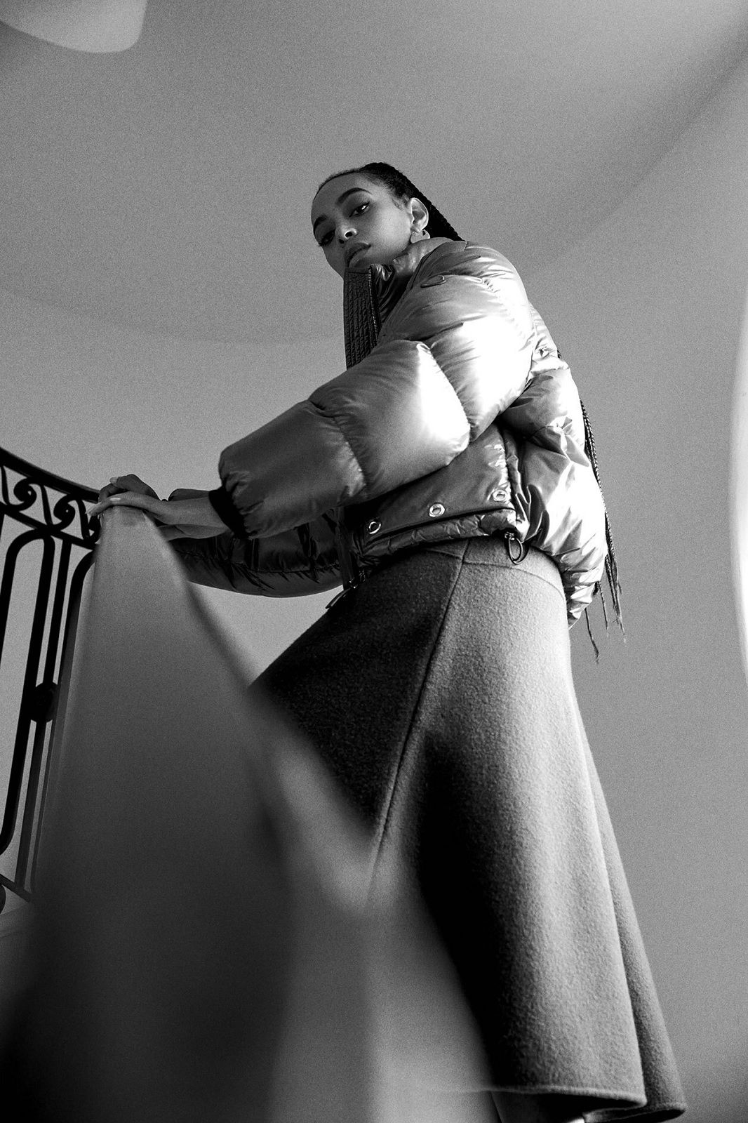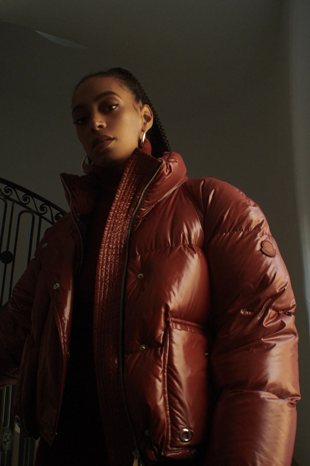 Solange, la crew di musicisti, i nuovi capi creati da Veronica Leoni, musica, moda, arte, bellezza. In Rest Your, lo short film diretto da Khalik Allah, tutto si fonde in una performance potente, emozionante, trascinante, costruendo un climax emotivo inusuale per una presentazione di moda. Guardando la cantante si resta ipnotizzati, sembra di assistere ad una sorta di rituale mistico. Ondeggia, balla, apre le braccia, guarda il cielo, si muove sensuale e potente, rallenta, accelera, giocando con la voce, con pop, jazz, soul. E con lei le frange dei pantaloni, i piumini, i top, gli scaldamuscoli e tutti i pezzi della collezione. È un crescendo emotivo che cita Josephine Baker e Luisa Casati e si muove all’unisono con il concept sviluppato da Leoni che con le sue silhouette minimali e versatili, perfette per affrontare sia l’inverno sia un live show, sposano in un felice matrimonio l’estetica tradizionale degli anni ‘50 e l’outwear sportivo di Moncler.