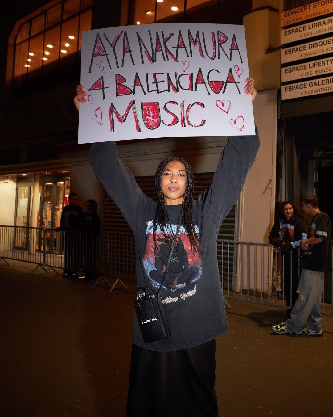 Apple è il partner preferito di Balenciaga, almeno nell’ambito musicale. Il loro rapporto è iniziato nel 2020 quando Demna Gvasalia ha curato una playlist per accompagnare il merchandising "Hello, My Name Is Demna" e quando nel 2021 i Rammstein e poi RuPaul si sono cimentati in una playlist speciale per il brand. La Maison ha preferito il format della playlist a quello del podcast, affidando l’ultima selezione di pezzi ad Aya Nakamura, cantante maliana naturalizzata francese nota per hit come Djadja o Pookie. Anche stavolta, ad accompagnare la playlist, c’è una capsule in edizione limitata di abbigliamento e accessori nel tradizione format del merch da concerto dal nome Balenciaga x Aya Nakamura.