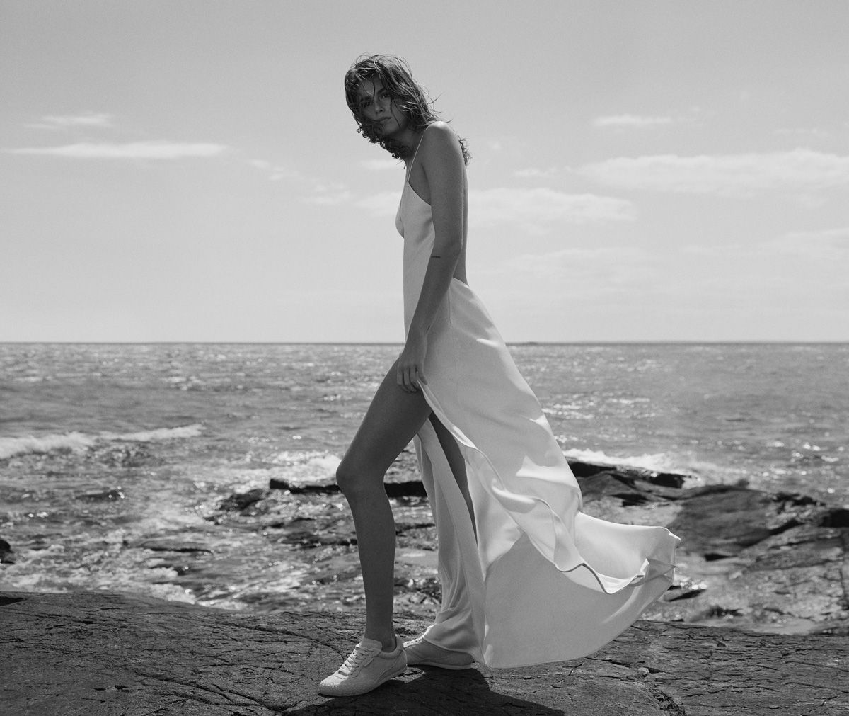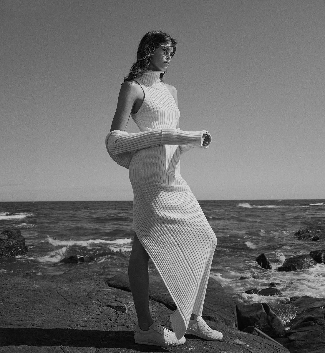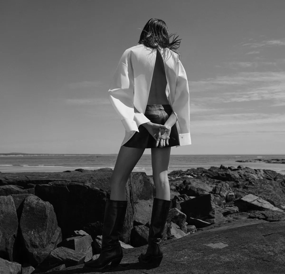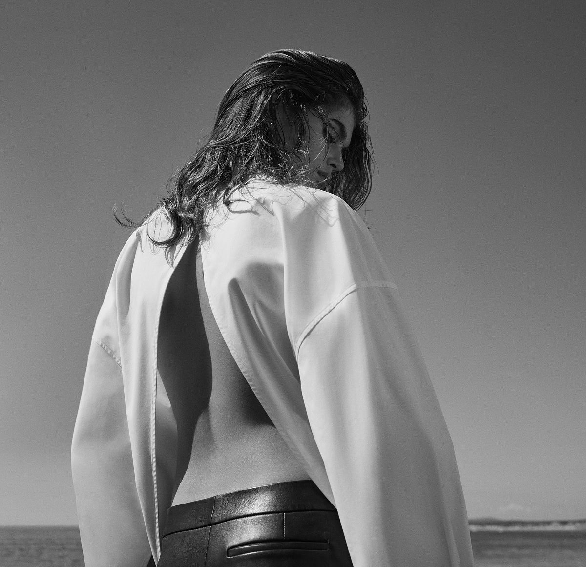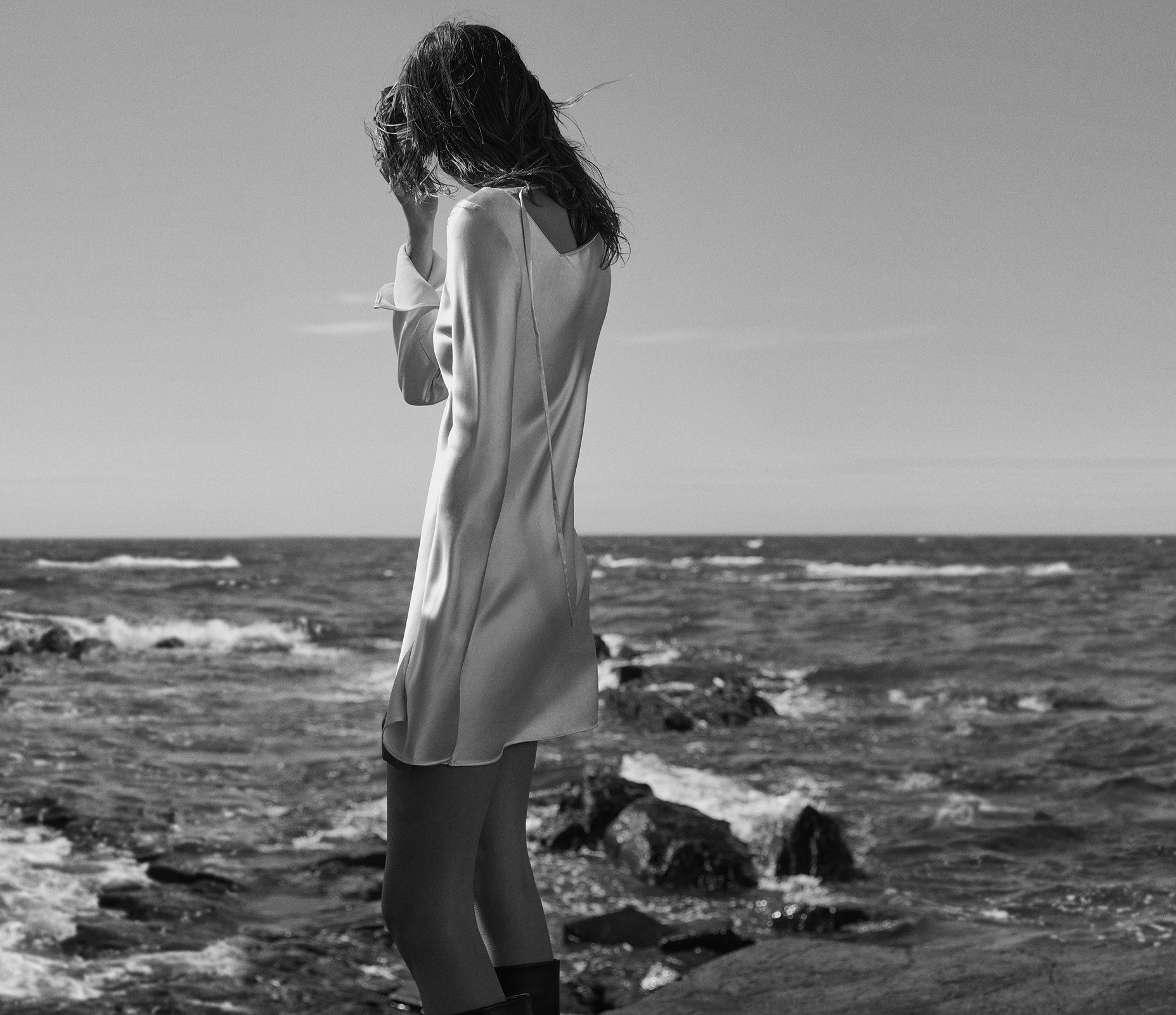 Tra gli highlights della collezione spiccano il powersuit overiszed, camicia bianca dal taglio maschile completamente aperta sul retro, la bralette in raso nero, la giacca cropped in denim, il maglione cozy a collo alto, lo slip dress, il pigiama in seta, il lungo trench in pelle e i cowboy boots.
