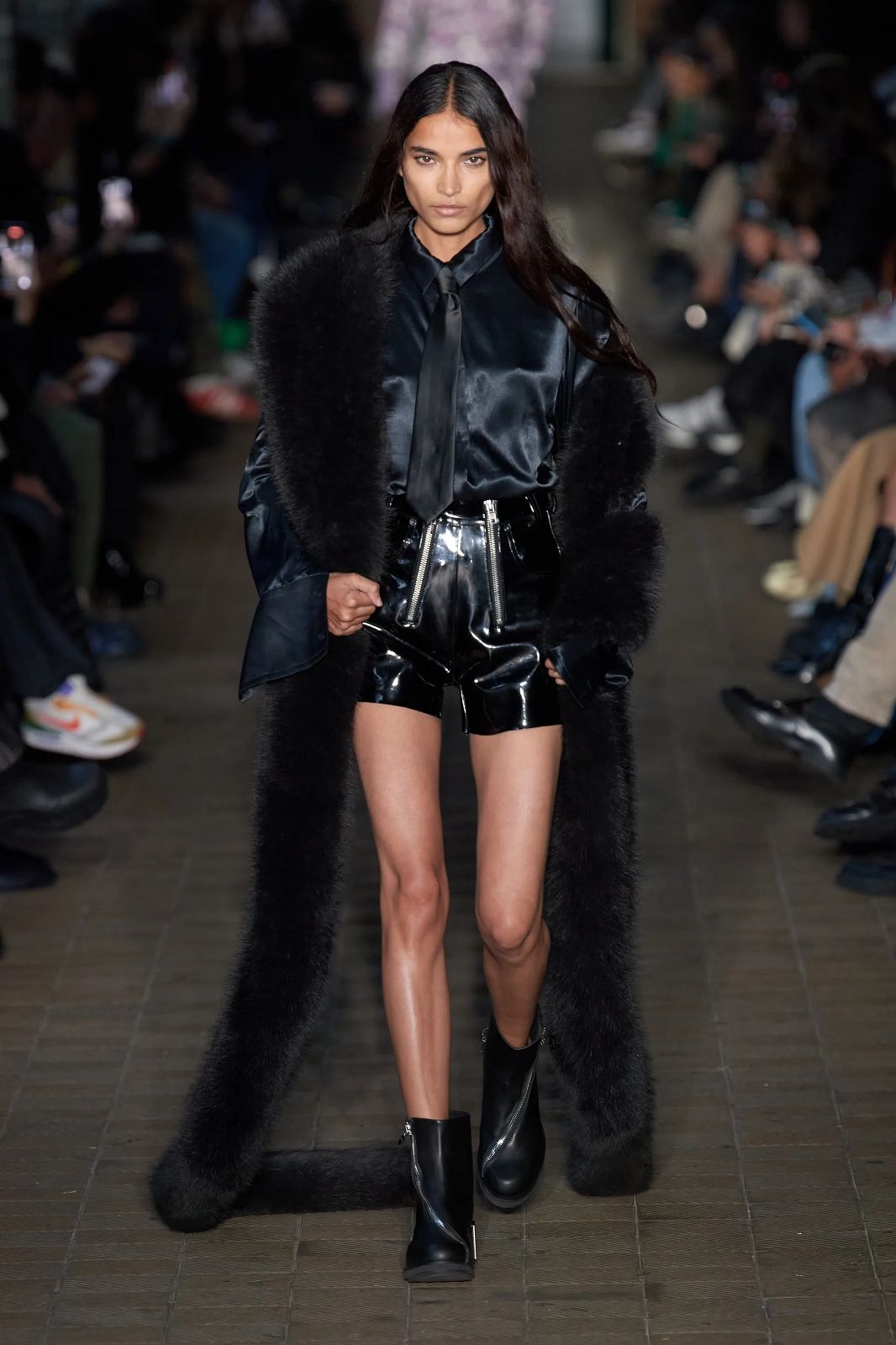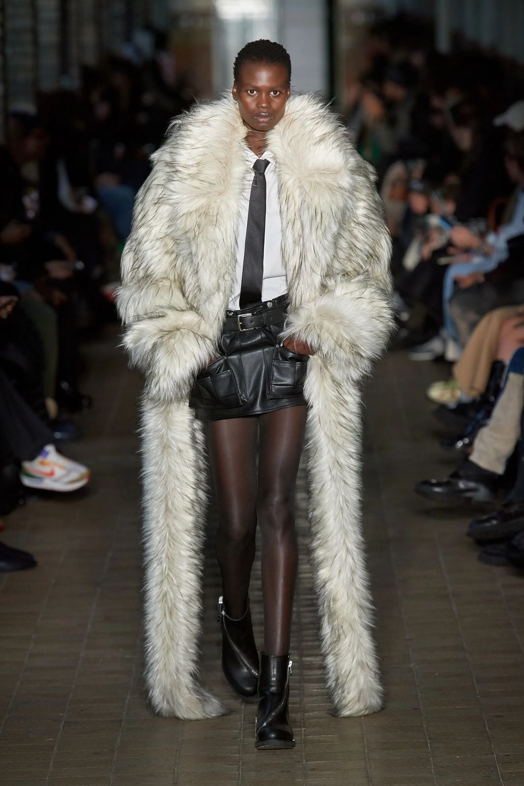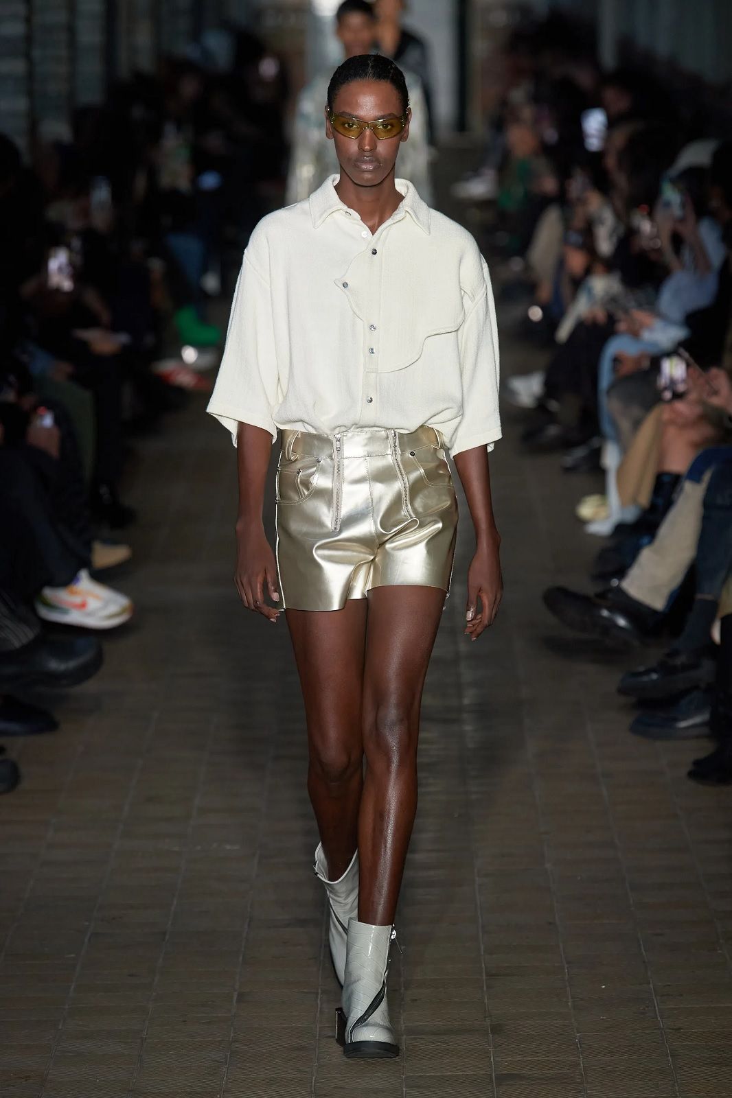 Così sui bottoni spuntano gli evil eyes, le gonne e gli abiti ricordano eleganti sarong da abbinare a micro top e camicie dalle silhouette morbide, le giacche sono mini dress che si indossano con maxi stivaloni i long dress sono see-through e hanno spacchi profondi, i capi in pelle conferiscono un twist sexy, mentre le pellicce finte e maxi danno un tocco di glamour alla combo shorts più camicia e cravatta. A rendere speciali la collezione ci sono le stampe sviluppate con l'artista indonesiano di Giava Muhammad "Rofi" Fatchurofi che si ispirano alle proprietà trasformative dell'acqua e due collaborazioni importanti, una con ASICS e una con Scholl Iconic con i suoi modelli in legno presentati in collaborazione con Gmbh con un'innovativa e tecnica tomaia in rete, riprendendo il filo del comfort iconico che ha distinto gli zoccoli già negli anni '70 e portandoli ad un livello estetico successivo. il brand tedesco hanno presentato una gamma di sandali con tomaia in rete tecnica.