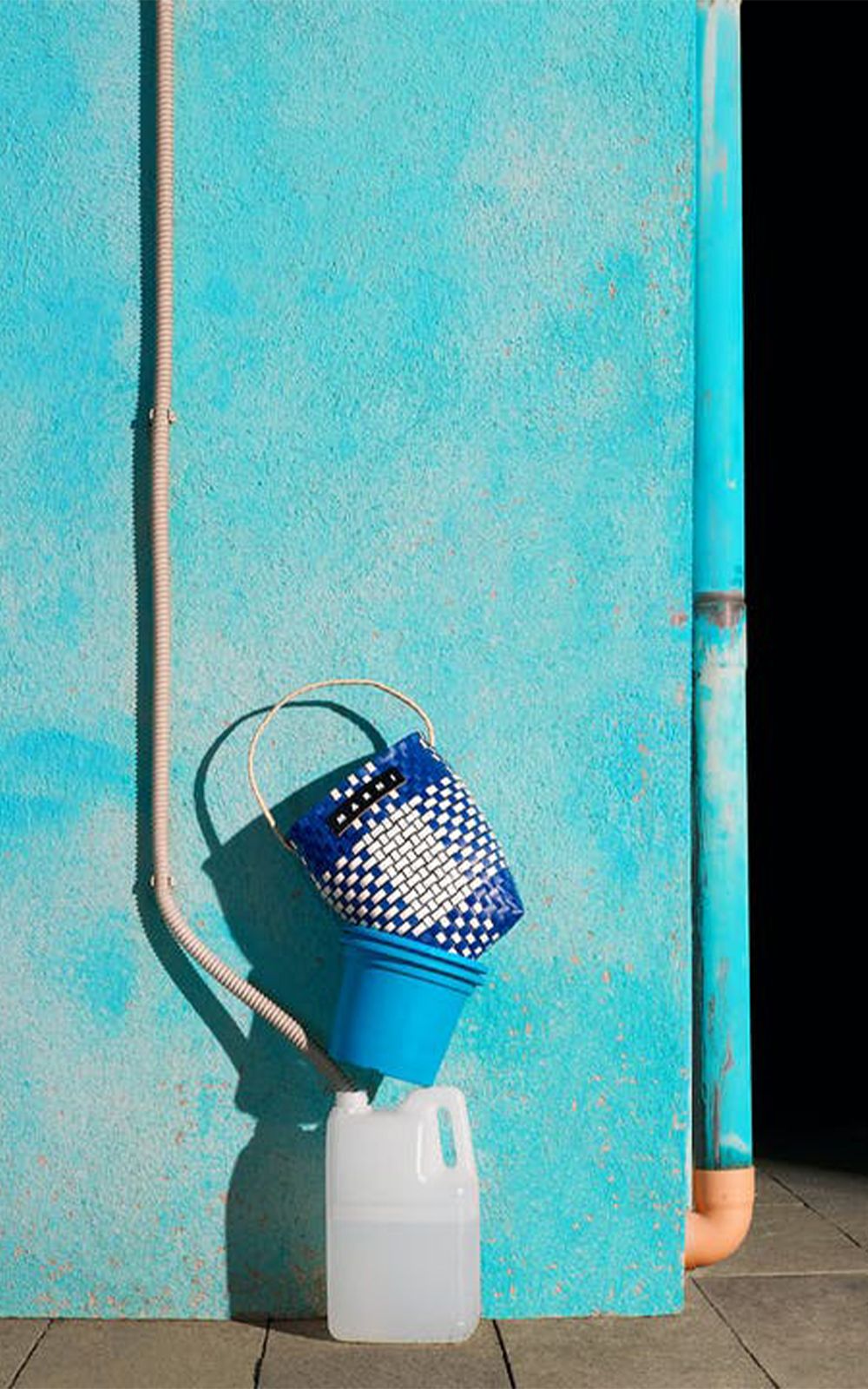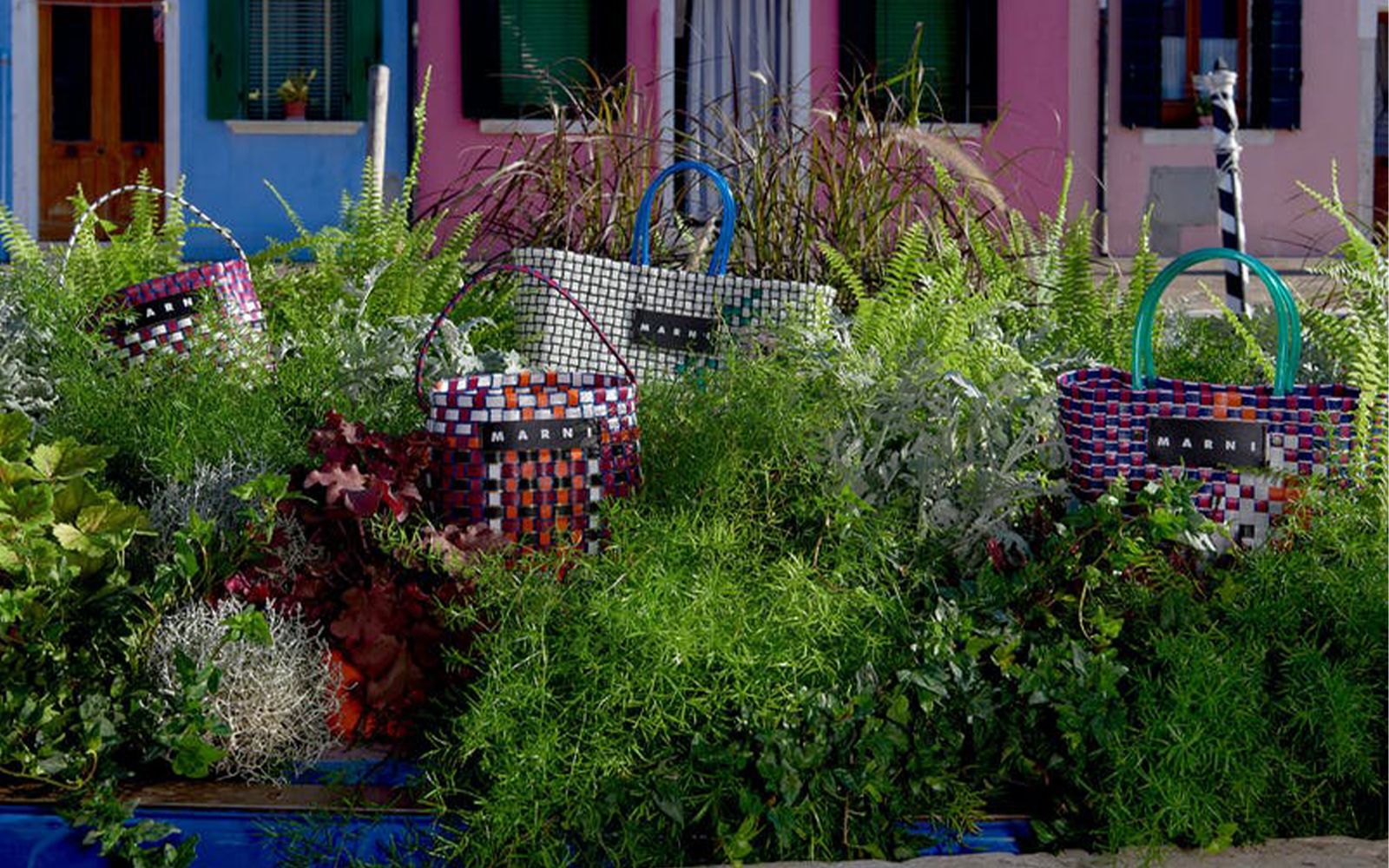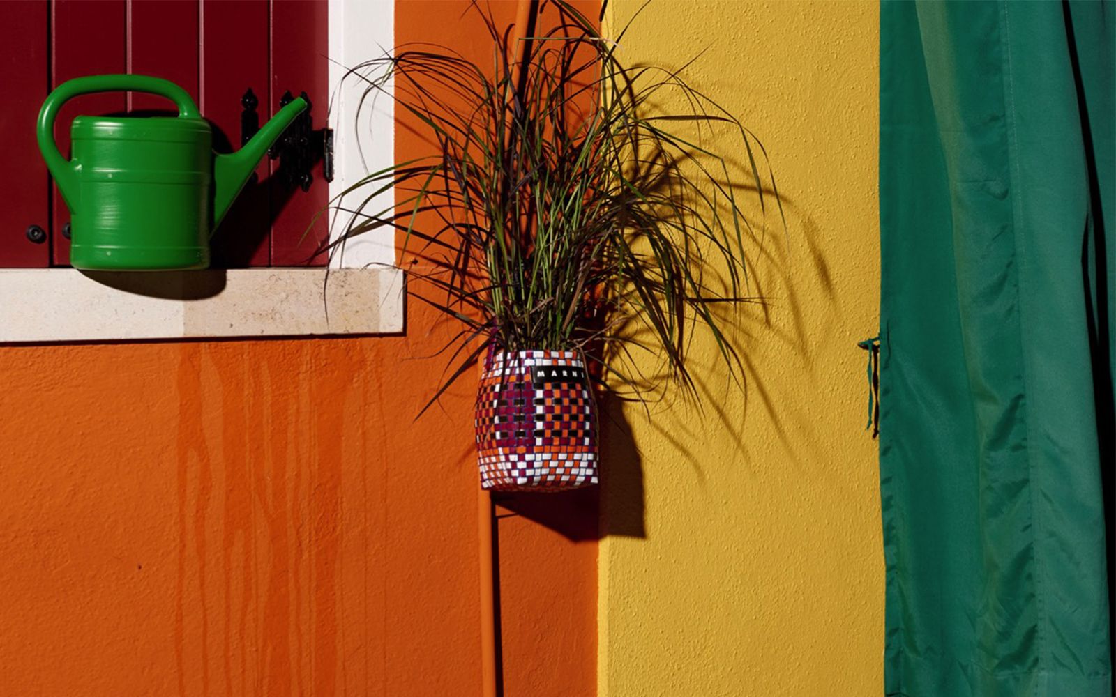 Realizzati in metallo e PVC, una selezione di oggetti di design per decorare la propria dimora con ispirazione sud-americana compone la linea homeware di Marni: vasi per i fiori, cesti a forma di prisma, portariviste, sgabelli intrecciati a mano convertibili in tavolini da caffè, e borse in PVC intrecciato come la Boat, la Hammock e la Bucket Bag sono fatte a mano da artigiani colombiani per il brand, secondo la visione innovativa di Francesco Risso.