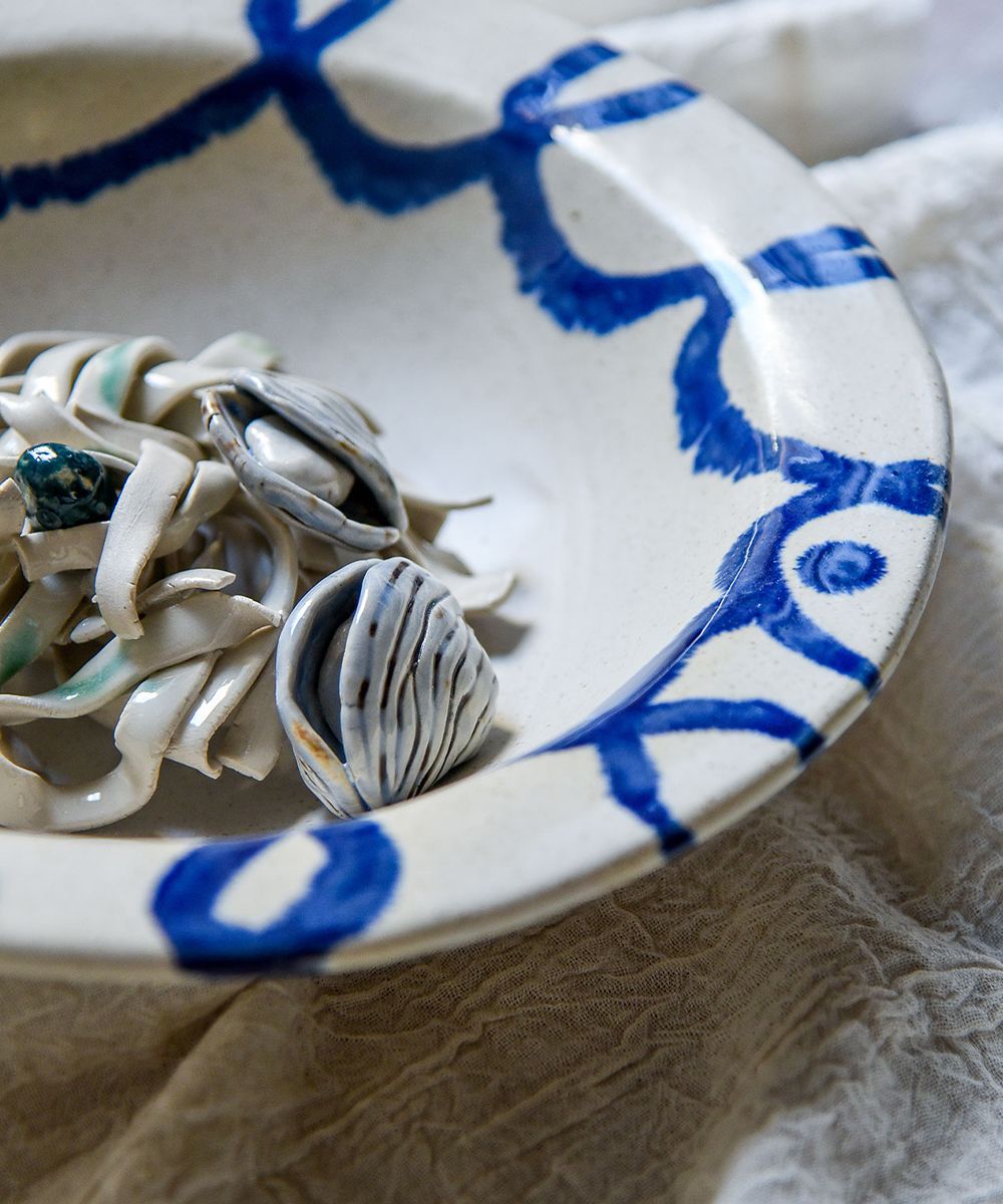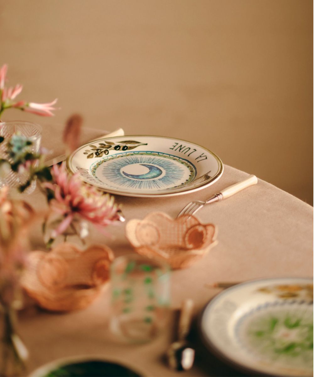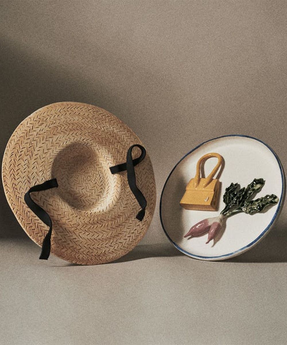 La collezione homedecor di Jacquemus e Daphne Leon richiama la florida natura della Provenza e i valori del brand francese del momento. Un accessorio firmato Jacquemus abbinato ad ortaggi, frutta ed elementi dei fashion show del marchio accompagnano i piatti fatti a mano dalla designer Leon, che è già alla seconda collaborazione con lo stilista francese. Dopo il successo della sua proposta da tavola per il nuovo ristorante di Simon, l’Oursin di Parigi, la coppia non poteva che replicare.