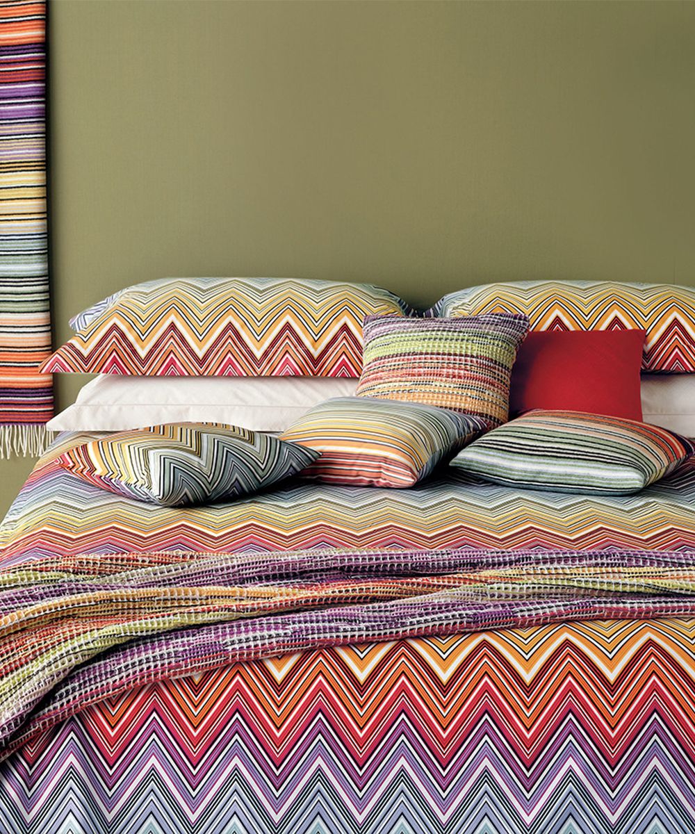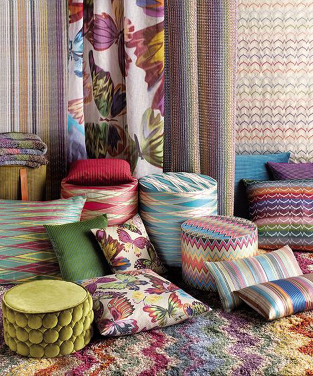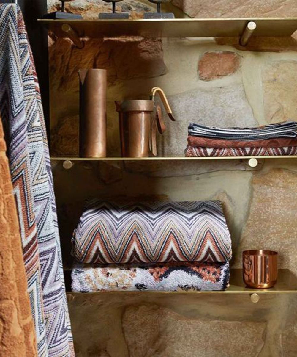 La casa di moda italiana è celebre per la sua passione per il colore e le linee geometriche. Le fantasie che hanno animato decenni di sartorialità e innovazione per Missoni, oggi decorano meravigliosi pezzi unici di homeware. La sensazione rustico-chic che scalda anche la casa di Gigi Hadid gioca sugli chevron in colori tenui e neon per le differenti zone della casa: la maison propone una palette soft e rilassante per la camera da letto e una sui colori della terra per il bagno.