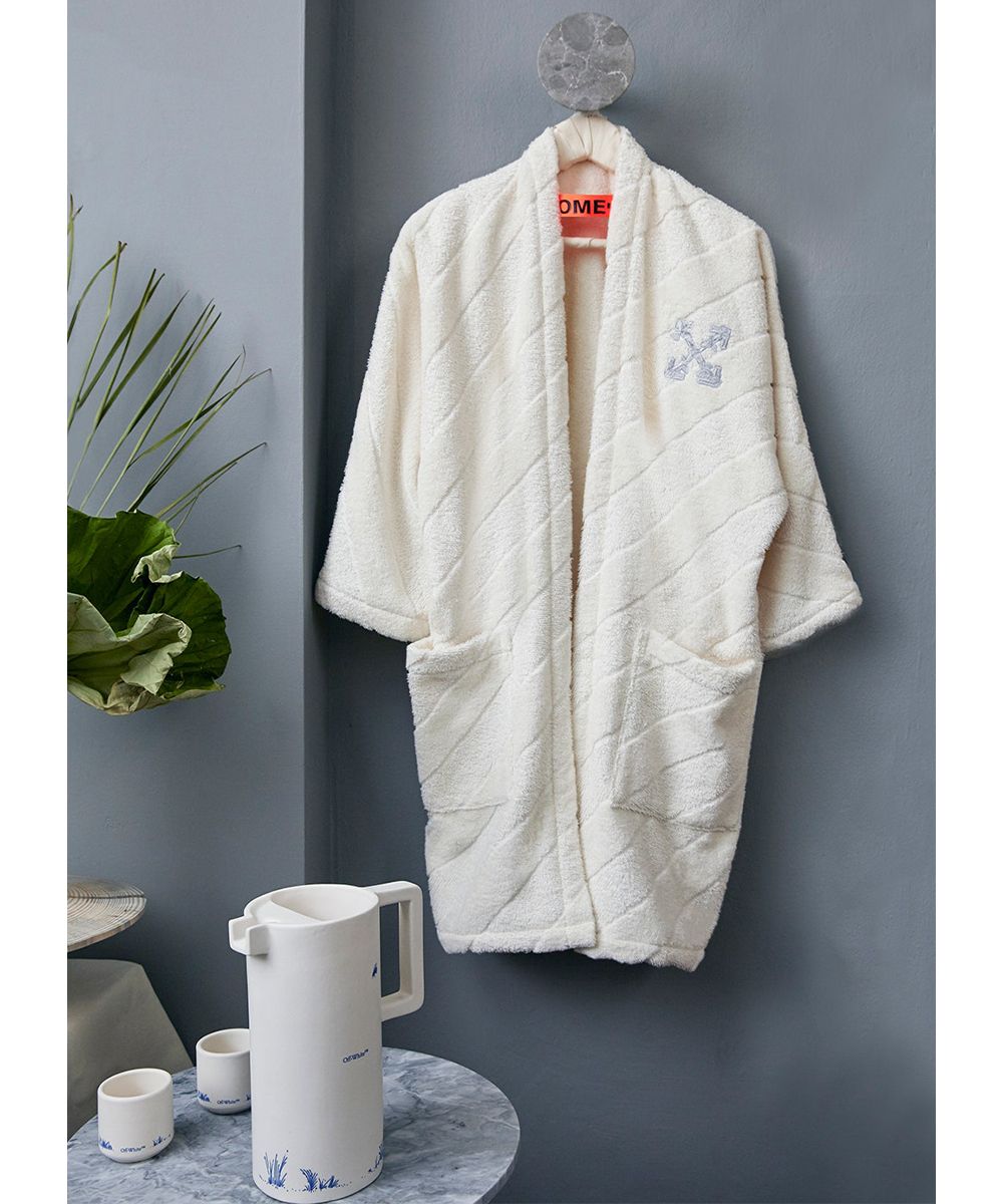 In concomitanza con l’apertura a Milano, Off-White rivisita gli oggetti della quotidianità secondo la sua sofisticata idea di modernità a cavallo tra funzione e decor. HOME è la nuova collezione homeware, in collaborazione con la piattaforma digitale 1Dibs che vede la cifra stilistica di Virgil Abloh declinarsi secondo i codici della artigianalità: così prendono vita accessori e pezzi chiave per soggiorno, cucina e zona notte. Riecheggiando alla collaborazione con Ikea, Off-White propone zerbini, orologi da parete, coperte, ceramiche, bicchieri; set da pranzo e un set matrimoniale in cotone e lino e anche home-wear per matchare l’homeware con pigiami in seta, vestaglie, pantofole, set asciugamani, telo doccia e accappatoio. Simpatici item da avere assolutamente sono lo specchio a mano, spazzola pettine e spazzolino da denti per il bagno.