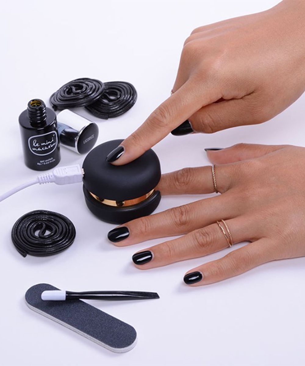 Cruelty-free, vegan e 9-free, gli smalti semipermanenti di Le Mini Macaron combinano topcoat, base e colore e asciugano in soli 30 secondi con la lampada LED a forma di macaron.
