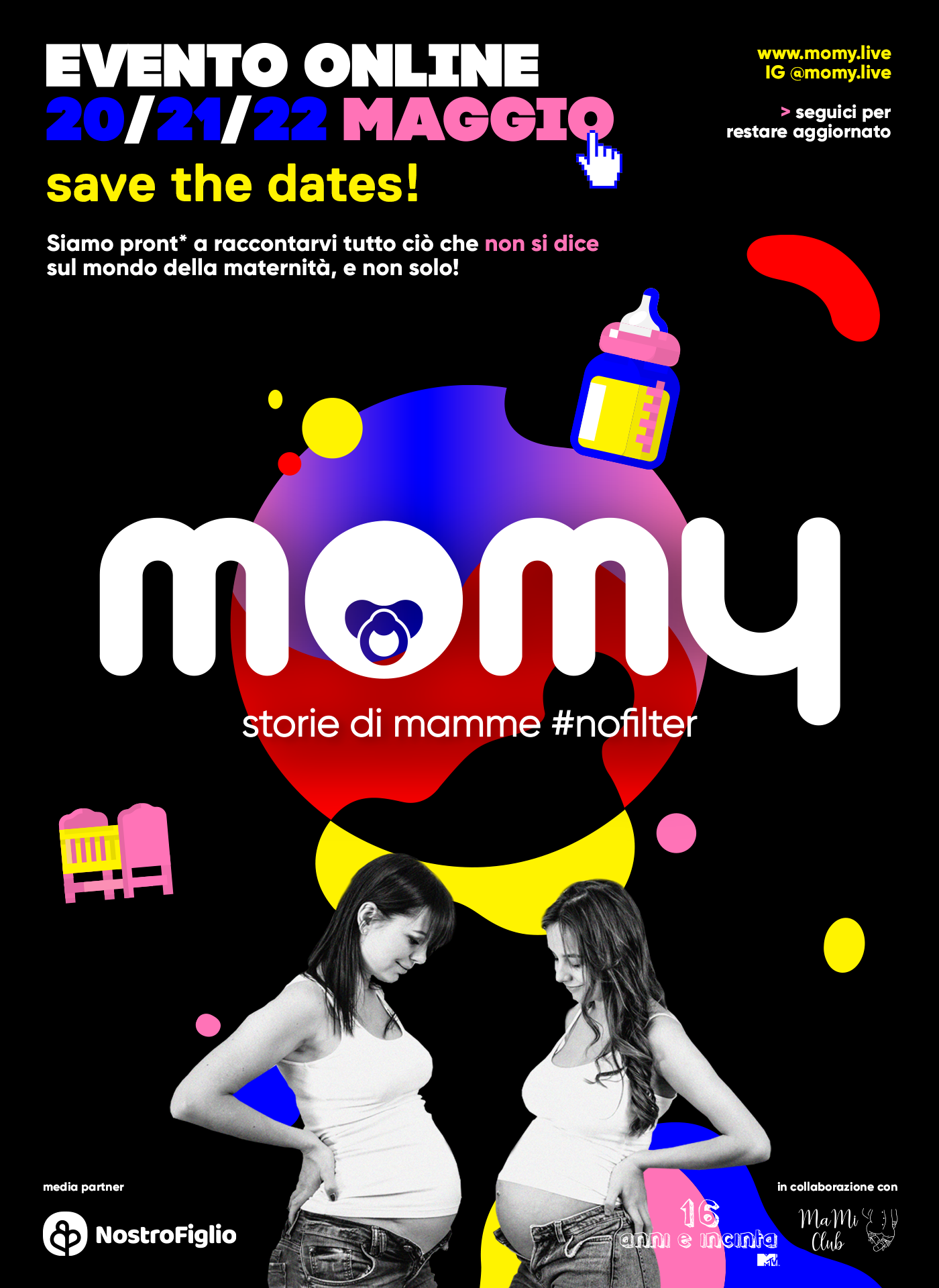 Dal 20 al 22 maggio, arriva MOMY, il primo evento digitale dedicato alla maternità e all’essere genitori. In questi tre giorni si alterneranno appuntamenti, dibattiti e webinar che esploreranno questo universo sfaccettato fatto di gioia e amore, ma spesso anche di dubbi e tabù, attraverso dirette, streaming o room visibili a tutti e facili da seguire su Instagram, ClubHouse e Spotify.