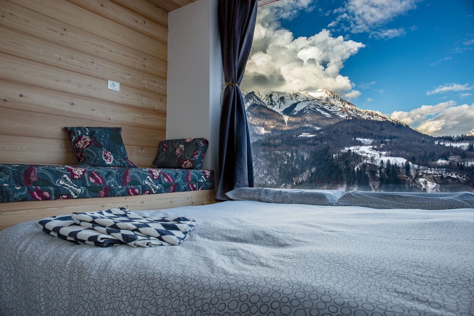 Perché sceglierla per un weekend? Per il magnifico paesaggio naturale, con vista sulle montagne e sulla profonda gola del torrente Ardo che si può godere dalla grande vetrata di questa mini casa. L’altro motivo è l’eco-sostenibilità. L’edificio, infatti, è stato realizzato in legno e paglia provenienti da agricoltura biologica.